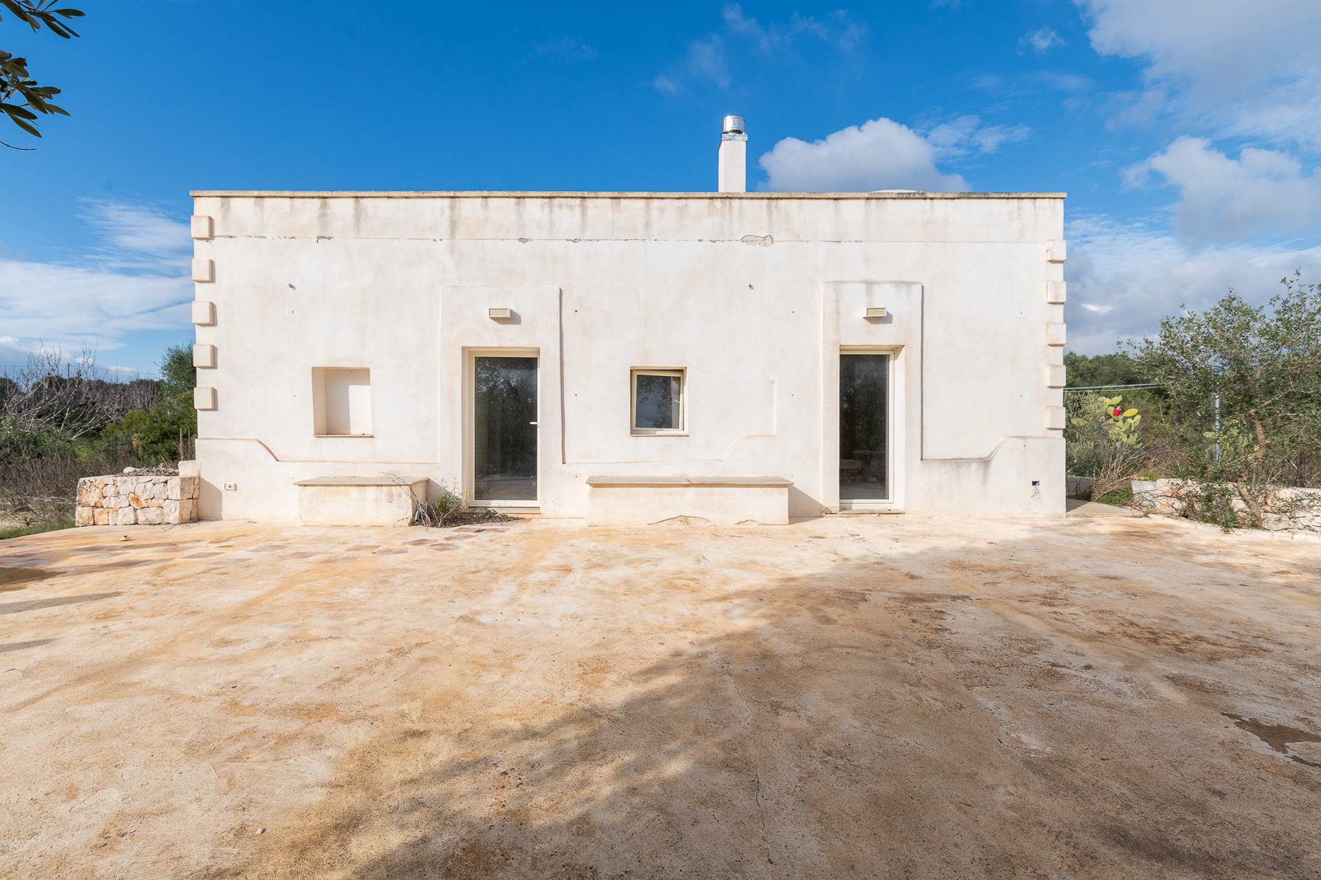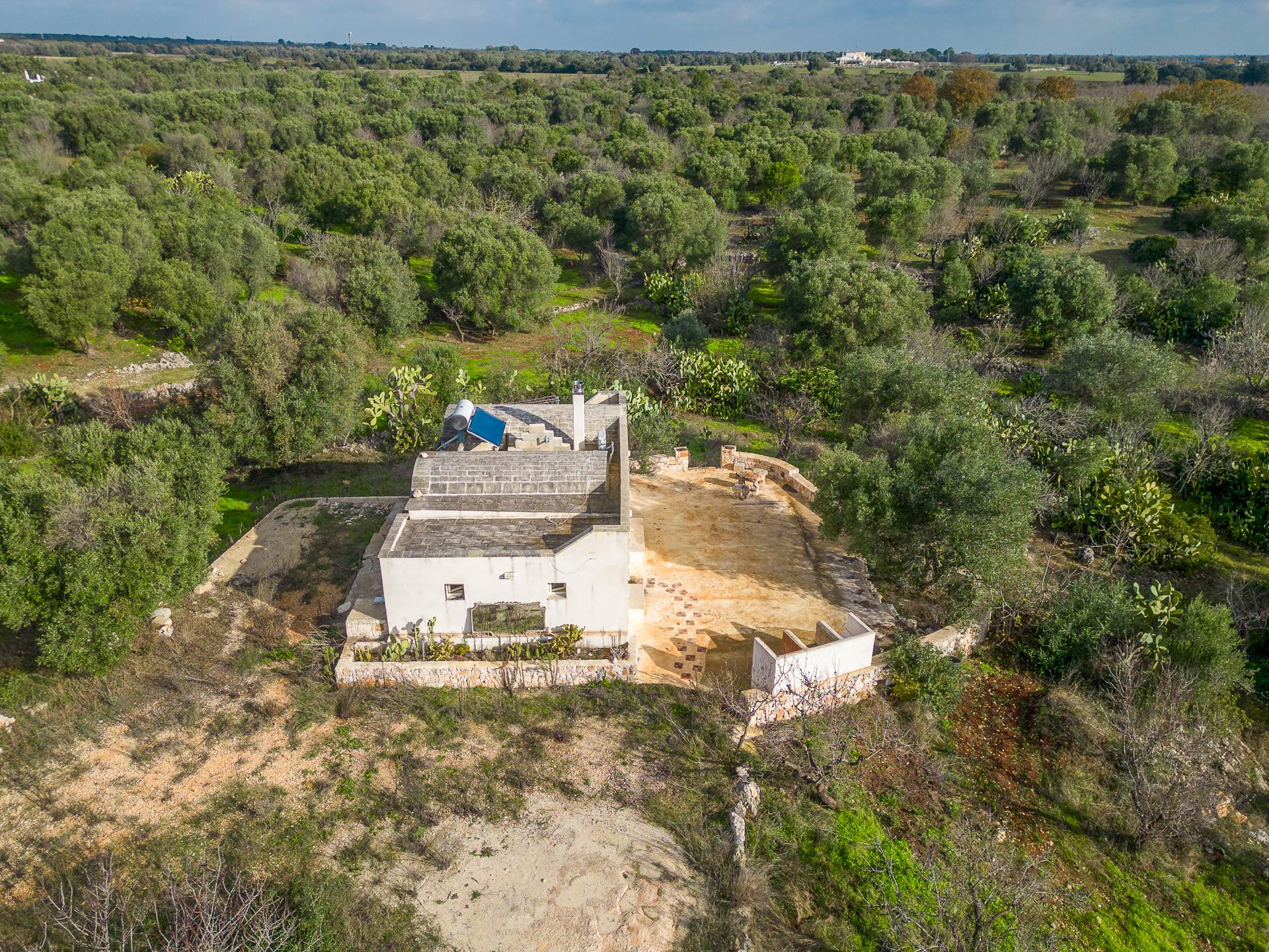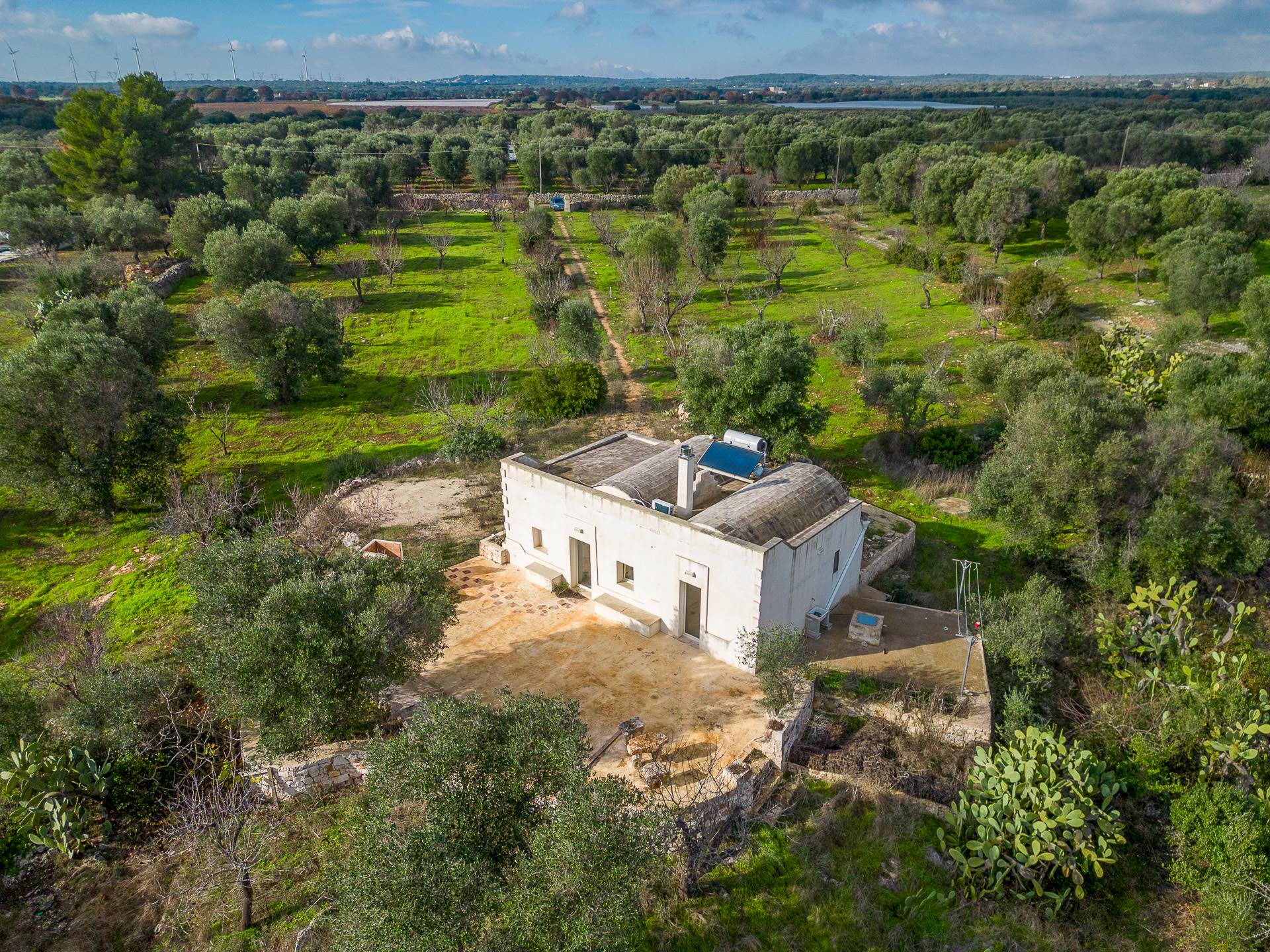The architecture of the property and the panoramic views that can be enjoyed from it are of rare beauty, rich in the typical colors of Puglia: the blue of the sky, the intense red of the earth, the dark green of the olive trees, the dazzling white of the lime.
