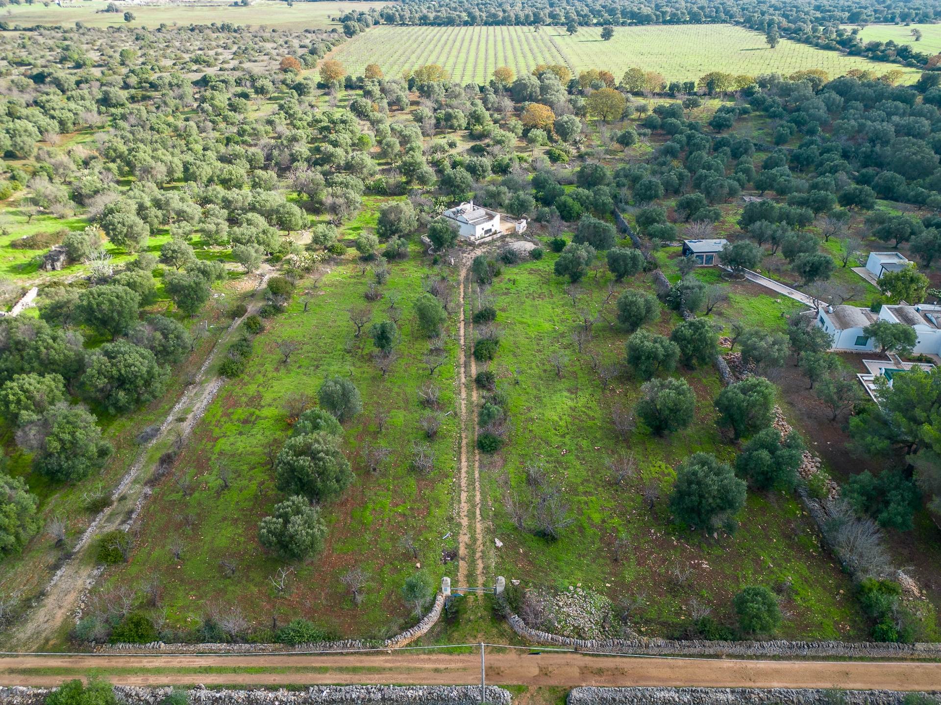The property is accessed via a wonderful dirt road, lined with dry stone walls.