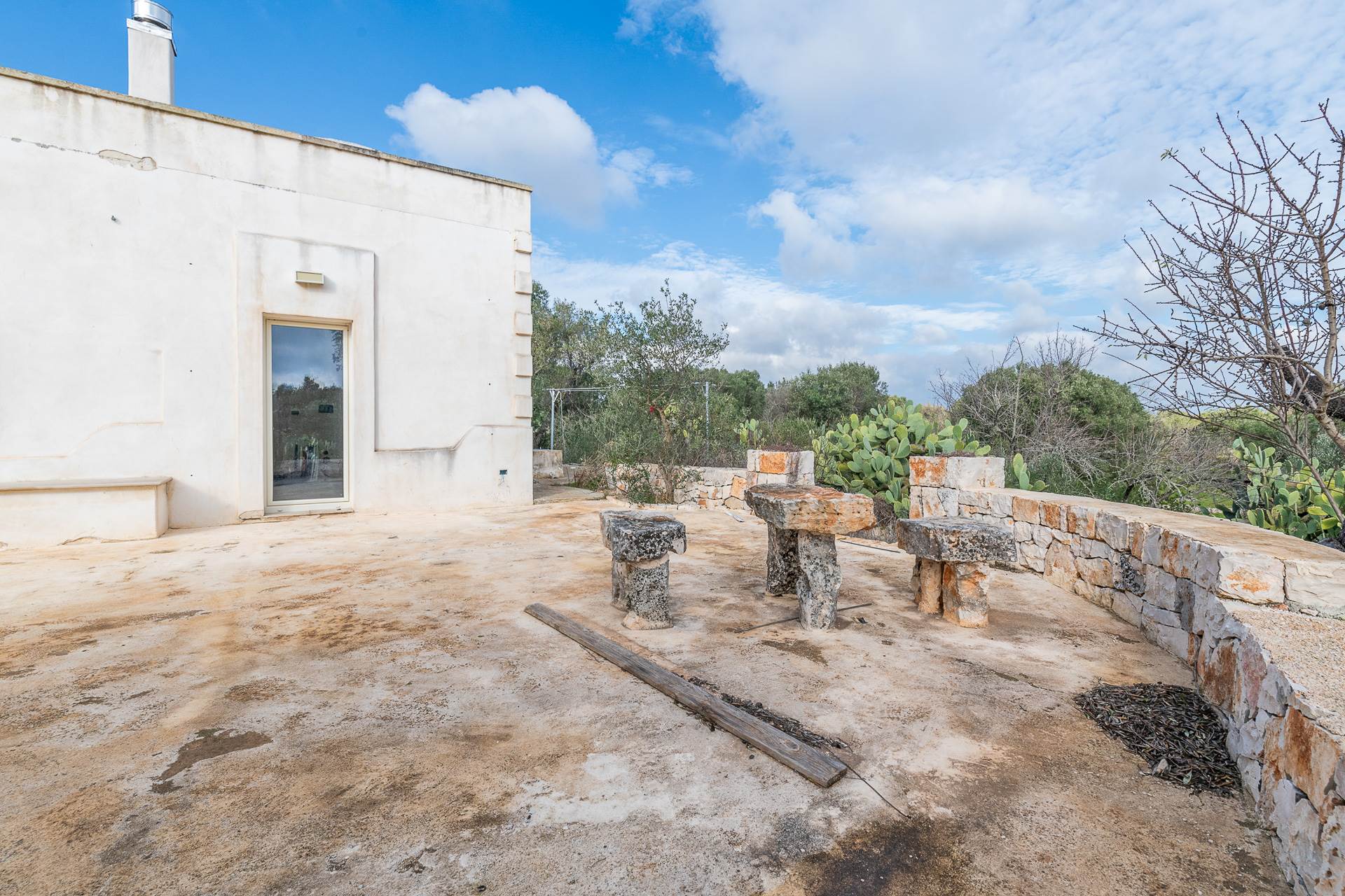 The land on which the property stands is approximately 9,400 m2, is dotted with splendid olive, almond and fruit trees and it is possible to build a swimming pool.