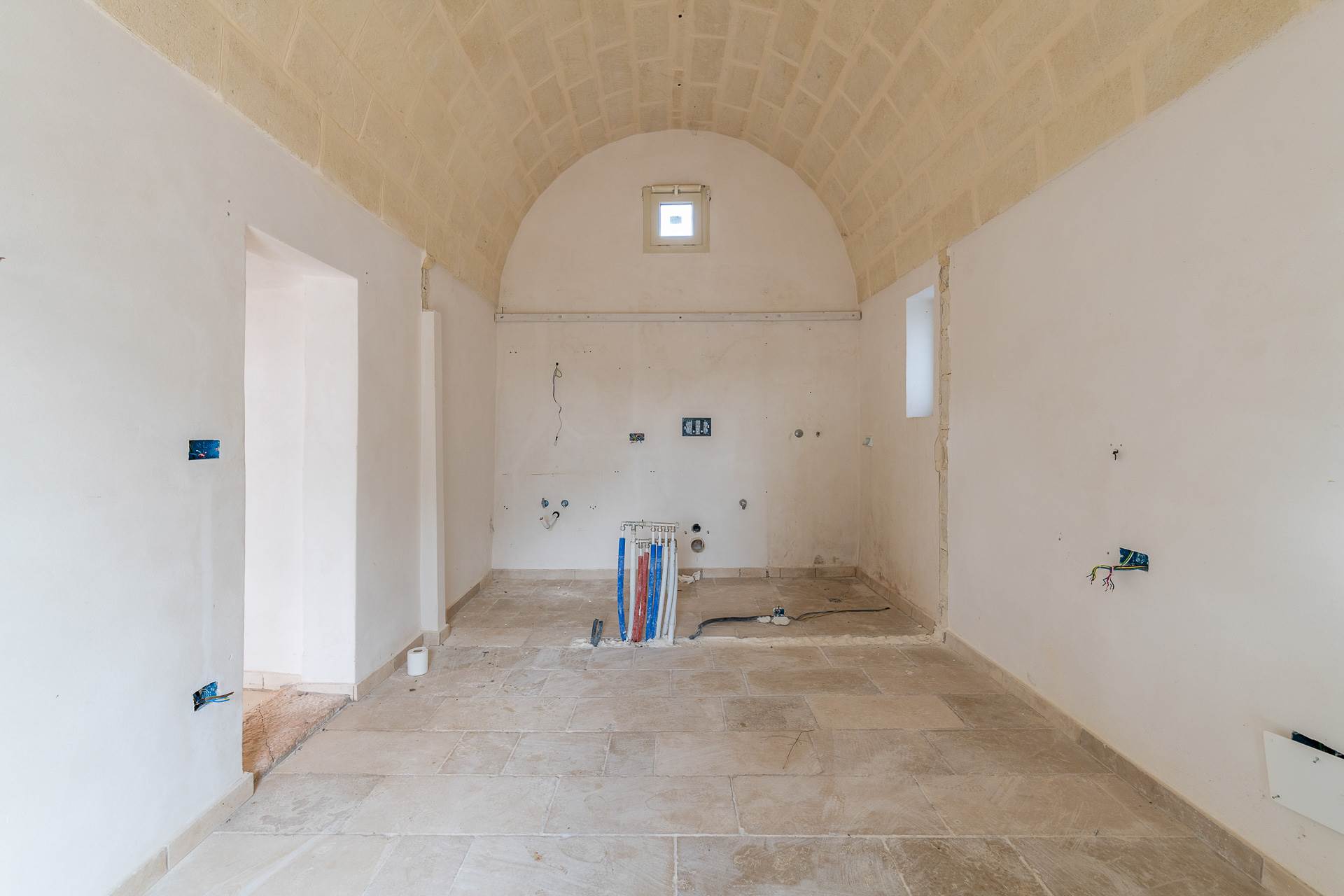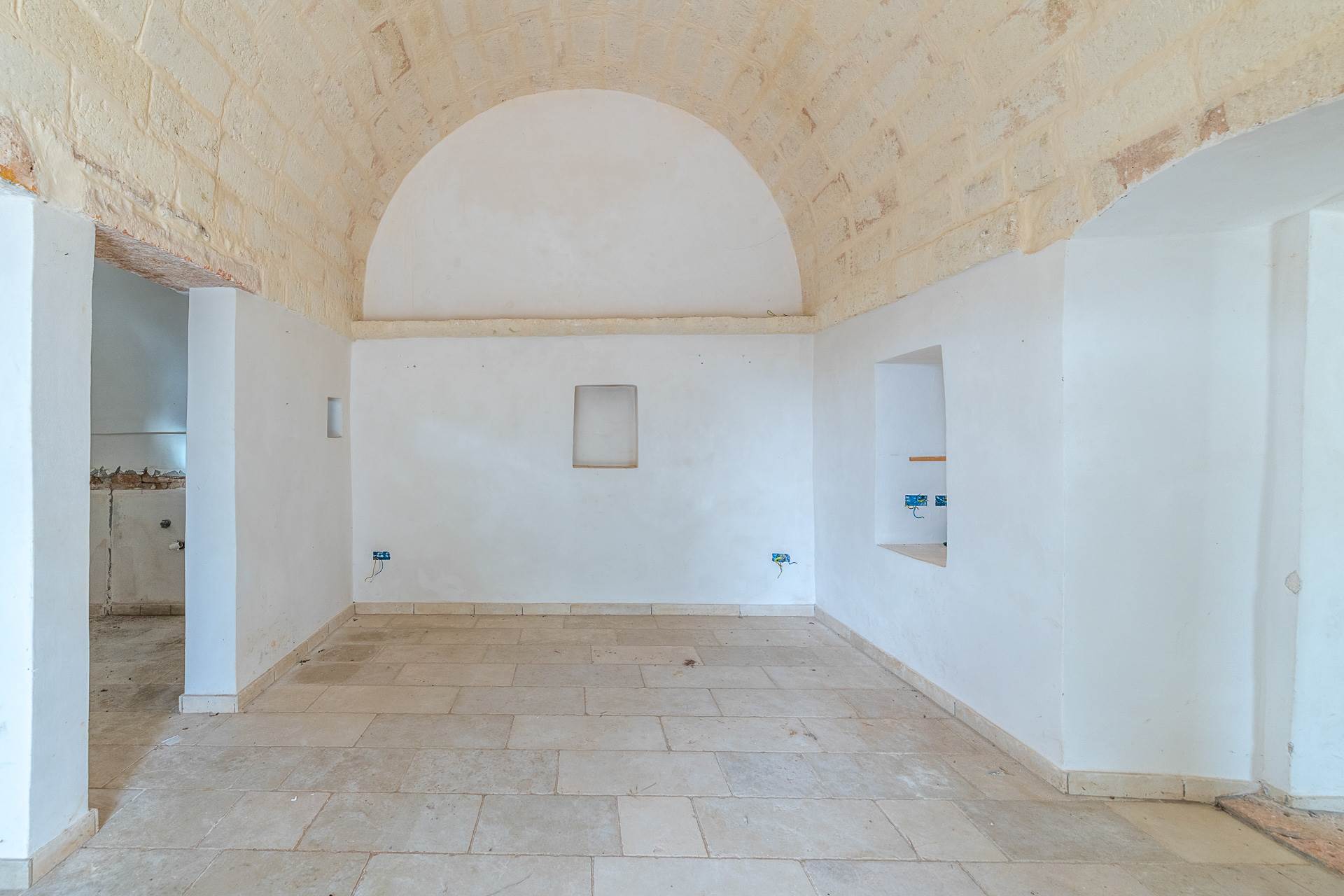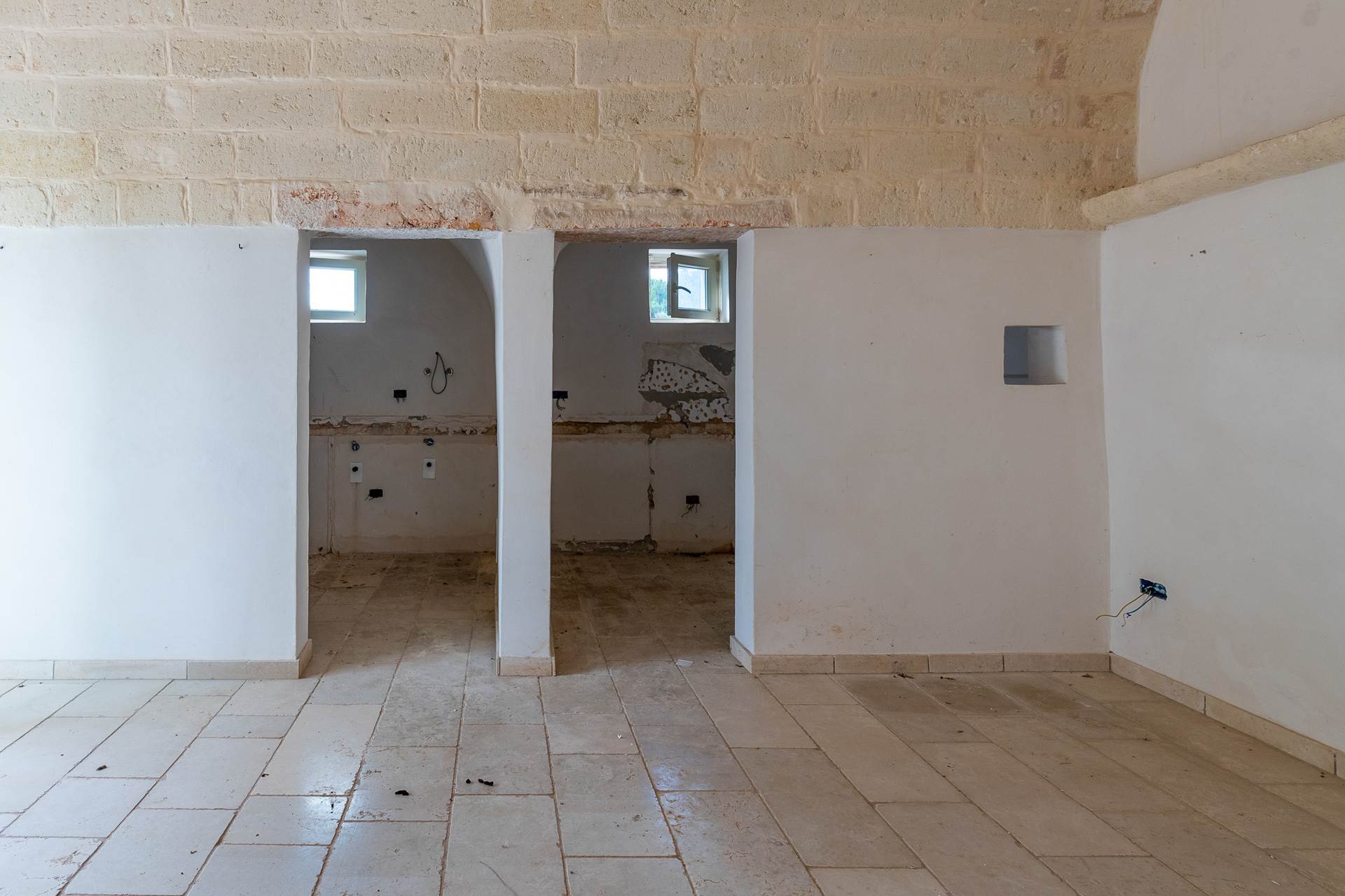 The building is an ancient stone farmhouse, with barrel vaults, partially renovated. It has a surface area of approximately 75 m2 and is divided into two rooms, one of which has a fireplace, bathroom and kitchen. The property has been partially renovated and needs to be completed. All the systems that need to be completed have been prepared