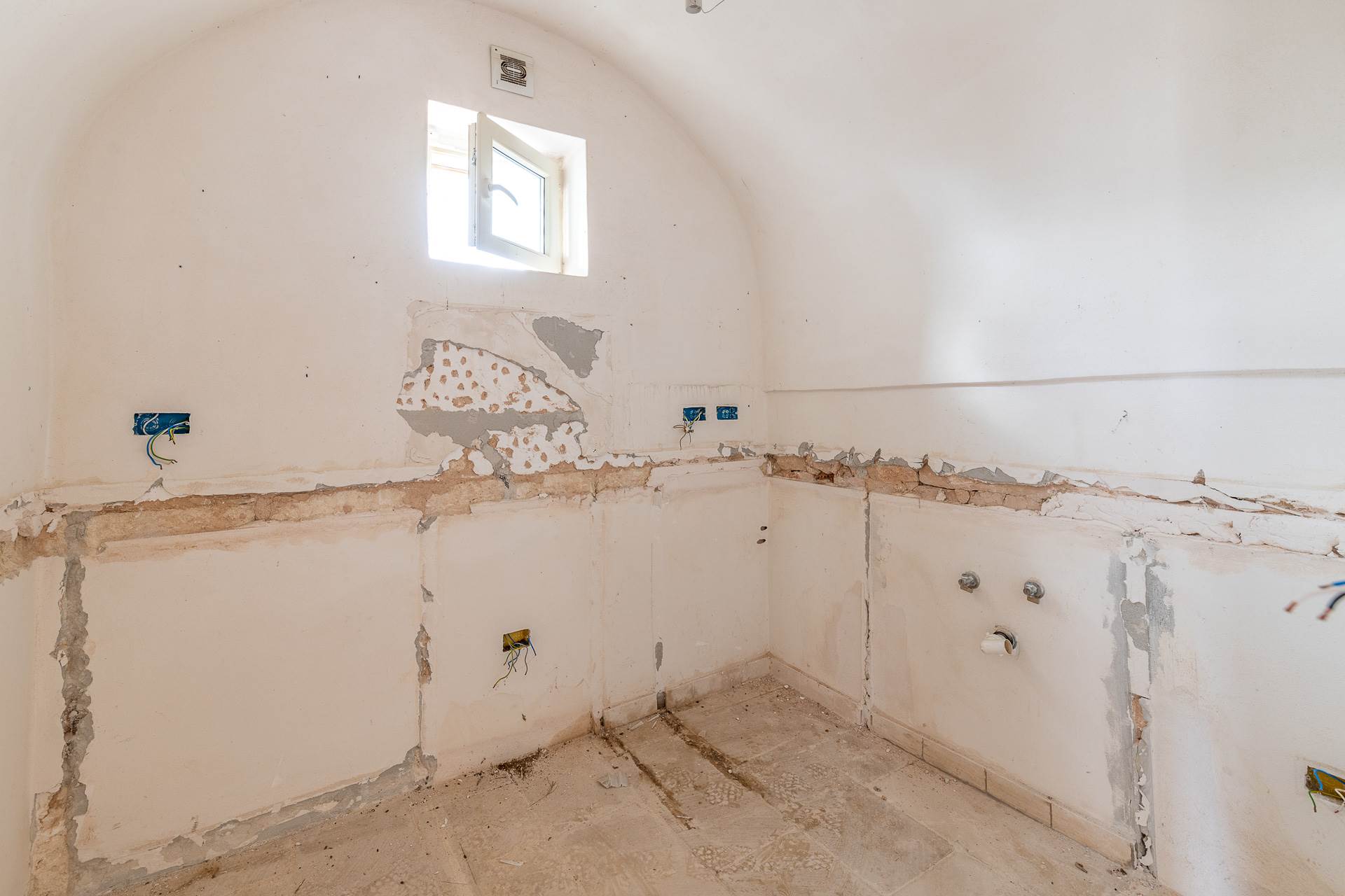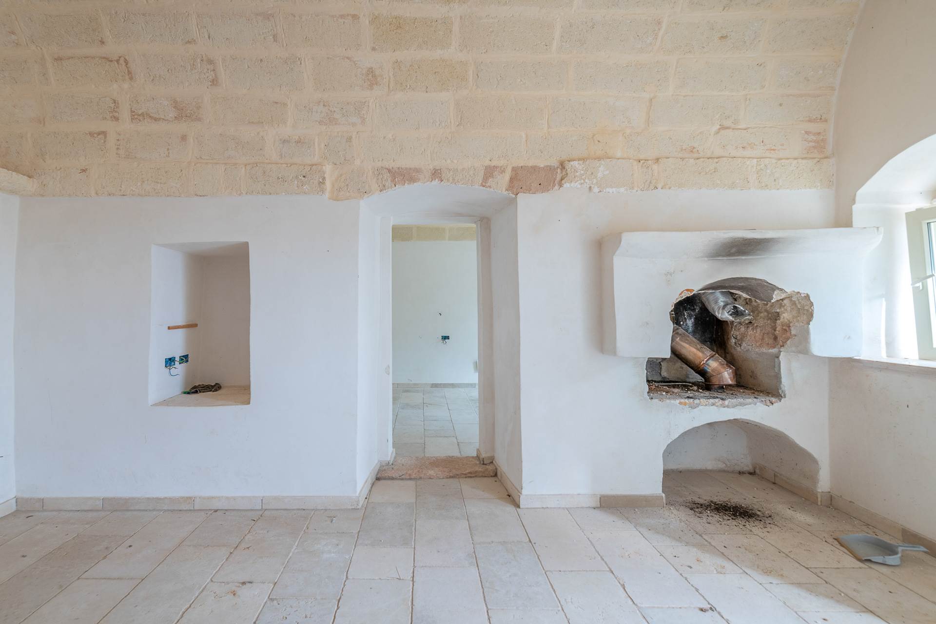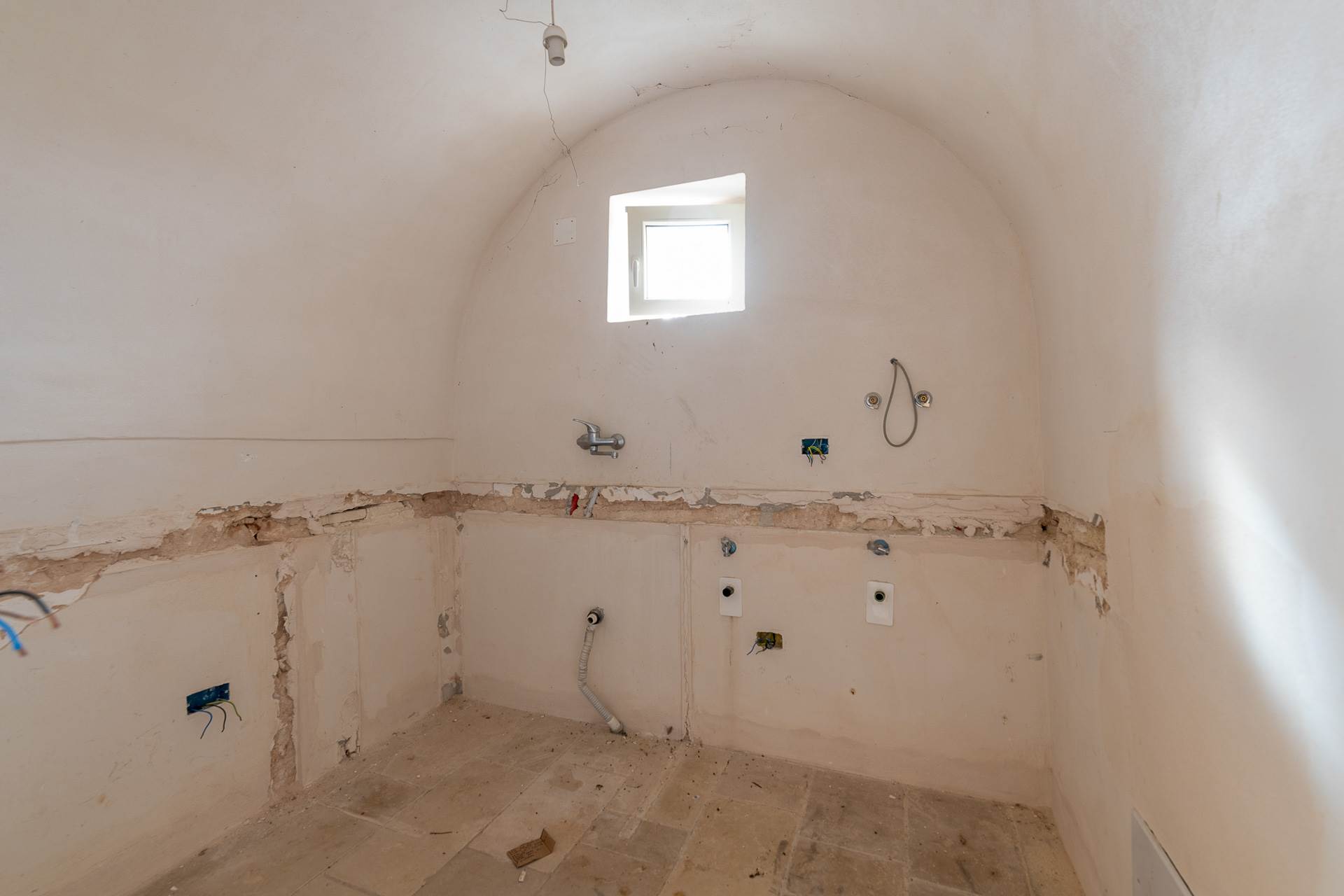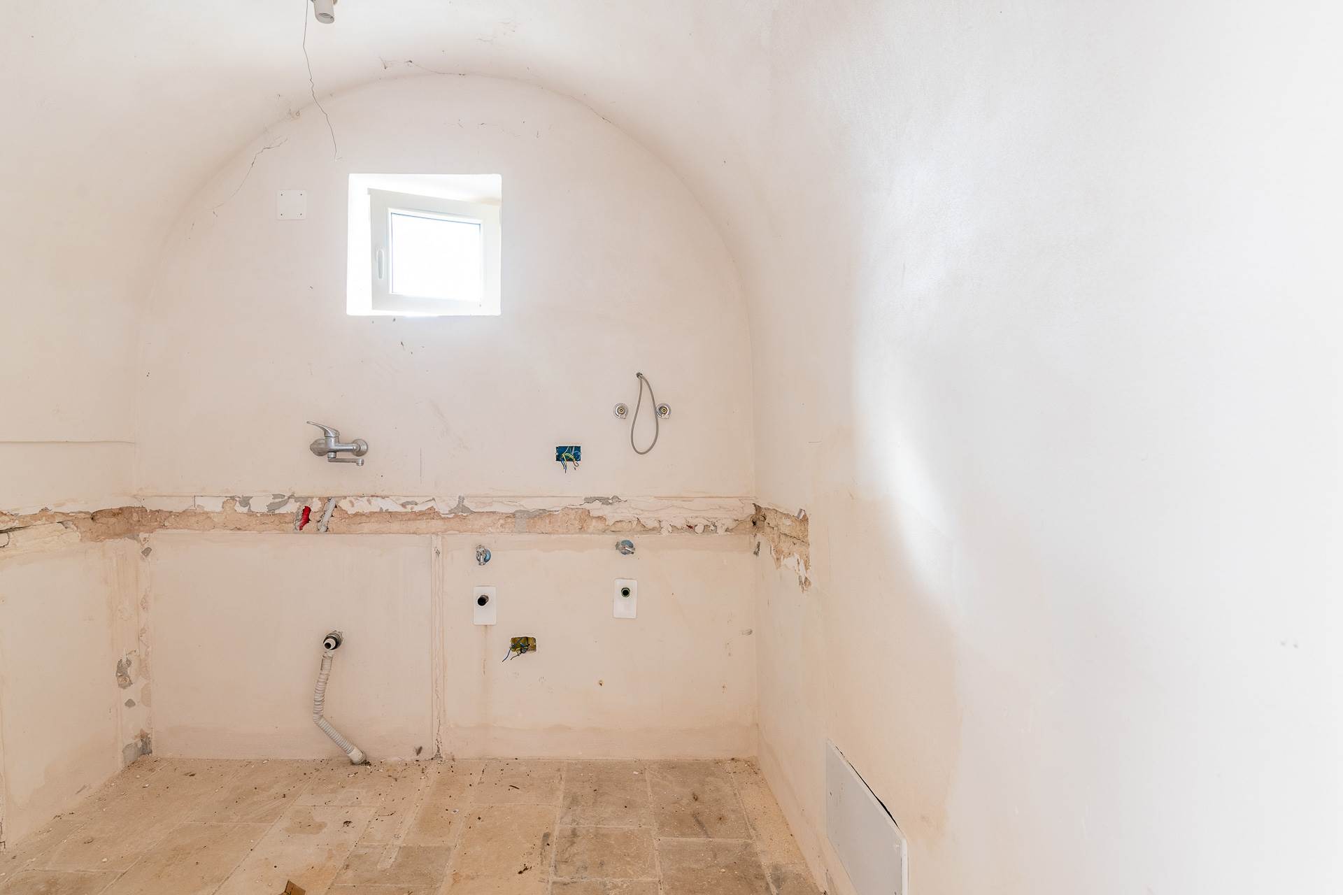 The building is an ancient stone farmhouse, with barrel vaults, partially renovated. It has a surface area of approximately 75 m2 and is divided into two rooms, one of which has a fireplace, bathroom and kitchen. The property has been partially renovated and needs to be completed. All the systems that need to be completed have been prepared