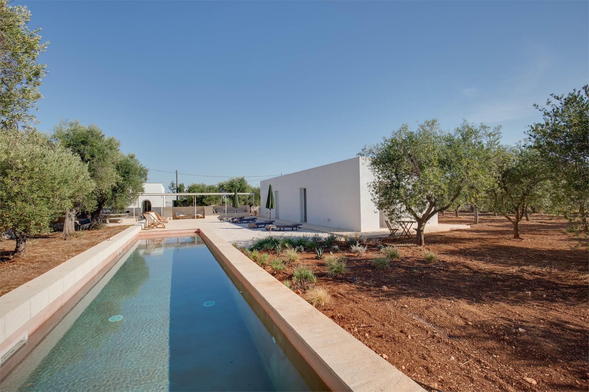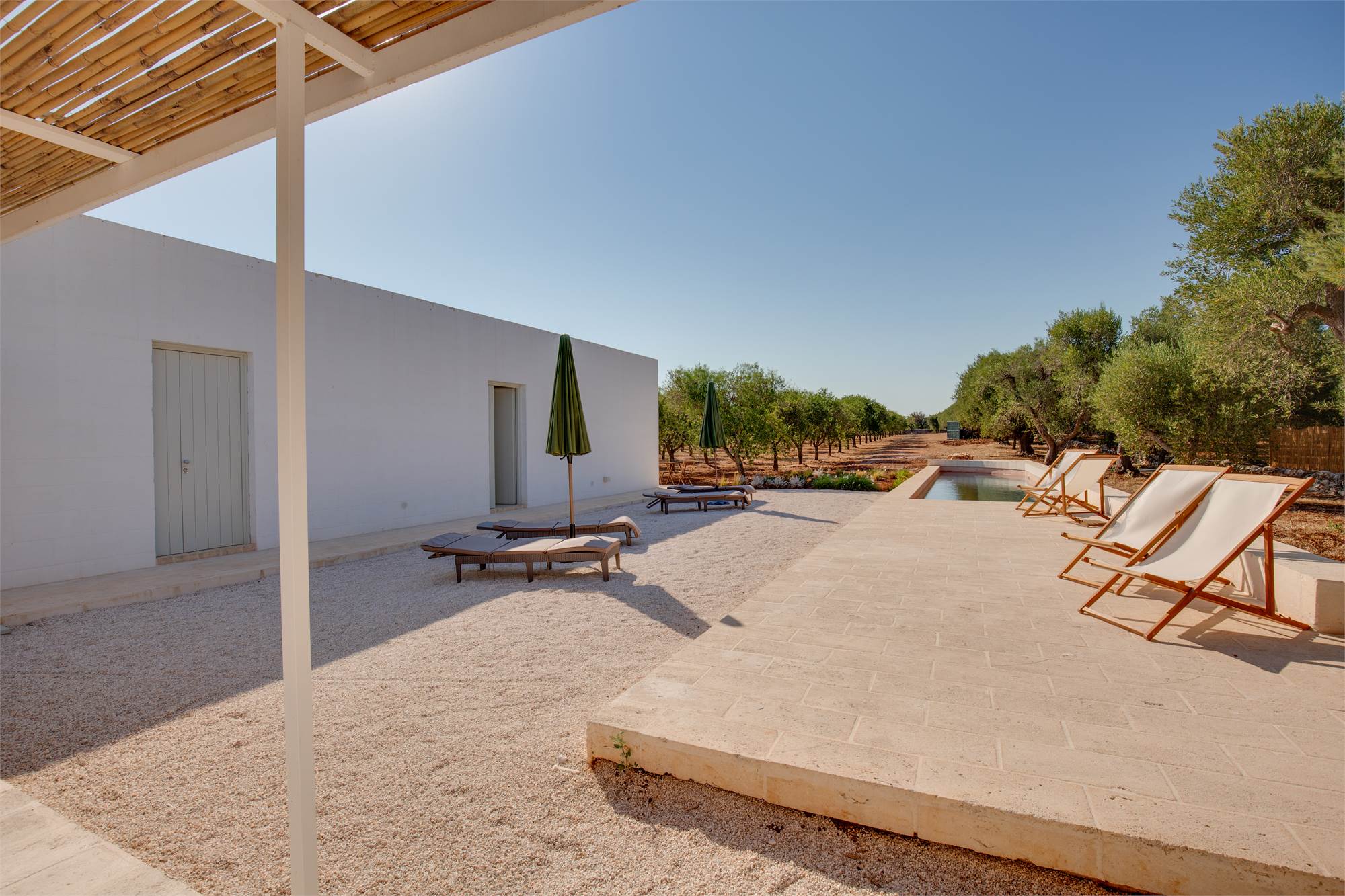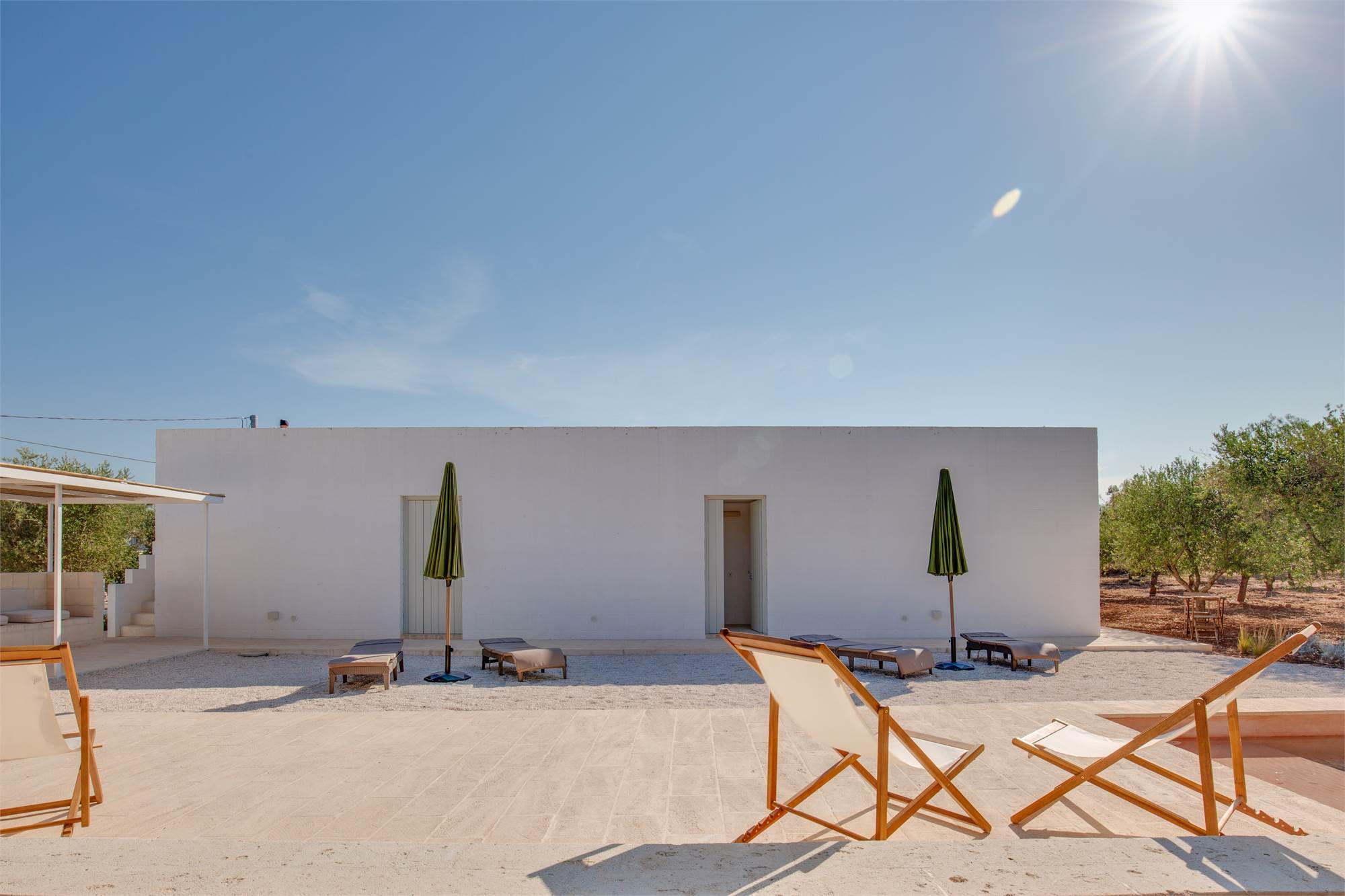 Located in the beautiful setting of Contrada Martucci, just a few minutes from the historic city of Ostuni, Villa Martucci is a refined residence that combines modern comfort with the serenity of the Apulian countryside.
