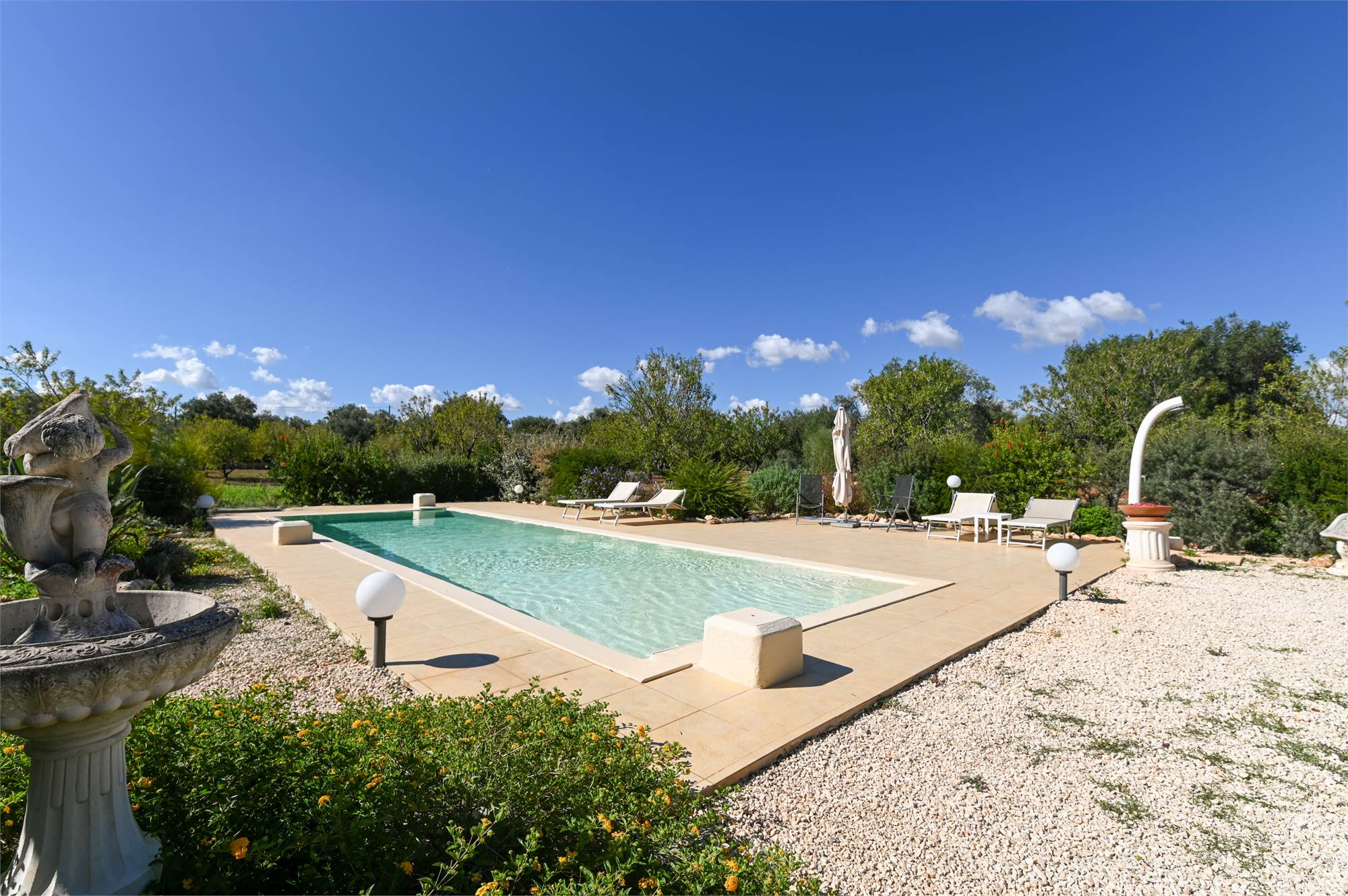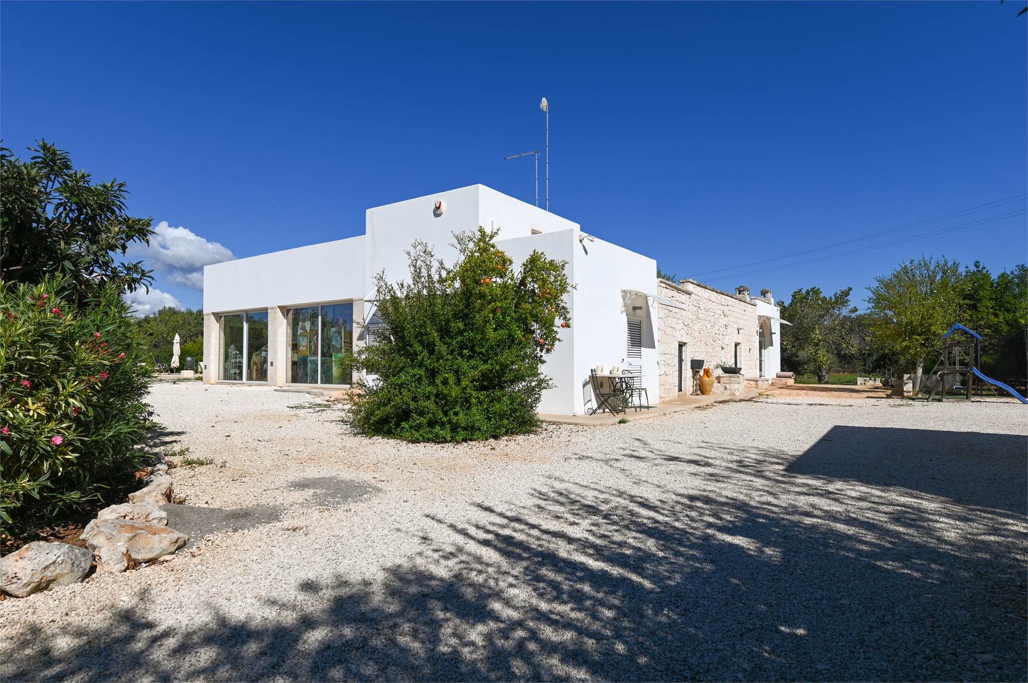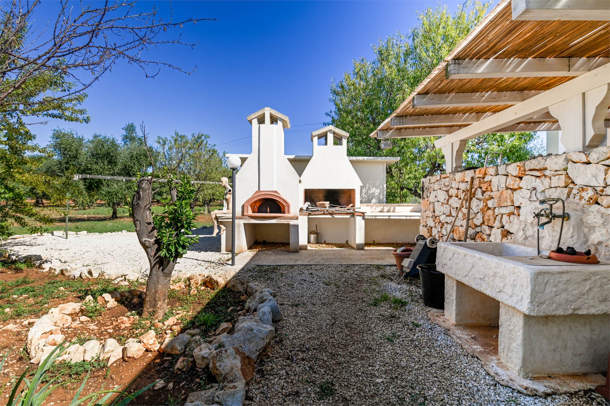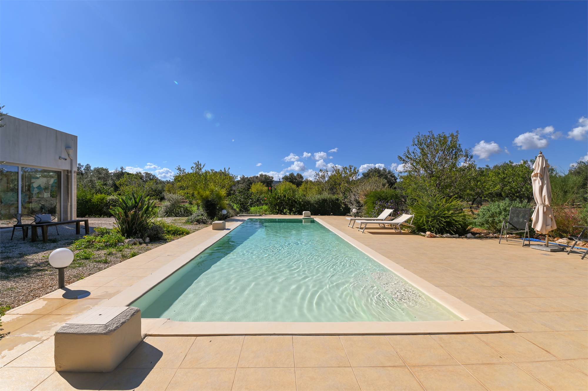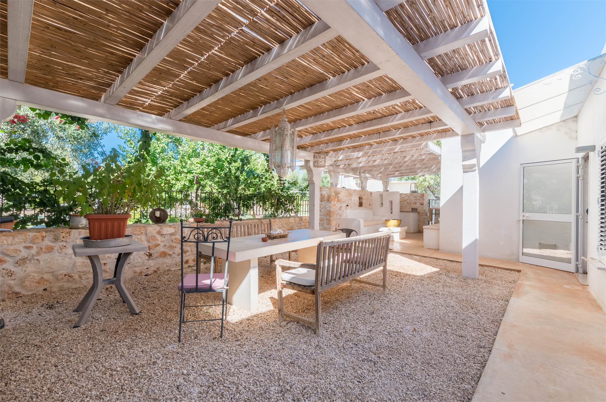 The property is equipped with all comforts: underfloor heating, photovoltaic system, automatic gate, artesian well, alarm system, air conditioning and internet connection, parking space shaded by a pergola.