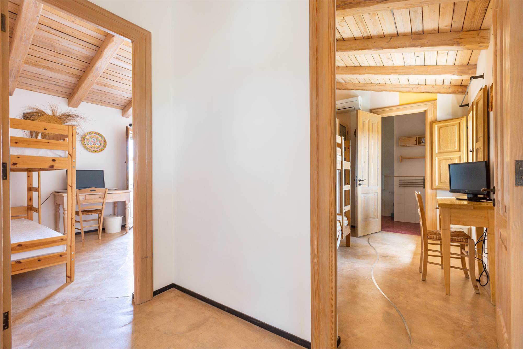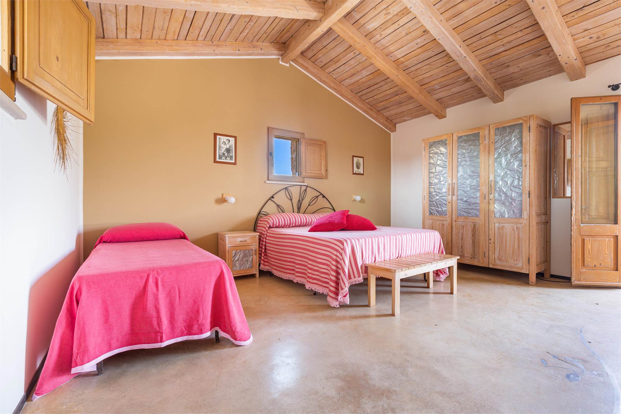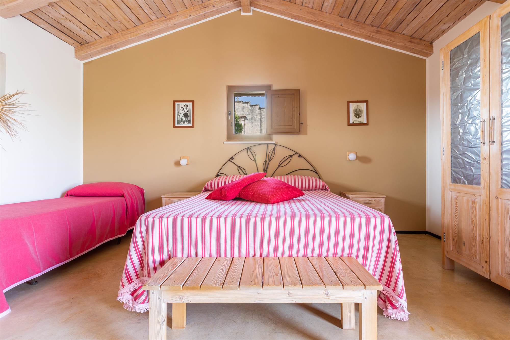 -A large quadruple room, communicating with a single room, with private bathroom available to both and access to the terrace balcony.