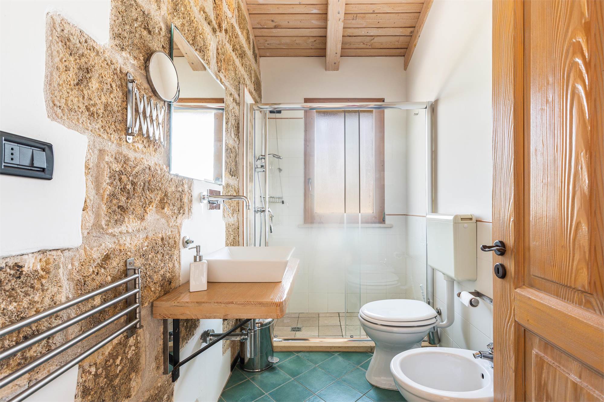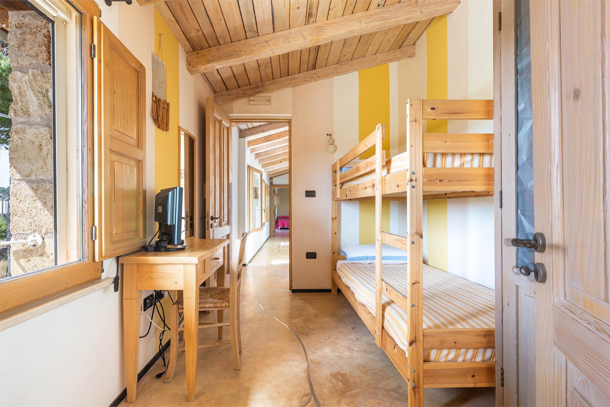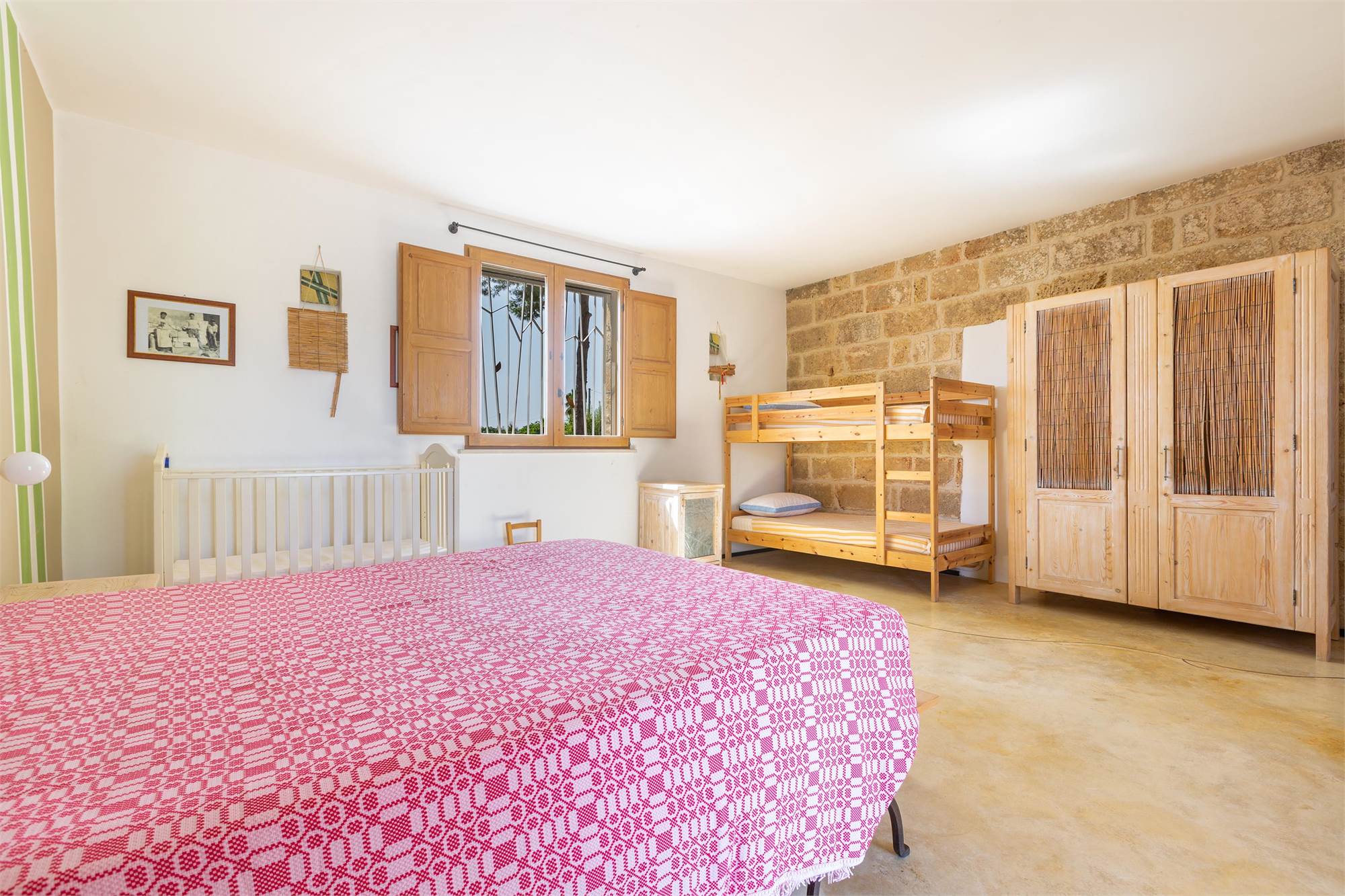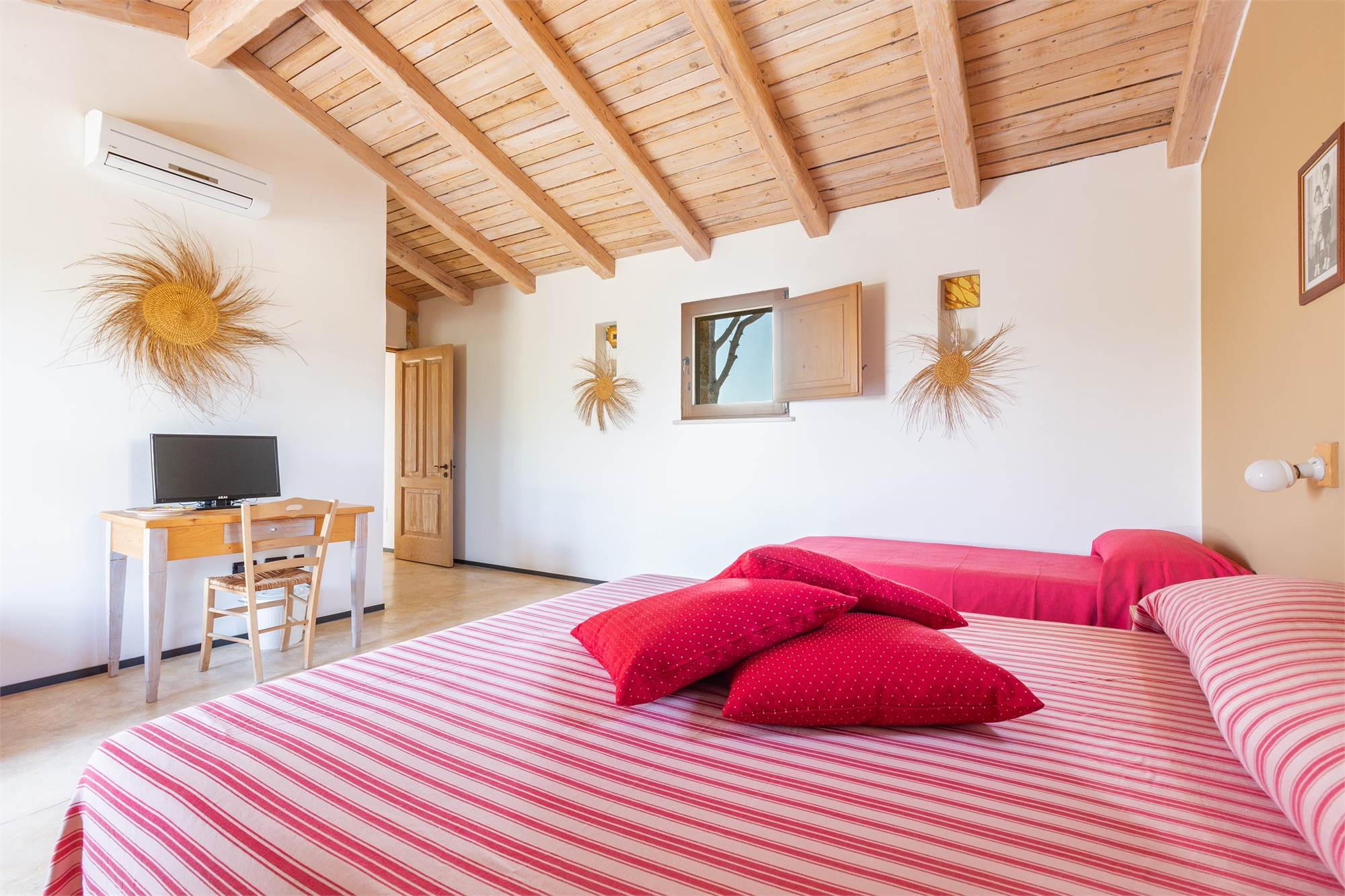 -A large quadruple room, communicating with a single room, with private bathroom available to both and access to the terrace balcony.