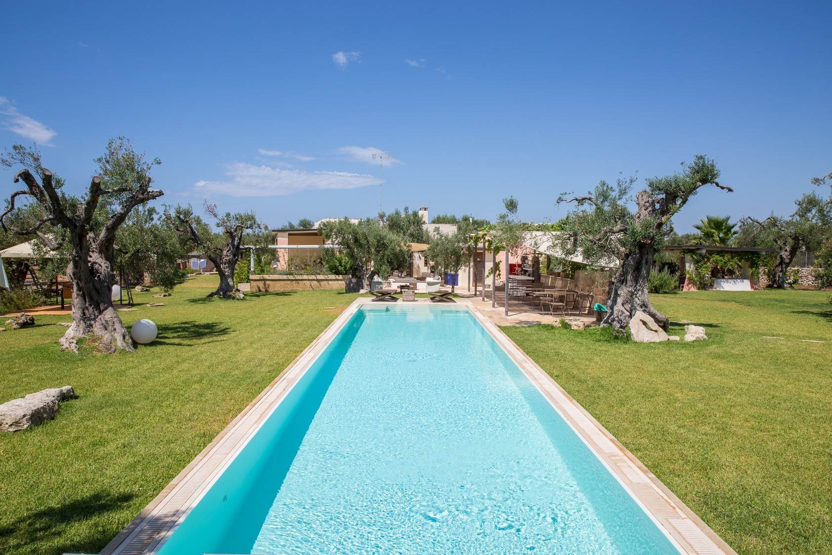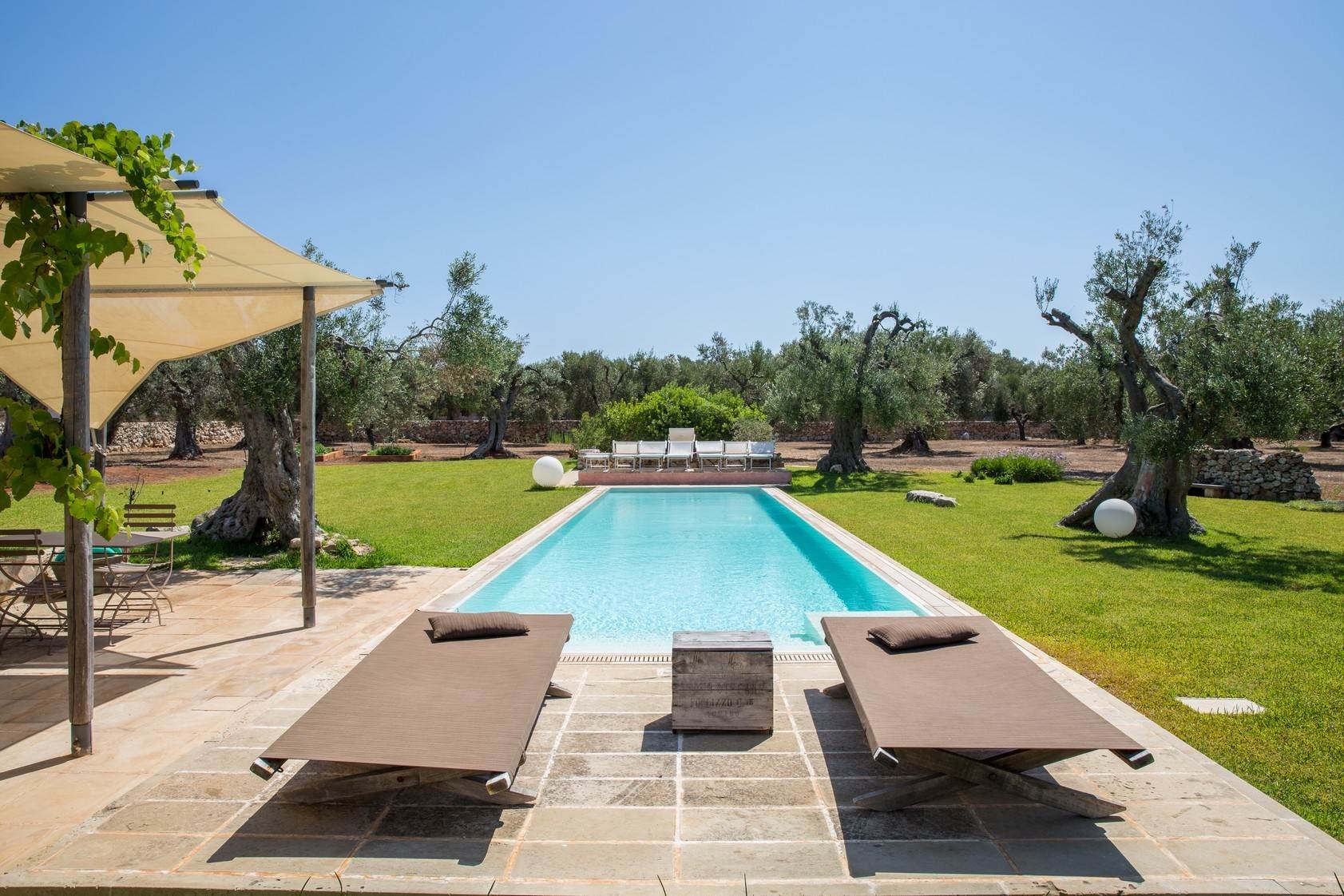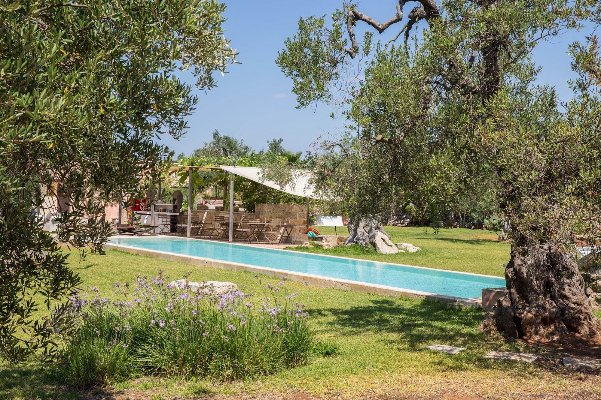 Stone, rock and red earth symbolize the ancient memory and vitality of life. This residence is a place of rest and pleasure, where the olive trees act as guardians and a heavenly pool extends between them. Inside, you will find a cozy retreat, while outside there is the freedom to explore and live to the full.