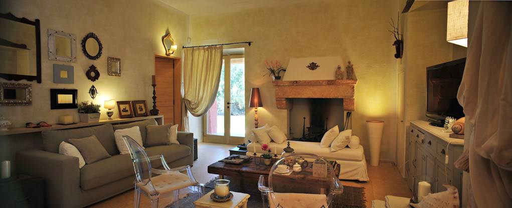 The main property includes a large living room with fireplace, 2 bedrooms, 3 bathrooms with shower and a well equipped kitchen. There is also a porch overlooking the kitchen, a spacious veranda and a gazebo next to one of the bedrooms. This house is surrounded by green areas and part of the olive grove. La Lamia, a second building, houses two independent bedrooms with private bathroom and furnished gazebo.