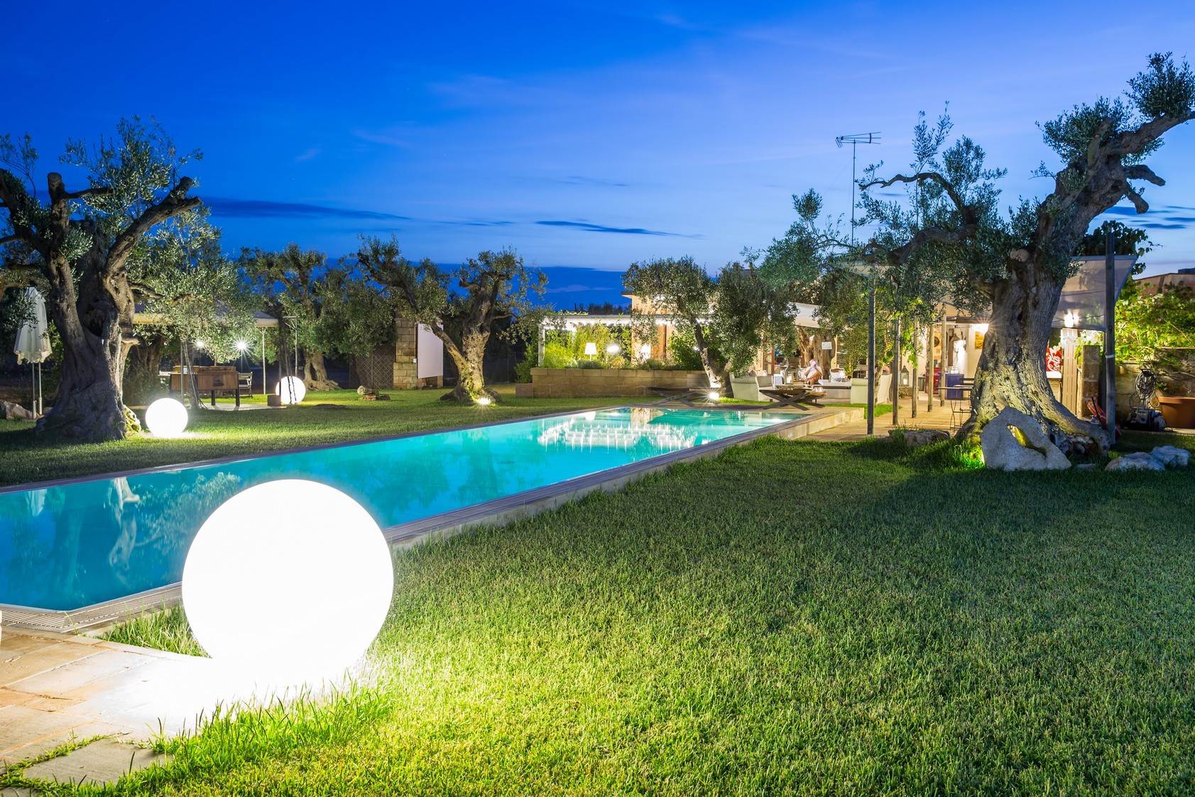 The property is well finished, with high quality materials that give a sense of elegance. A 16 meters long and 3.5 meters wide swimming pool, illuminated and with salt water, offers an oasis of relaxation surrounded by greenery. There are several areas for relaxation, outdoor dining and even video screenings on a large screen.