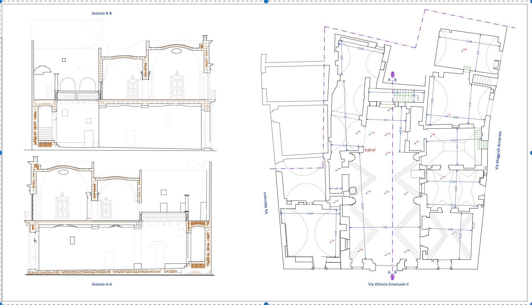 In the heart of the historic center of Grottaglie, a prestigious historic building dating back to the 1500s on two levels, ground floor and noble floor, with a large panoramic terrace and a wonderful entrance hall with internal courtyard.