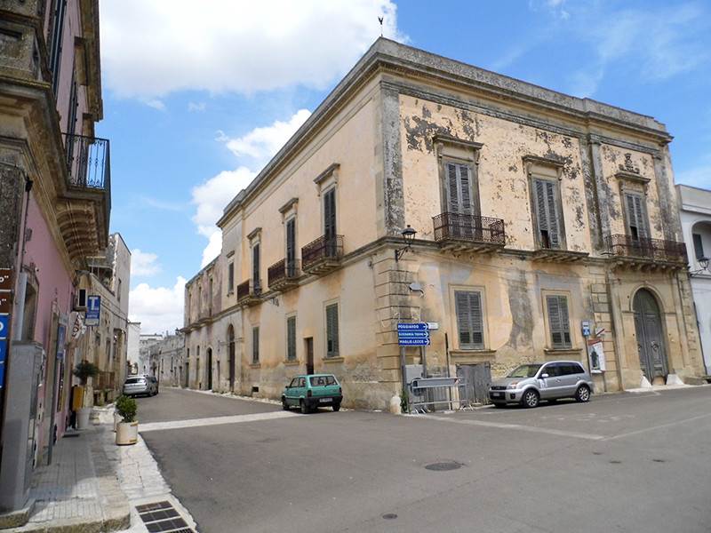 Ancient Palace for sale dating back to 1760, located in the main square of the historic center of Ortelle. It belonged to a well-known noble family. Arranged on two floors, it has a total covered area of 1000 square meters, between ground floor and first floor, as well as cellars dug into the tuff, where even today there are all the equipment for squeezing and processing of grapes. The area of the Torchio and Lu Parmentu has a covered surface of 120 square meters.