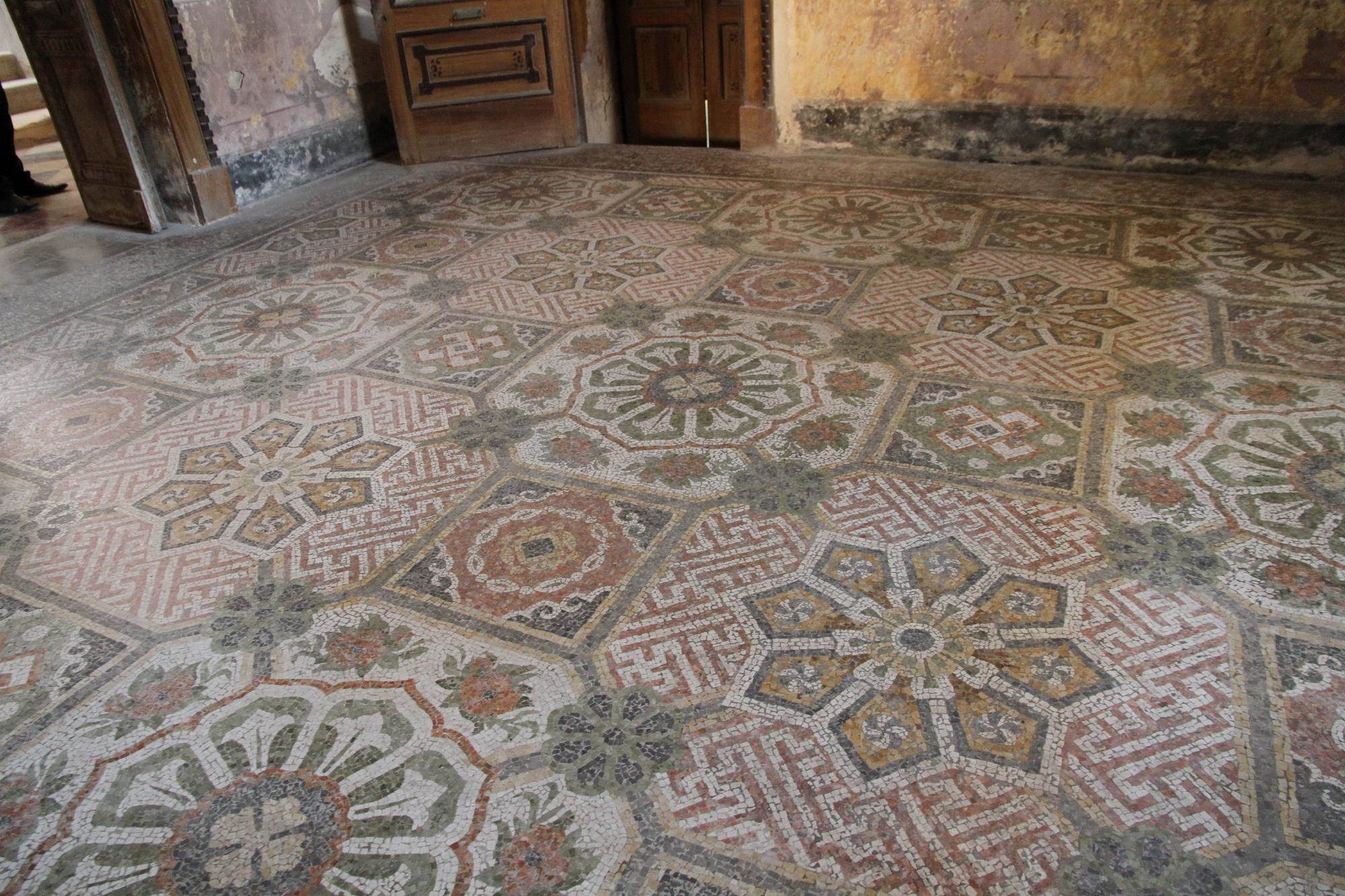 The Palace is accessed from the entrance to the square, and from a secondary on the side street. Both converge in a central atrium partly covered and immediately discovered On the ground floor, the Ancient Palace is composed of various frescoed rooms and mosaics of the time. In addition, there are also kitchens and servants' rooms. From the atrium, a staircase starts for the first floor that serves the servants' rooms, once used for supplies and the preparation of meals of the nobles. On the first floor there are several rooms, many of which are frescoed and with floors in original mosaics of the time. The whole structure is in perfect condition. Even the interior fixtures and someone outside.