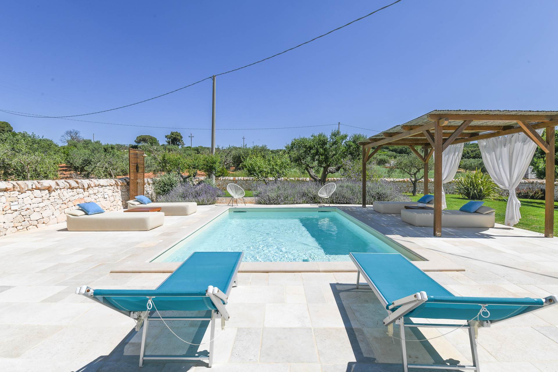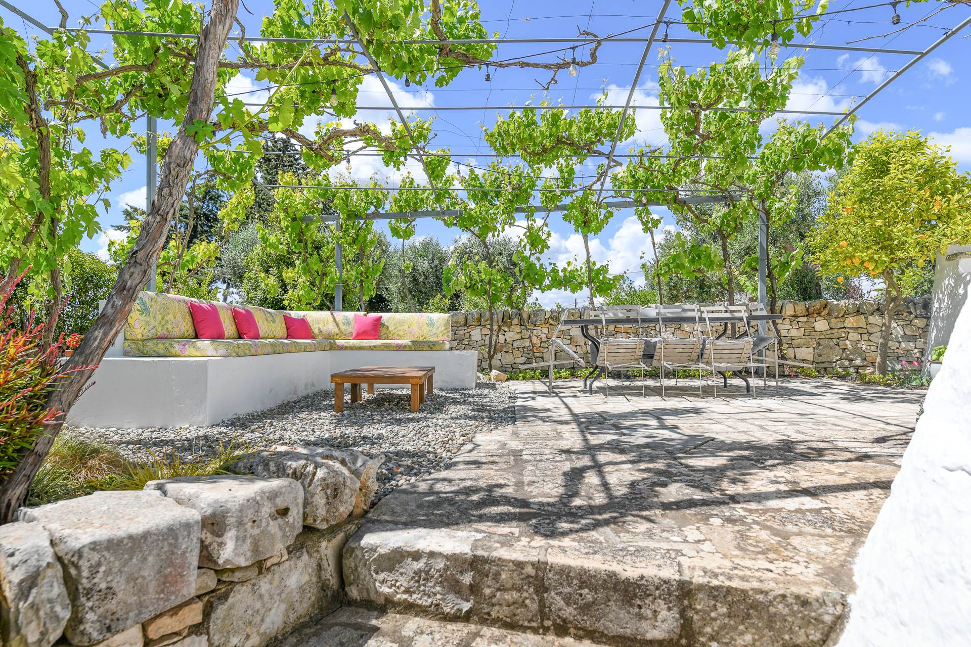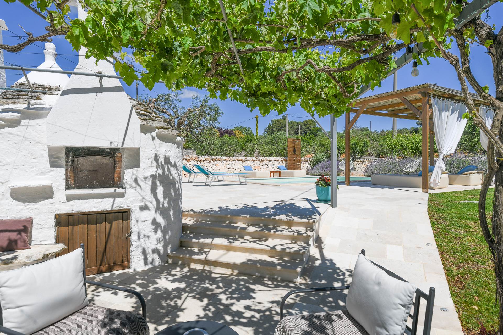 Trulli Pergola has a large outdoor space that allows you to enjoy outdoor dining or simply relax near the salt water swimming pool which measures approximately 4 x 6 m.