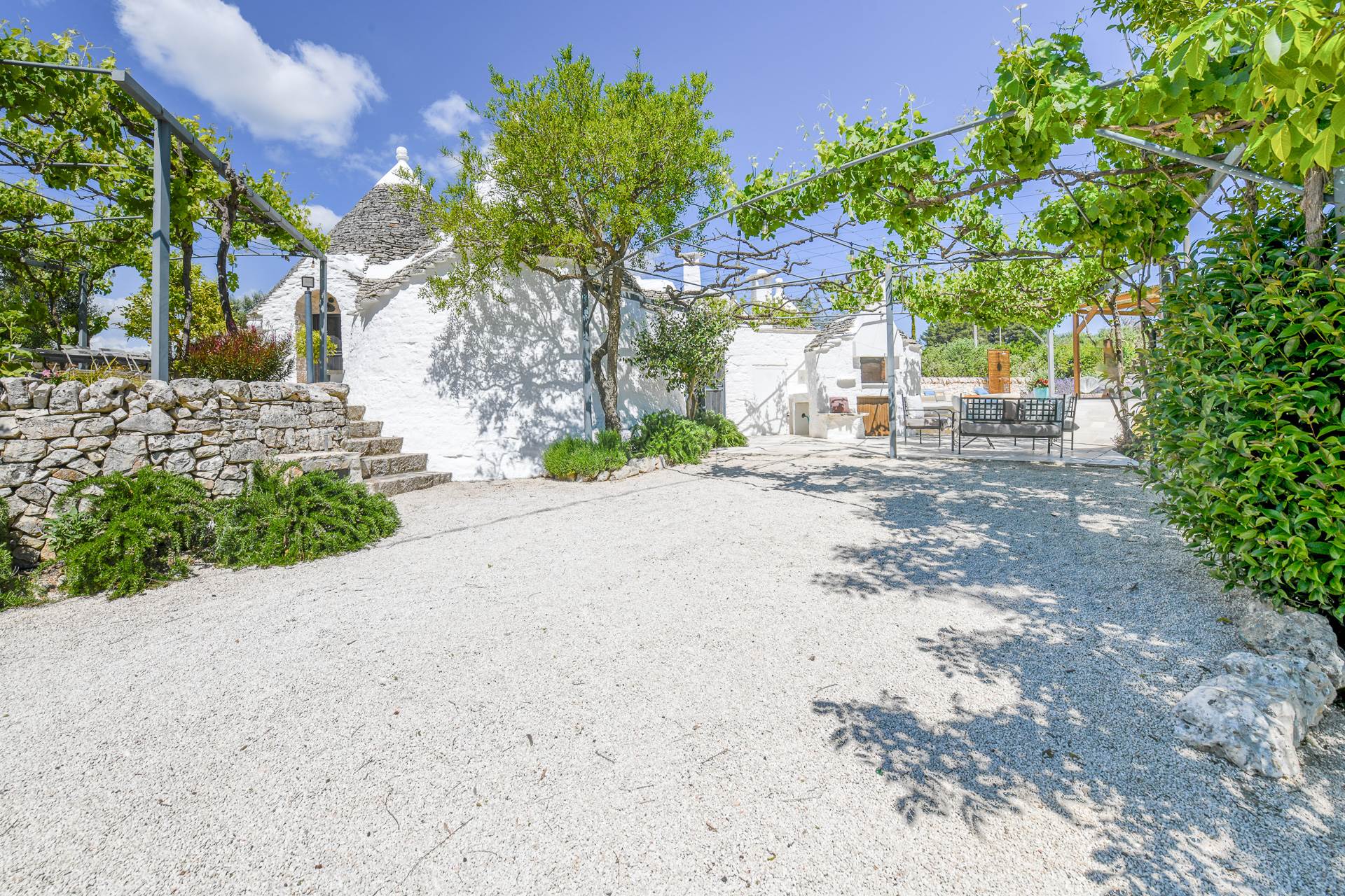 Trulli Pergola represents an authentic gem of beauty and serenity located in the picturesque countryside of Martina Franca. This enchanting property is made up of charming trulli, traditional stone houses with domed roofs, which stand majestically in the rural Apulian landscape.