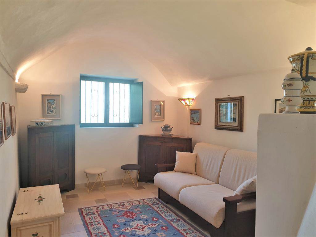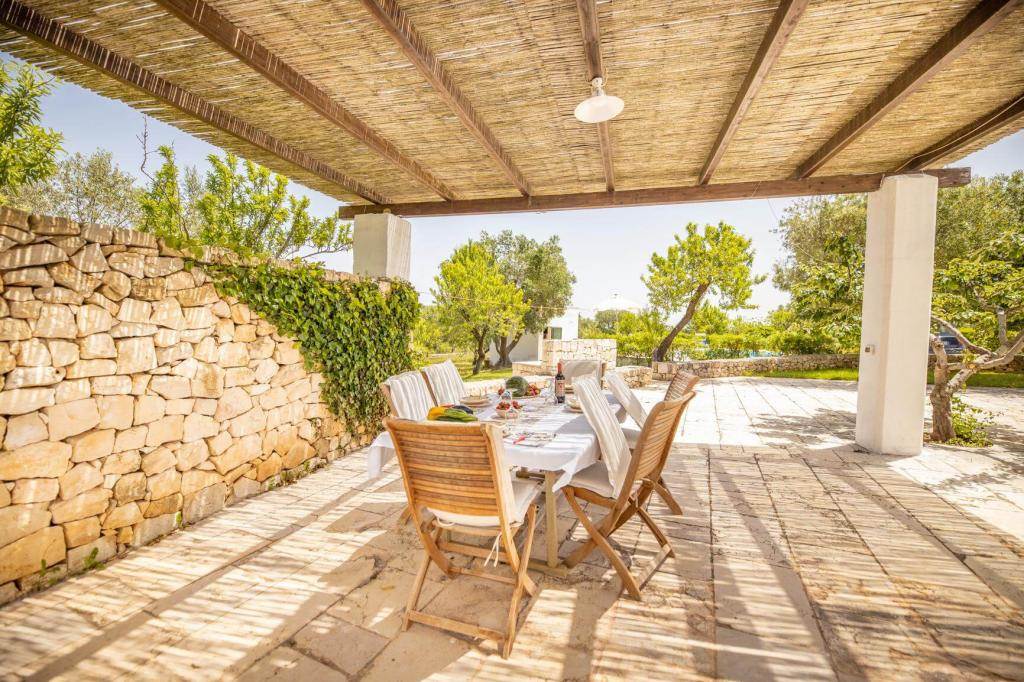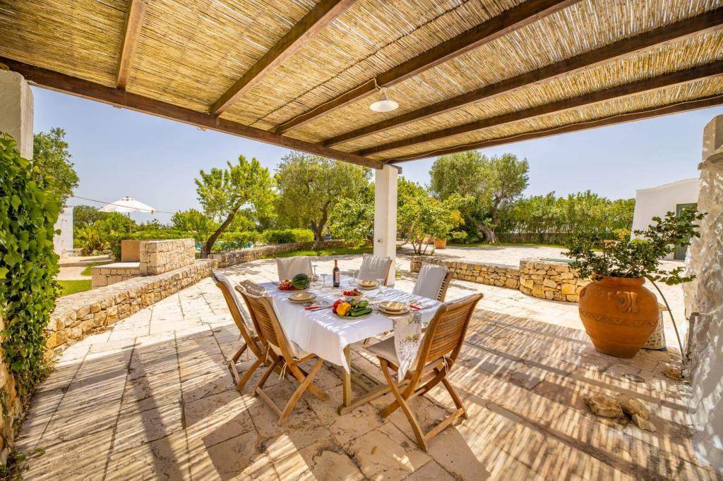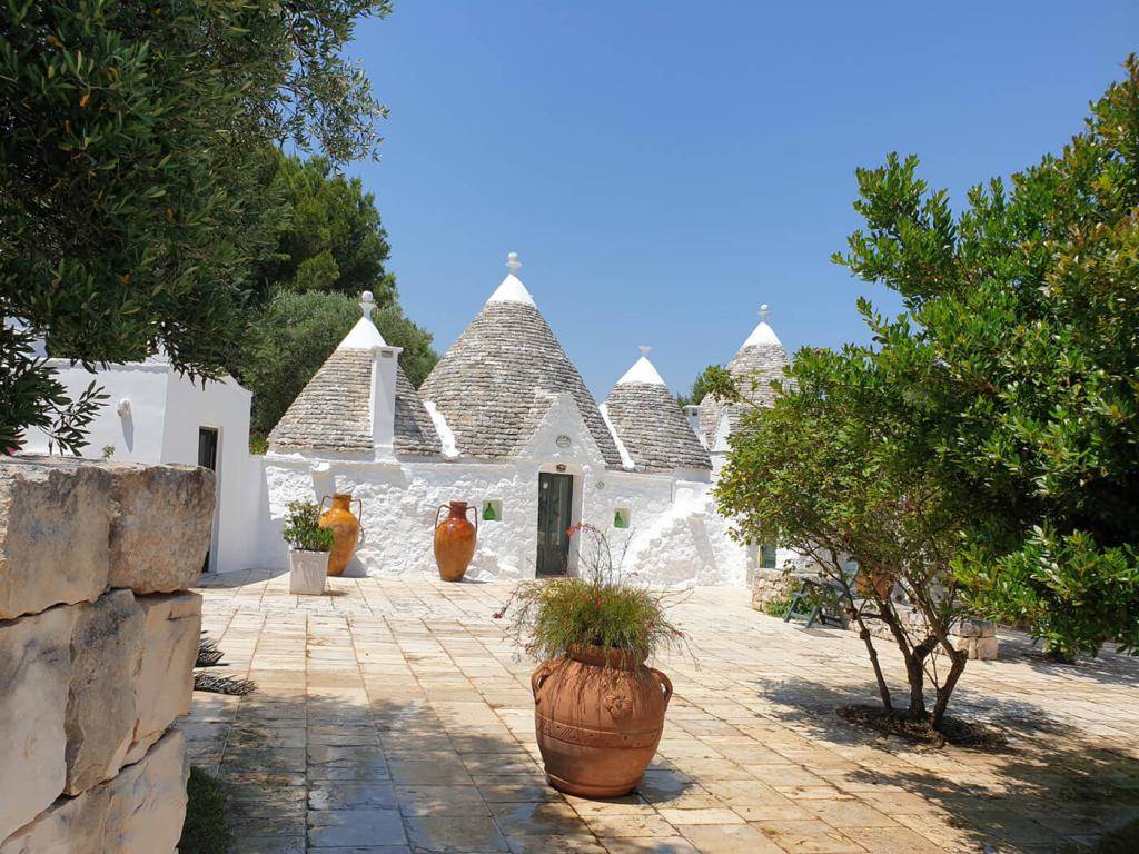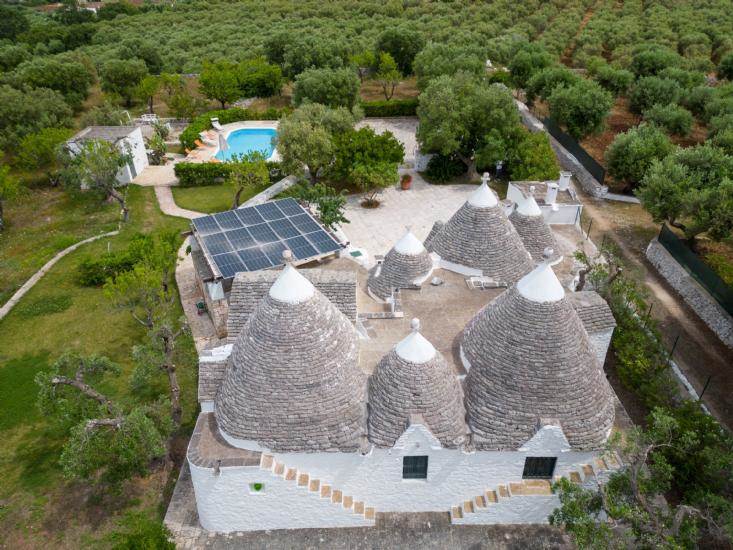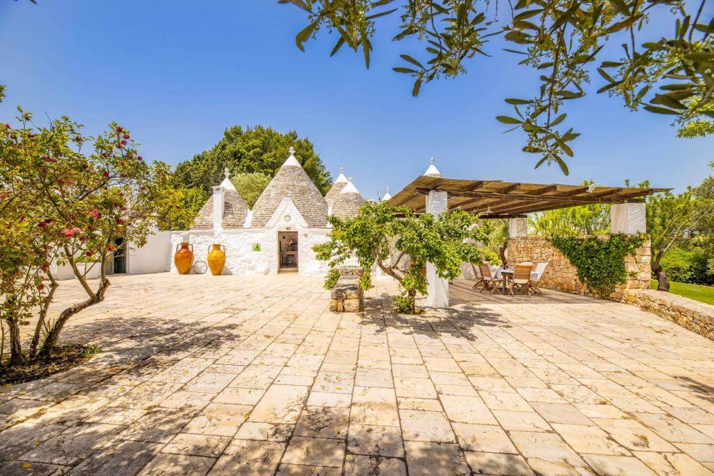 The property features a suggestive set of six trulli, typical conical buildings of the region, and two lamias, structures with terrace roofs.