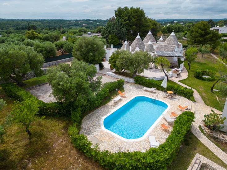 Stunning Trulli complex with swimming pool, garden and olive grove, with three bedrooms and two bathrooms in Ostuni, just five minutes from the centre.
