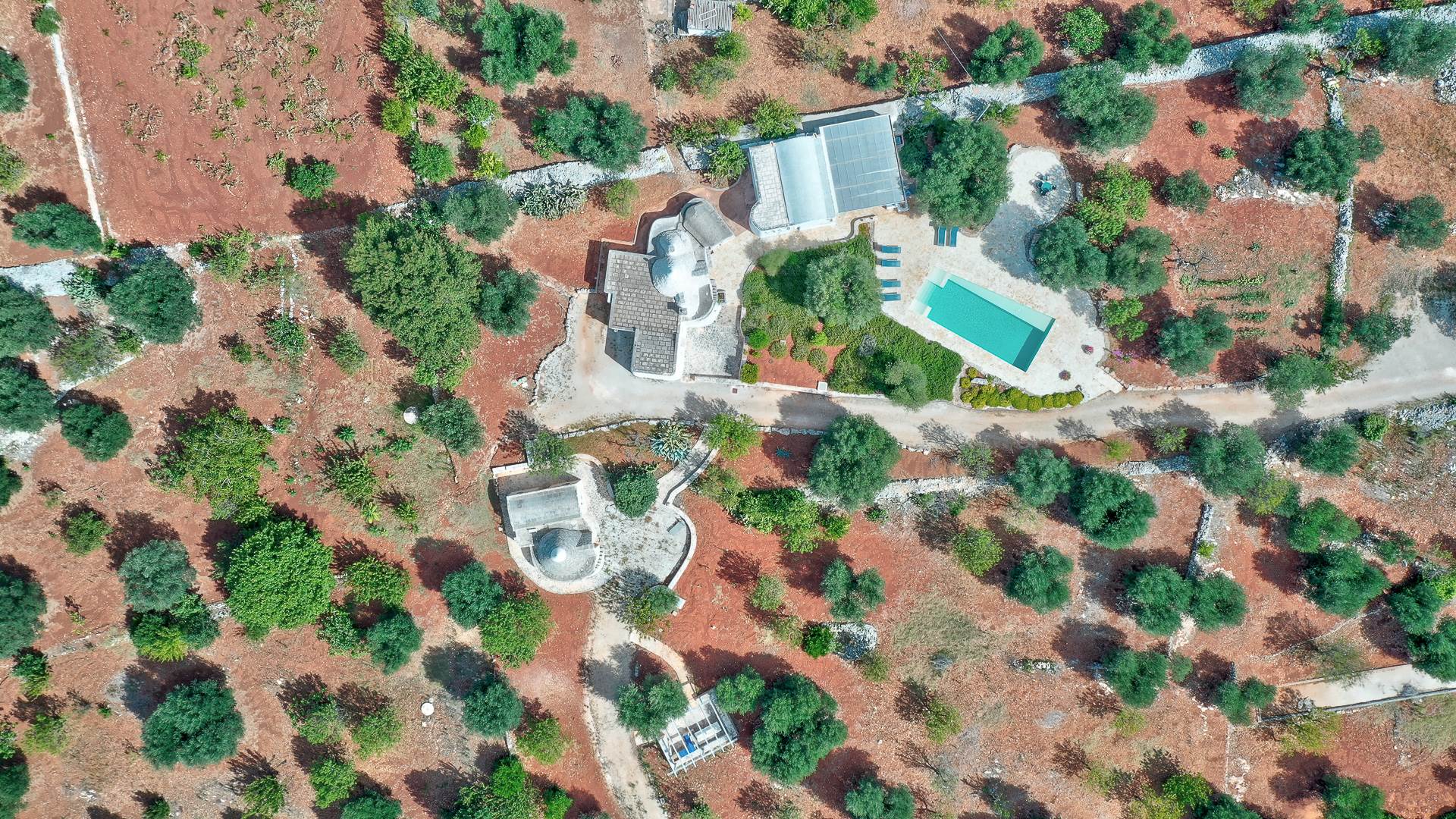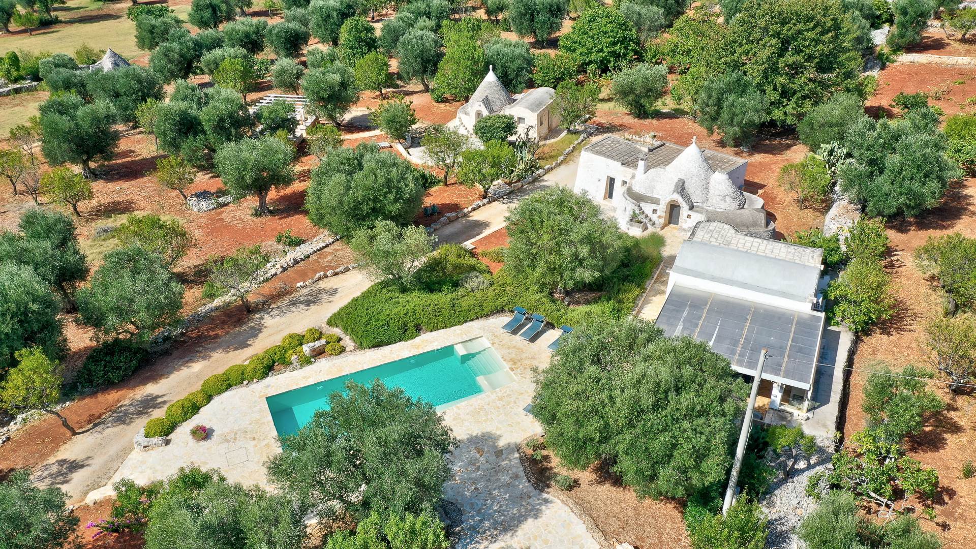 The context surrounding the property is a splendid example of the rural landscape of Puglia, characterized by the silvery color of the foliage of the olive trees; colored by red, intense and warm earth; delimited by the typical dry stone walls.
