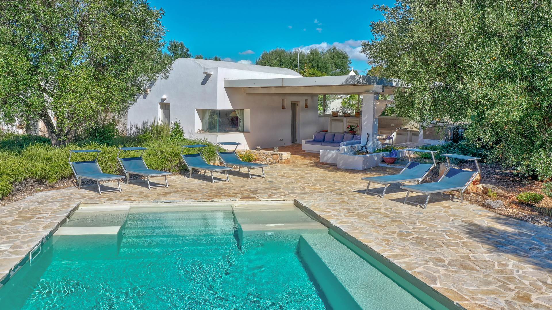 A careful restoration, respectful of the ancient construction techniques of the trulli, has been able to mix ancient and modern, giving life to an original property and charm.