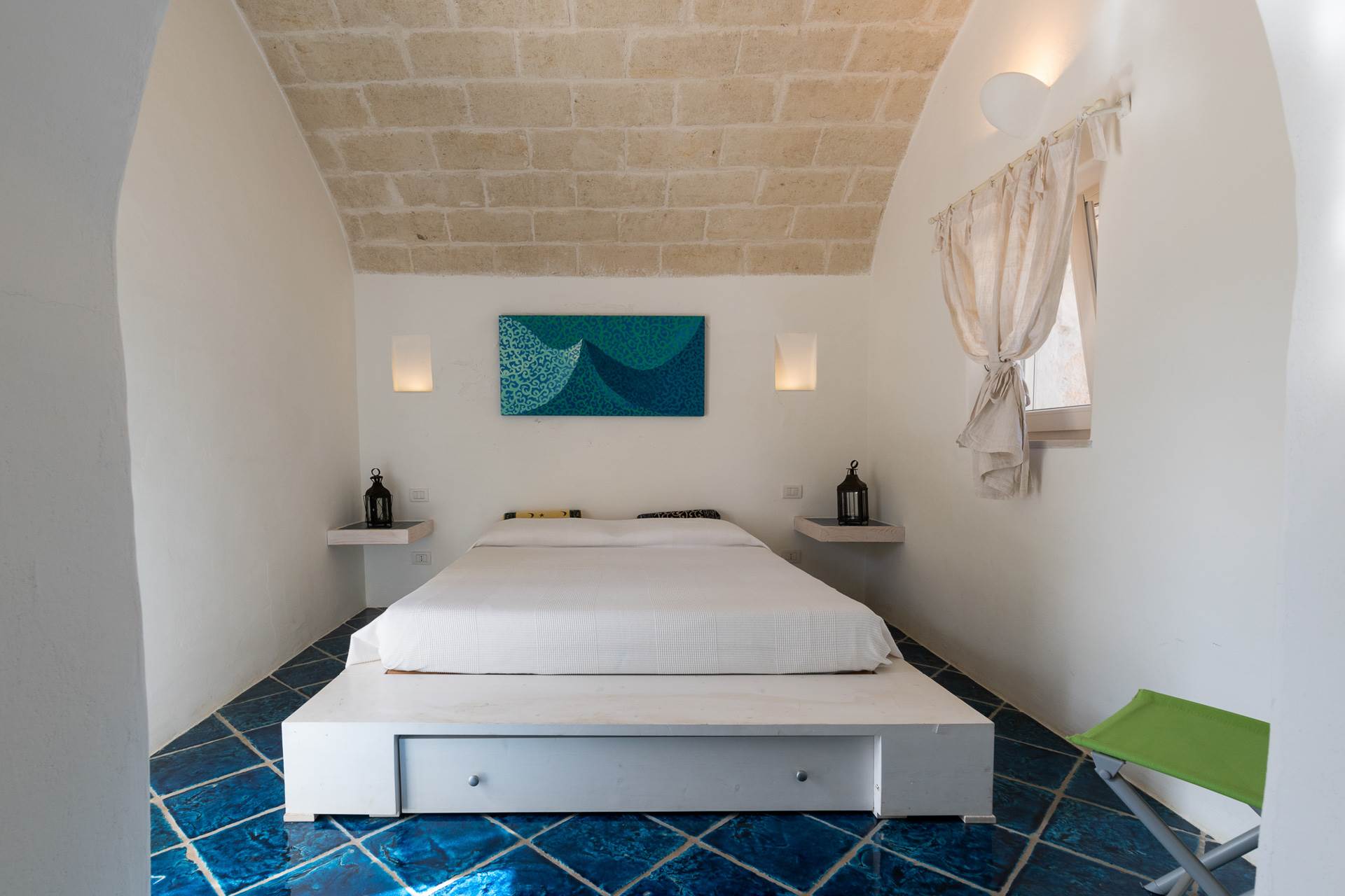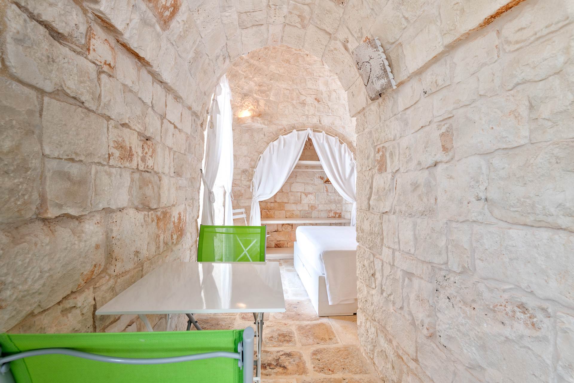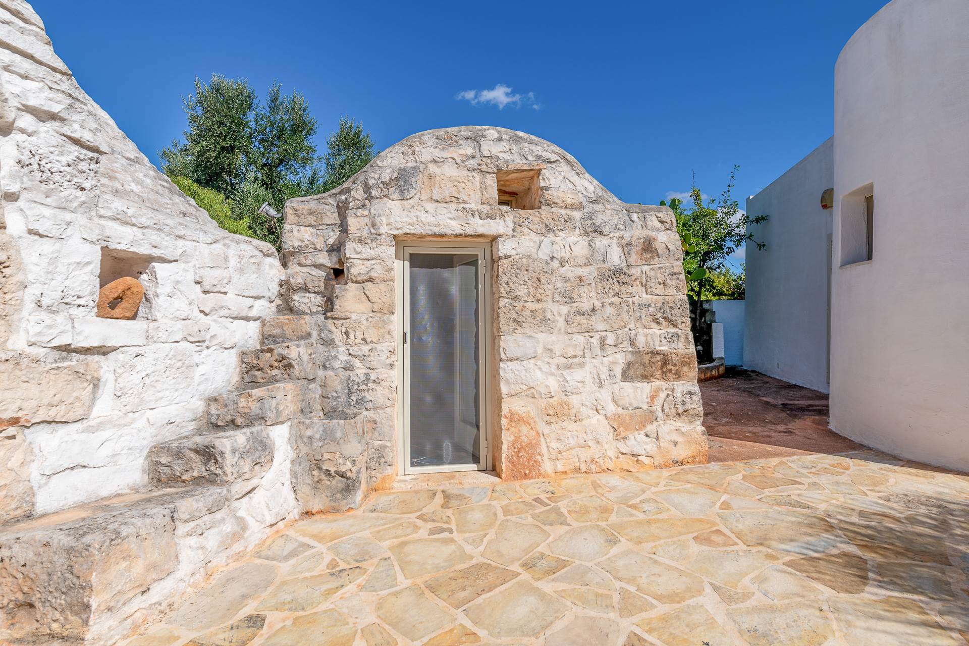 The second building is a characteristic trullo with lamia that is divided into a living room, a double bedroom, bathroom with shower, utility room/ laundry room.