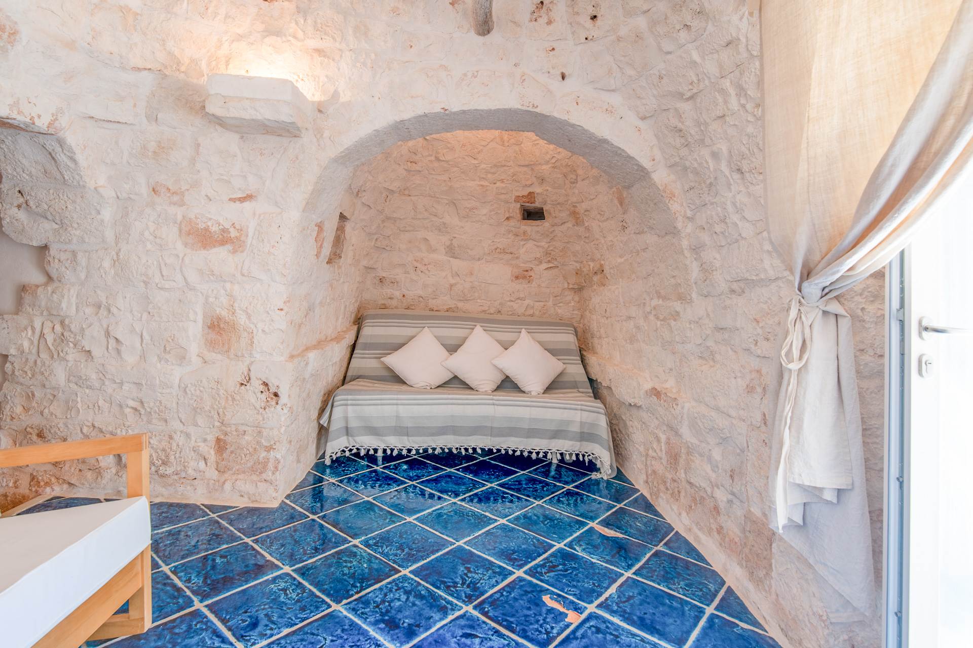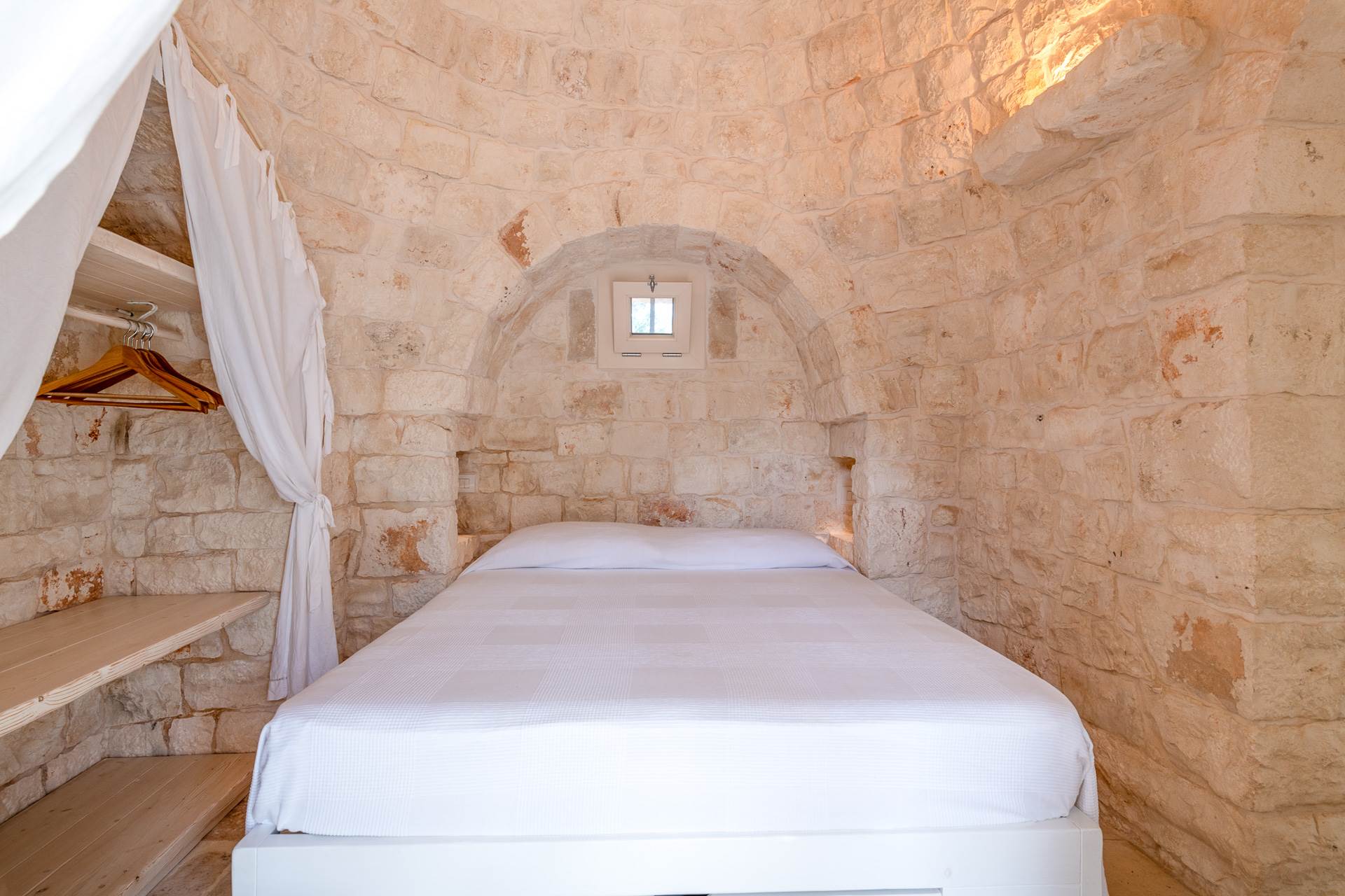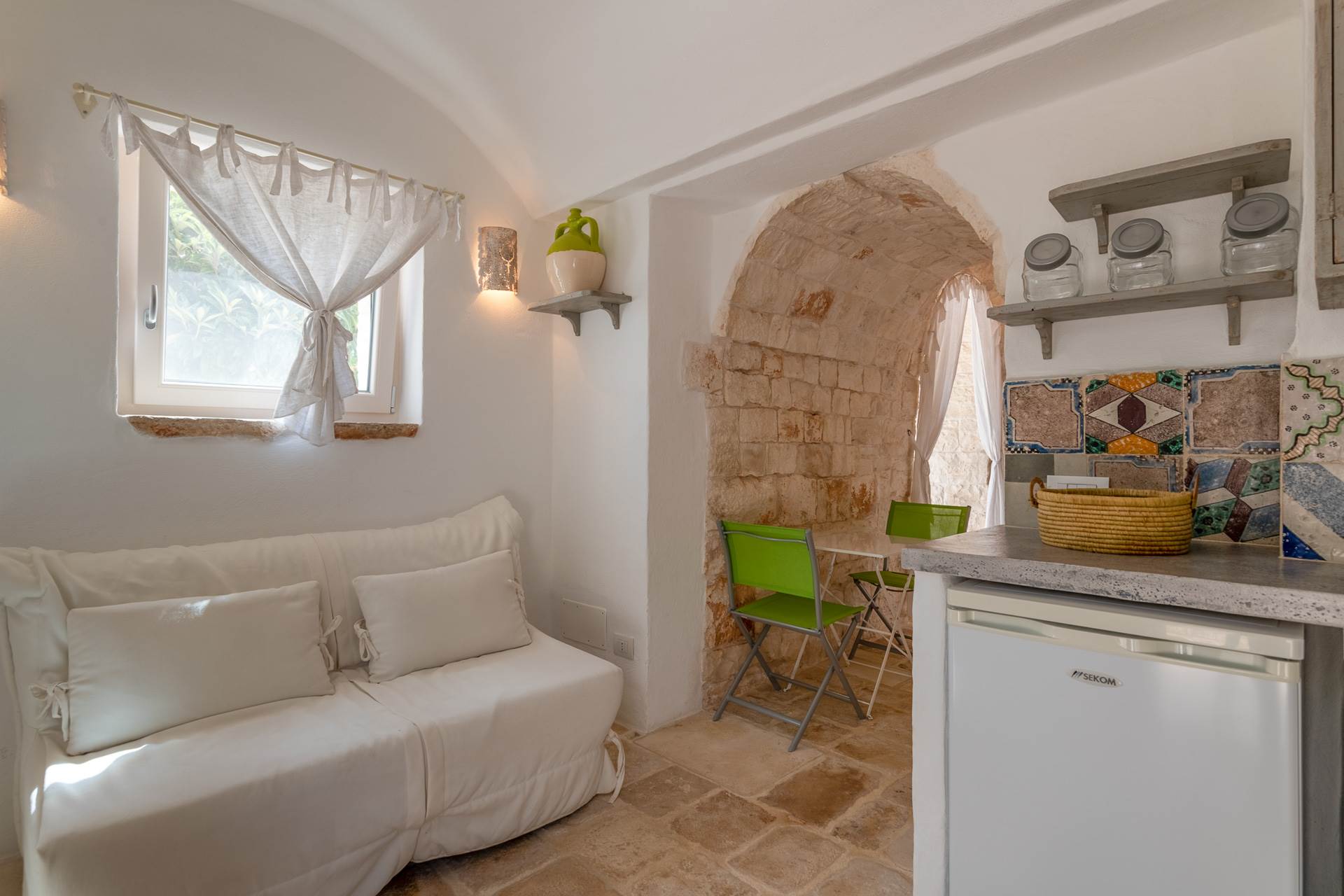 The third building is another typical trullo that houses a living room with sofa bed, a kitchenette, a double bedroom and a bathroom with shower.