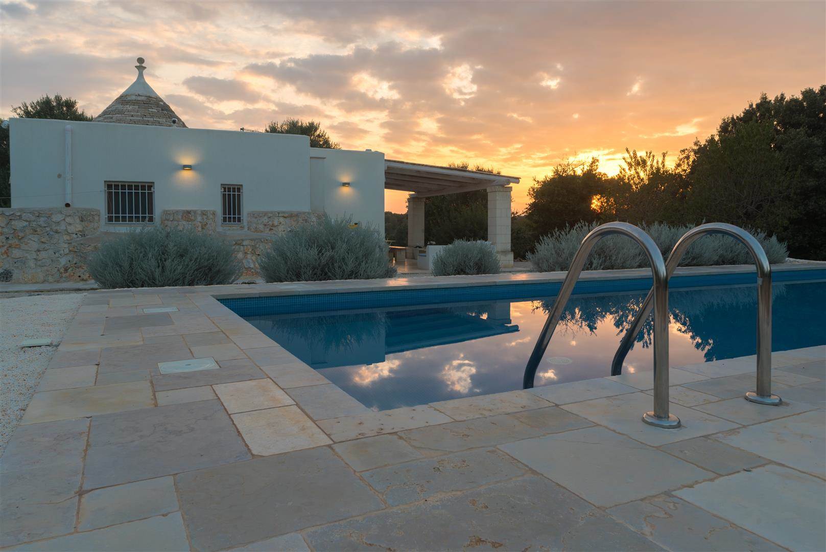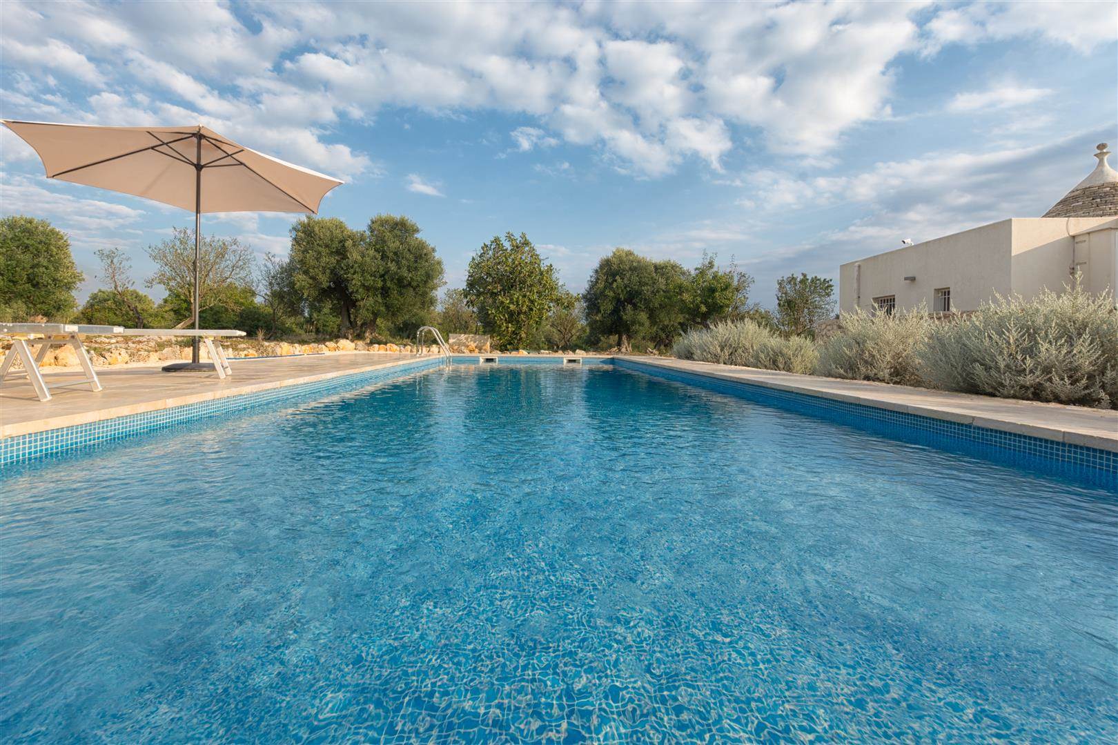 This is a new Trullo, that has been designed for out door living. Its near to the town of Carovigno and is in the countryside. The Trullo sits in its own grounds of approximately 8,000sqm, with a large pool, 12m x 4m.