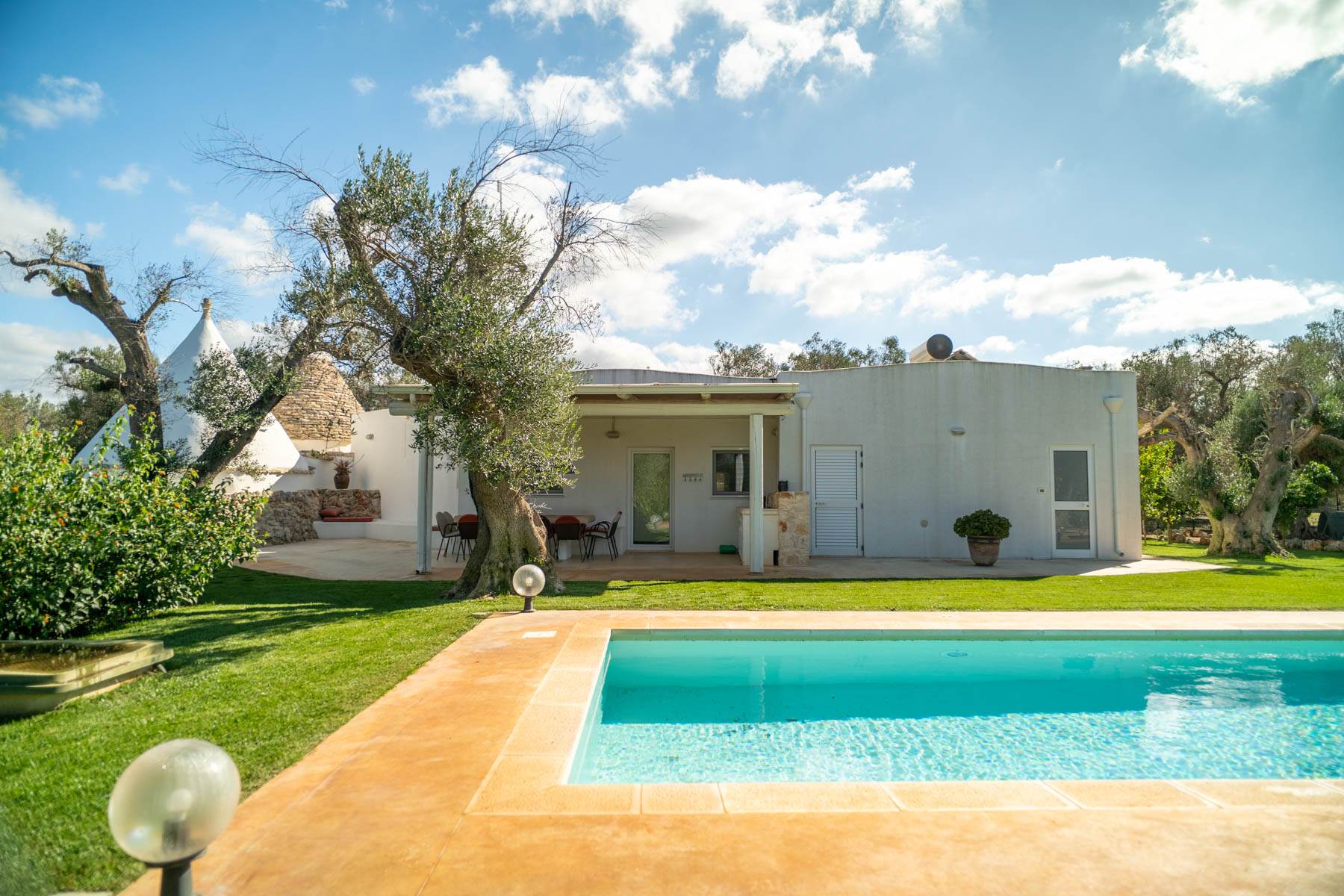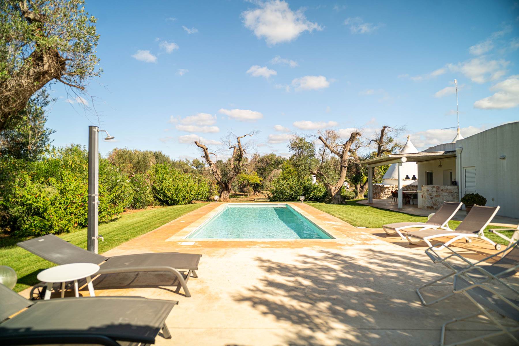 We offer you a charming traditional trullo, perfectly renovated, immersed in the splendid countryside of the upper Salento with a private swimming pool. The property offers a unique atmosphere, combining rustic charm with all modern comforts. The trullo located within a plot of 5500 m2 completely fenced and cultivated with olive trees and fruit trees, has a surface area of ​​approximately 140 m2 and has 4 bedrooms, one with an ensuite bathroom, a second bathroom serving the structure a large and comfortable living room with open kitchen.