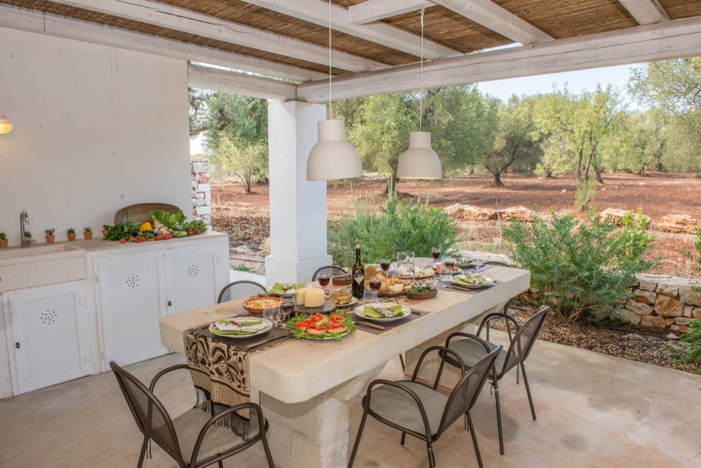 Immersed in greenery and silence, with a plot of 10,500 m2, this enchanting trullo is located in a unique position; from here it is possible to very easily reach the Adriatic coast which is 20 km away and the town center is only 2.5 km away. It has a well-kept garden and an outdoor barbecue area, perfect...