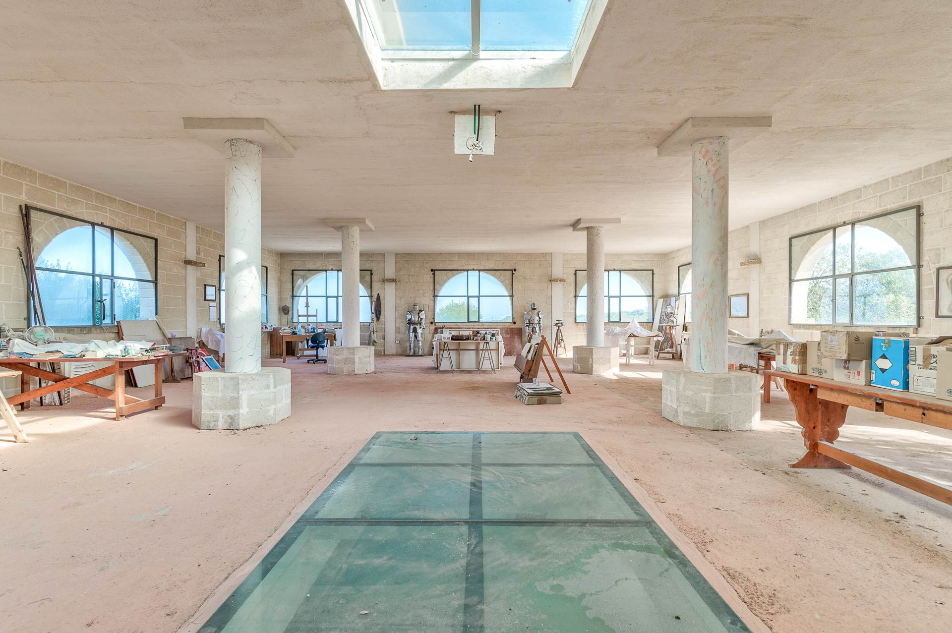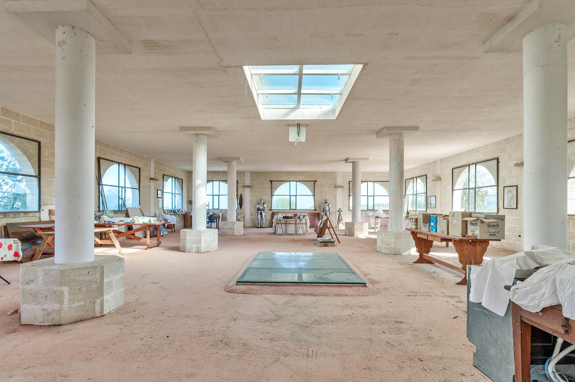The open space on the ground floor has large windows and a characteristic skylight on the ceiling makes the environment particularly bright.