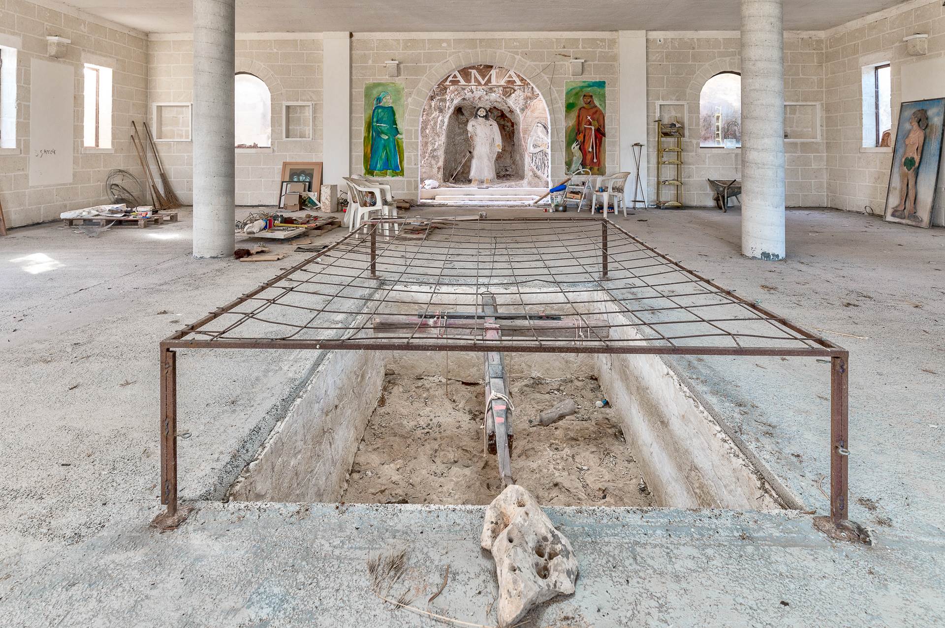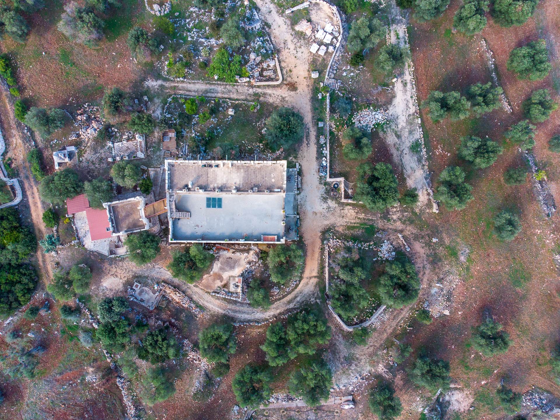 An external staircase located near the kitchen connects the living area to the 5 bedrooms on the first floor. All rooms have private bathrooms. The initial project involved the construction of an apartment complete with a living area as well.