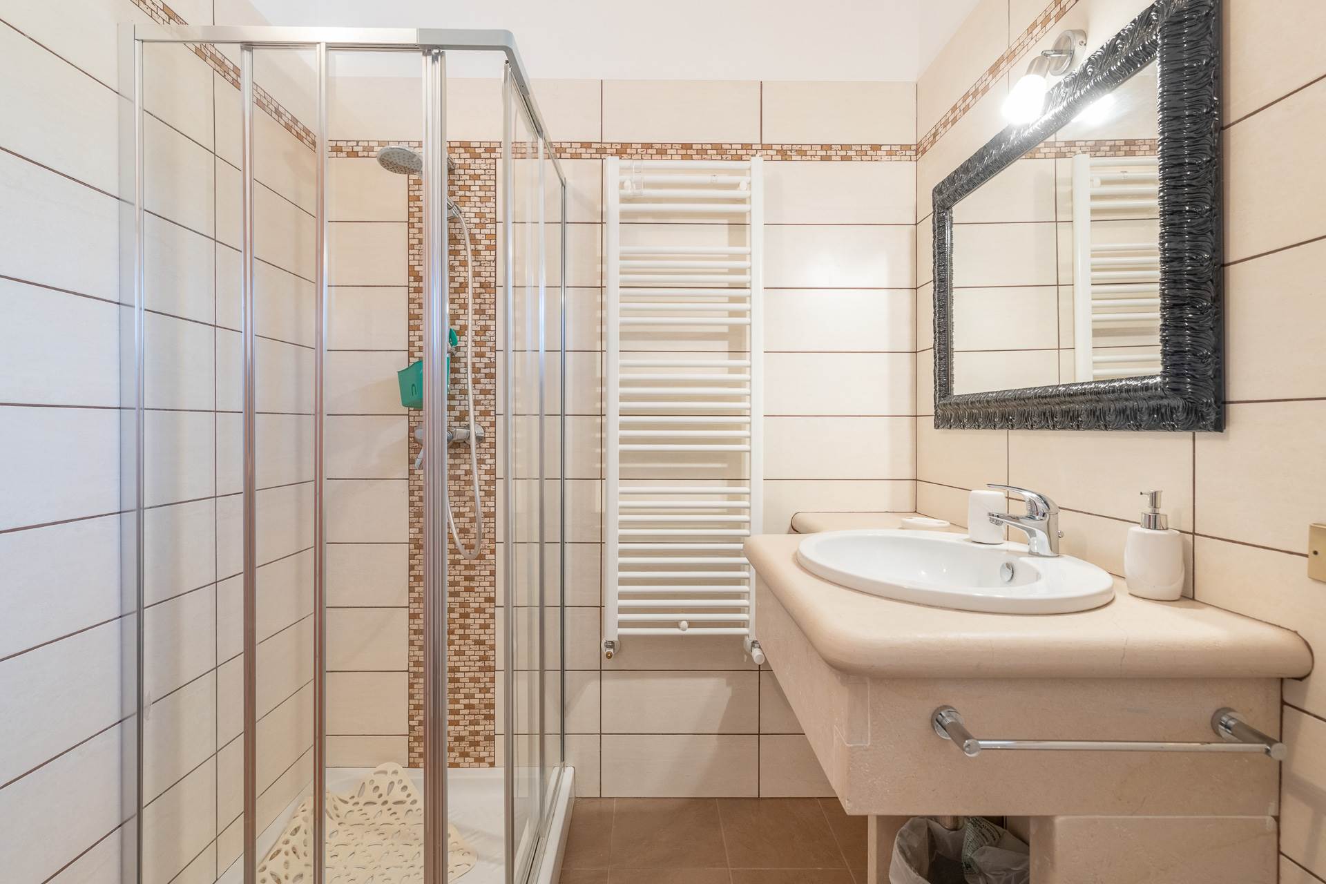 The second apartment opens onto a cozy living room with direct exit to the veranda, ideal for relaxing moments in the open air.
