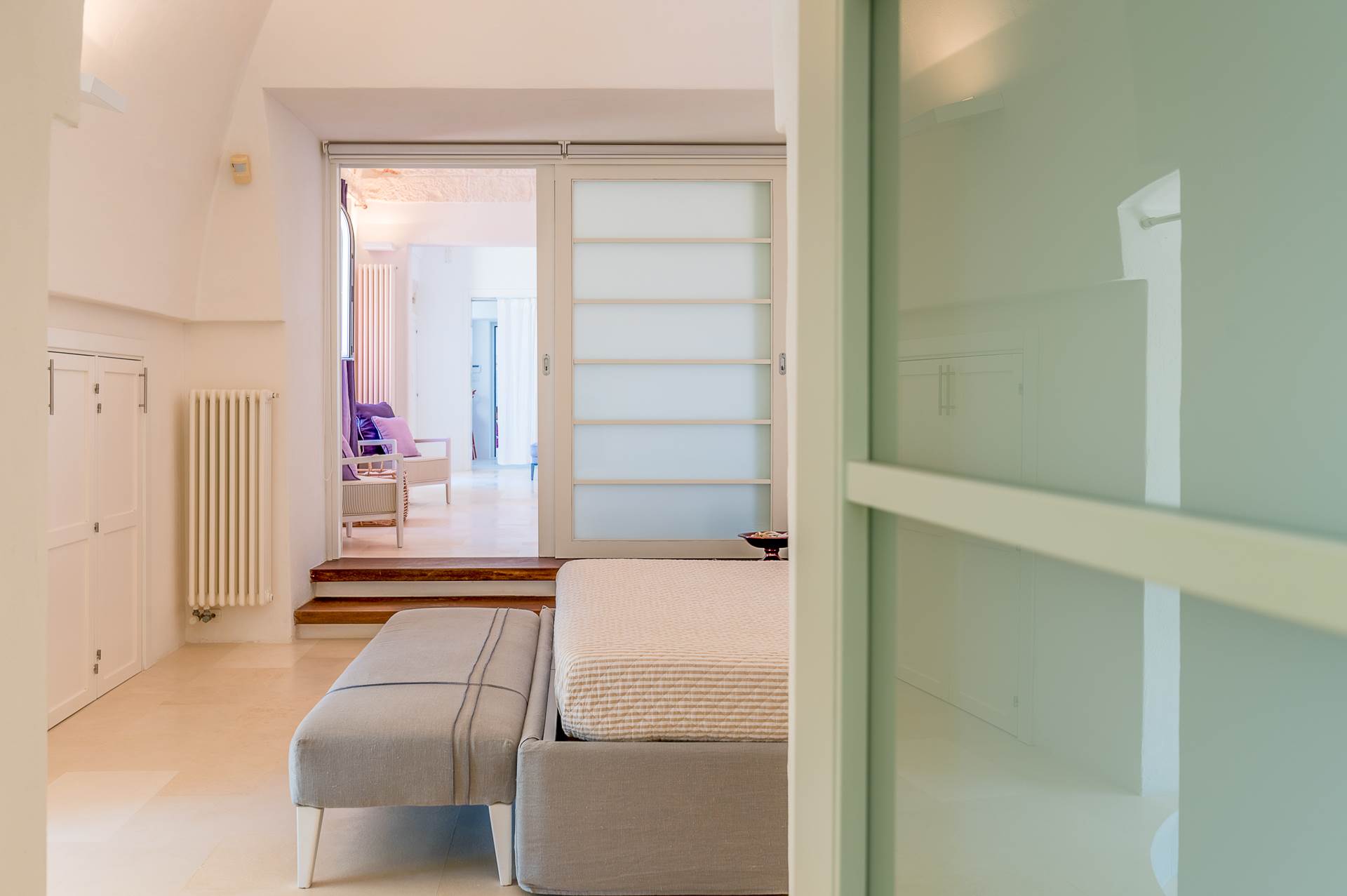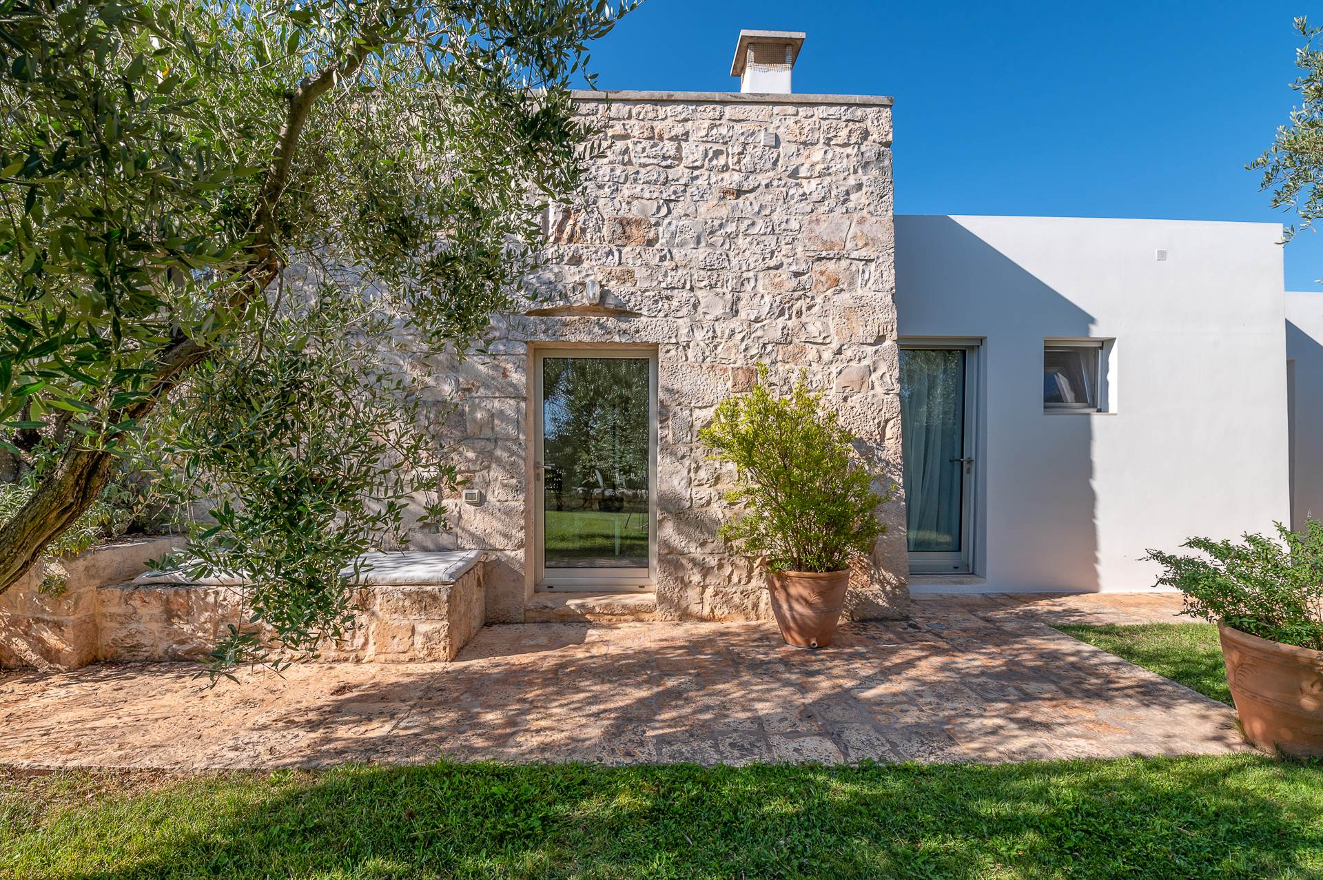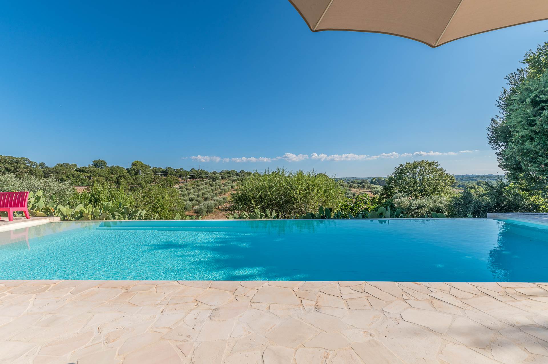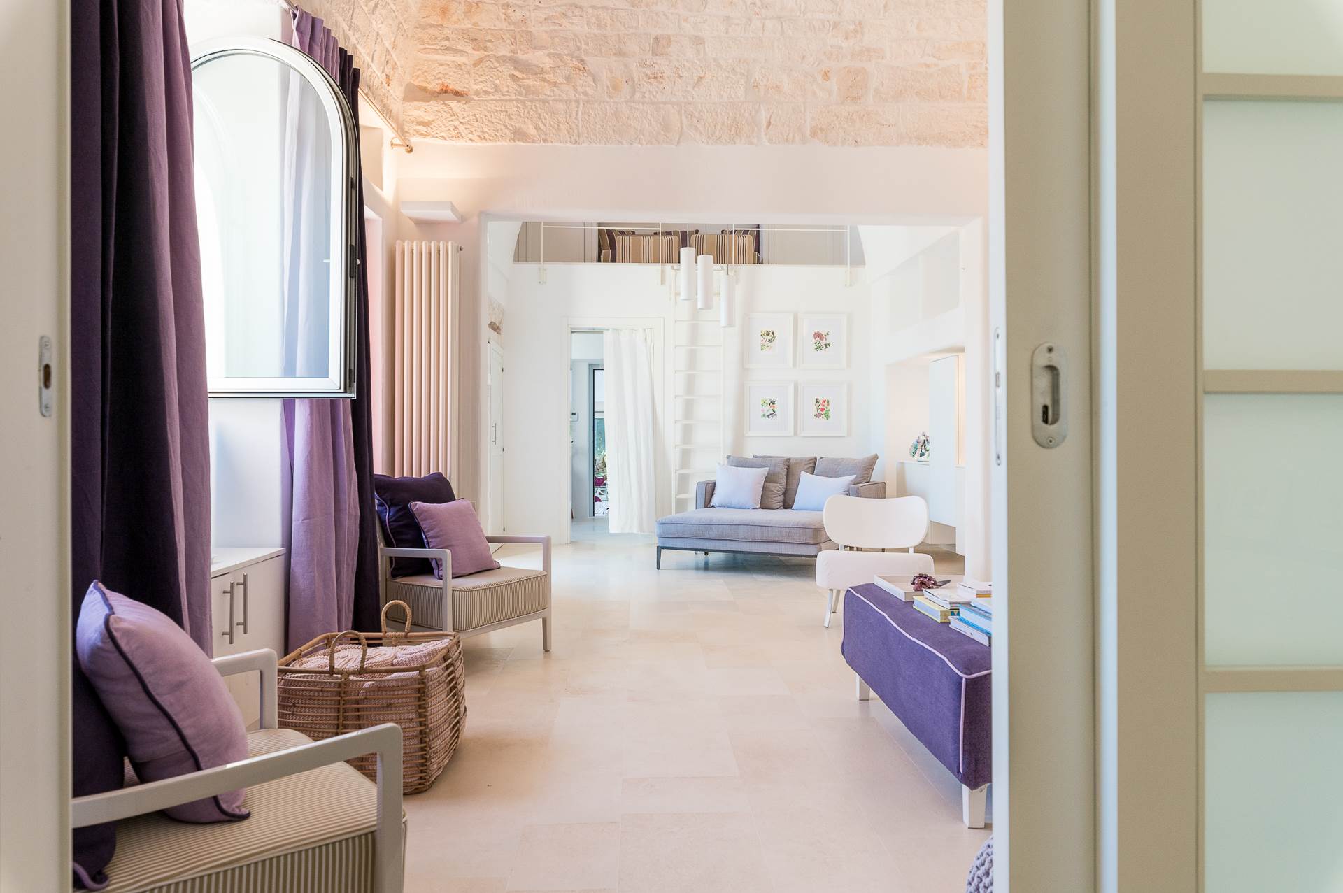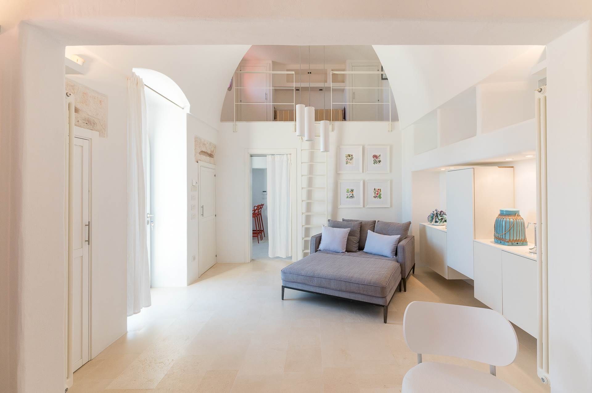 The architecture of the property and the panoramic views from it are of rare beauty, rich in the typical colors of Puglia: the blue of the sky, the intense red of the earth, the dark green of the olive trees, the dazzling white of the lime.