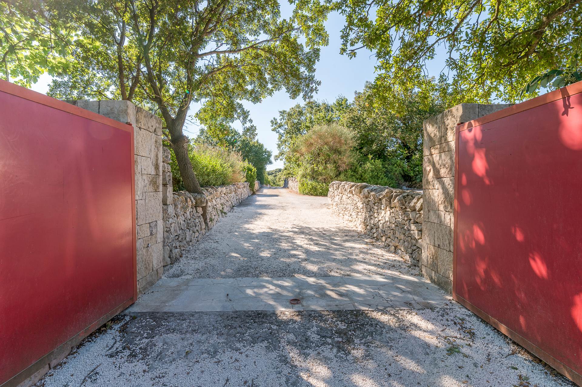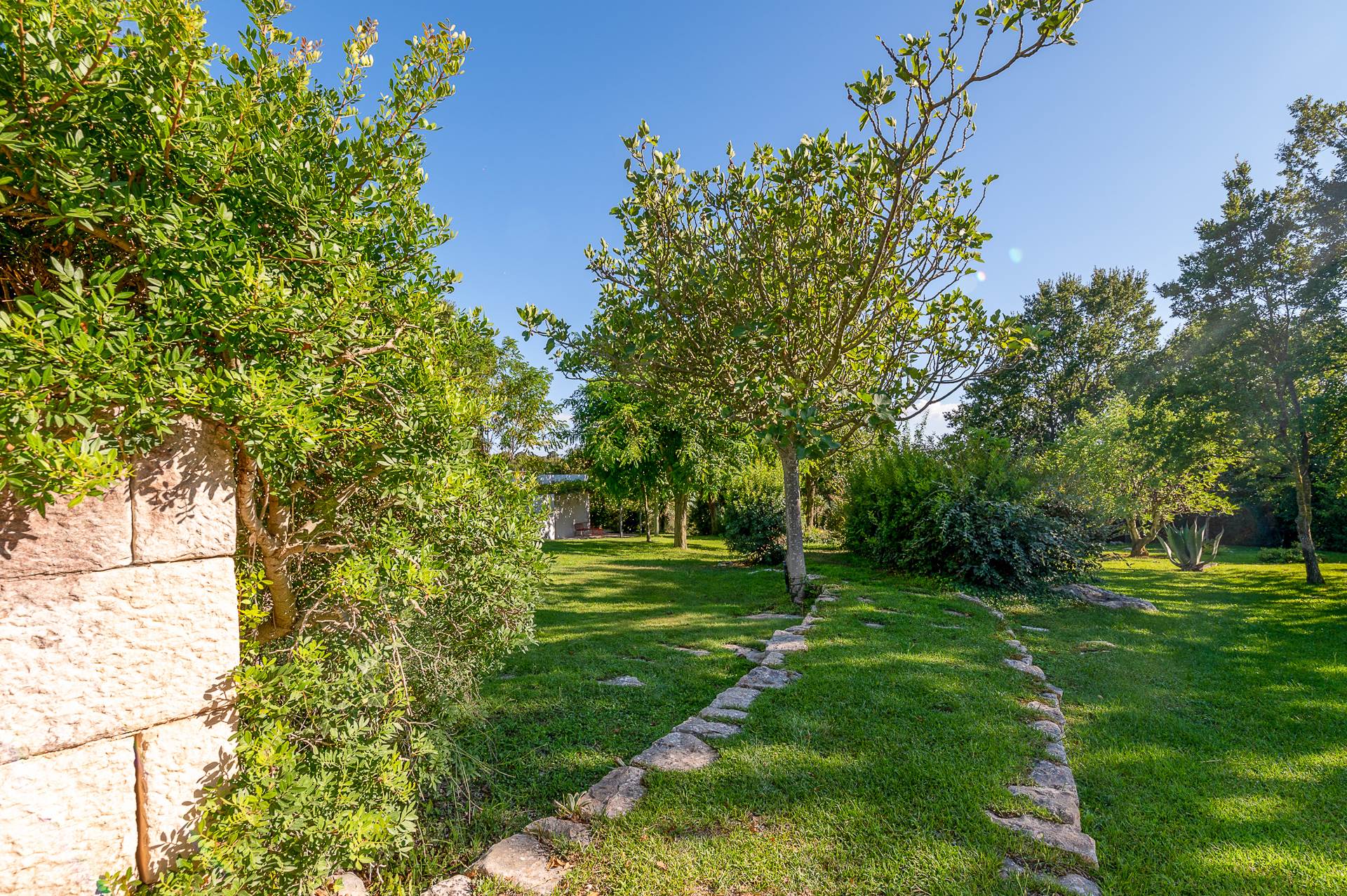The private land, which surrounds the property, is about 4.5 hectares, partly cultivated as a garden with lawn, forest, orchard and olive grove, fully fenced.