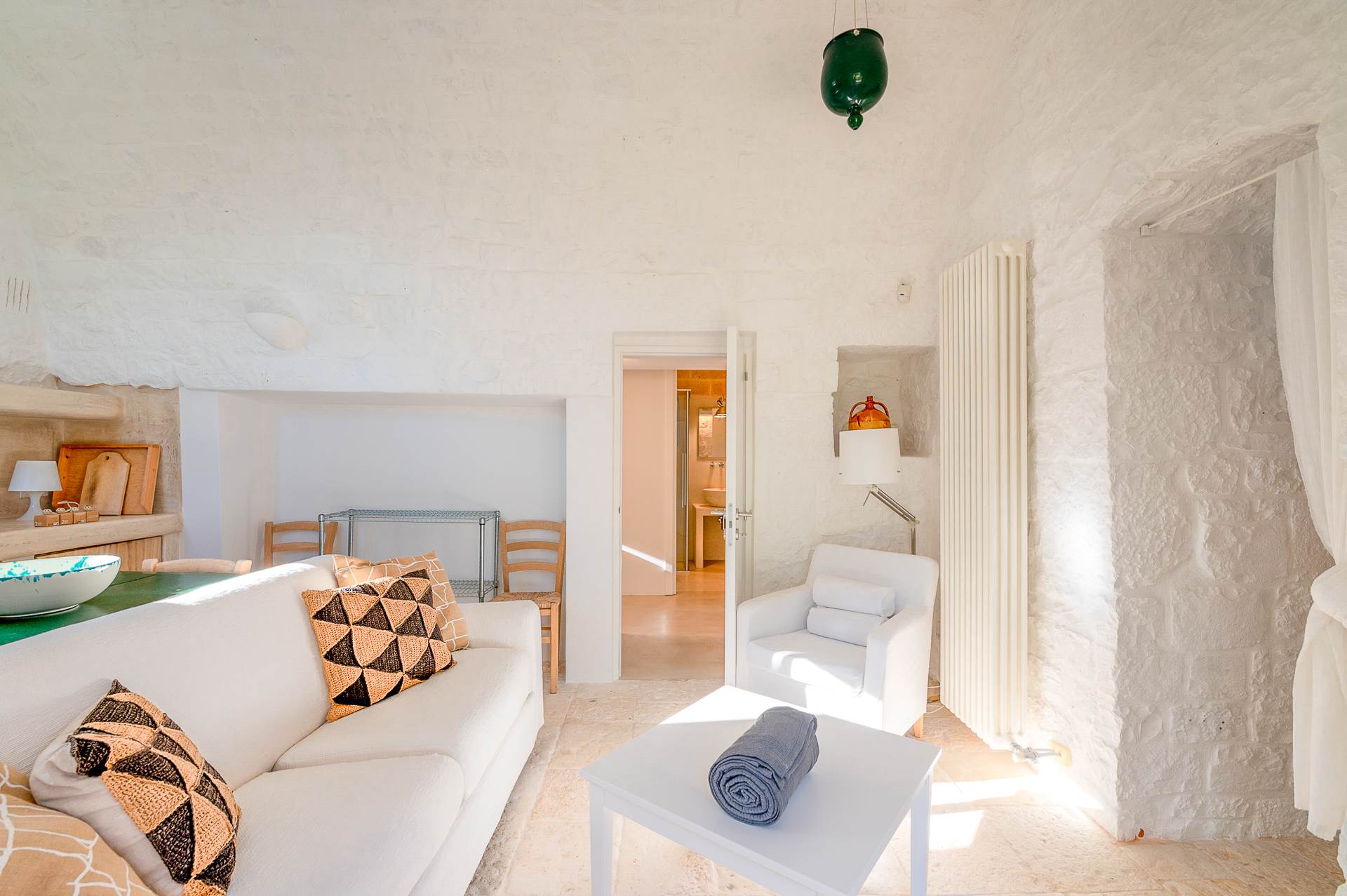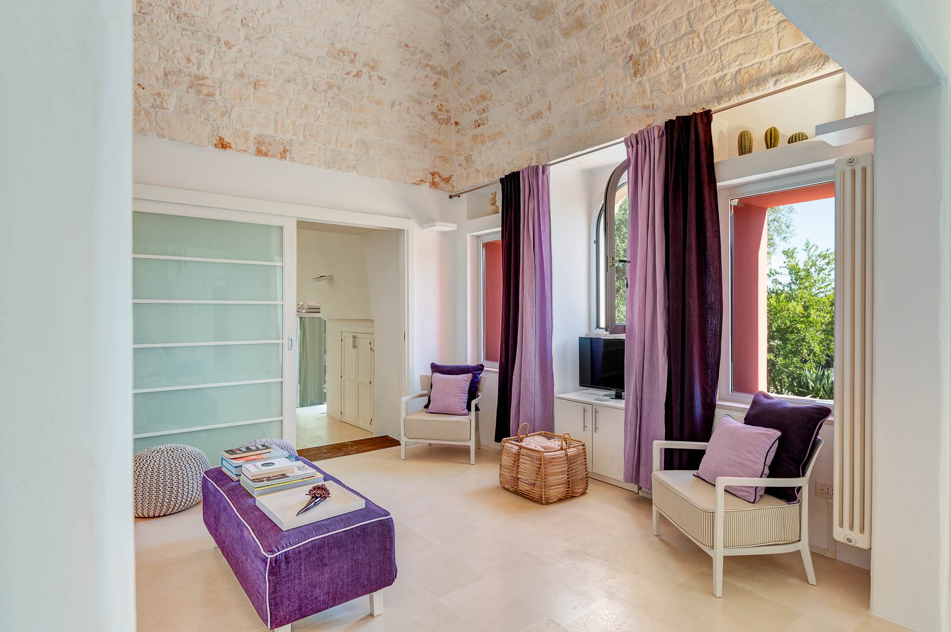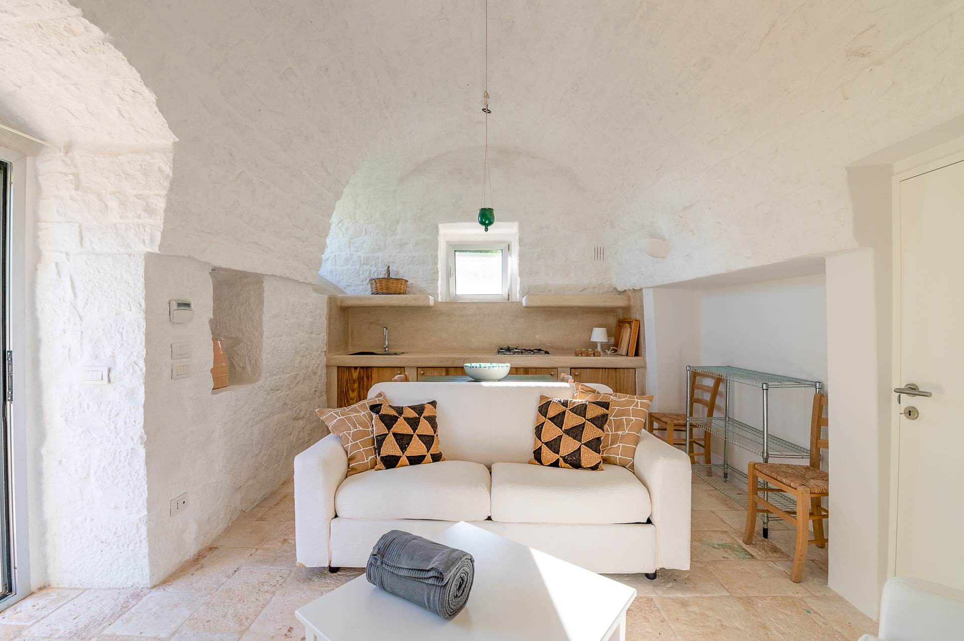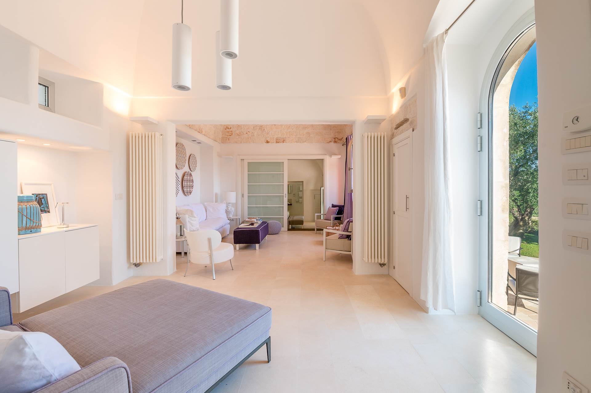 The rooms are large and bright, with local stone or resin floors, interior doors, ceilings with vaults, barrel and star.