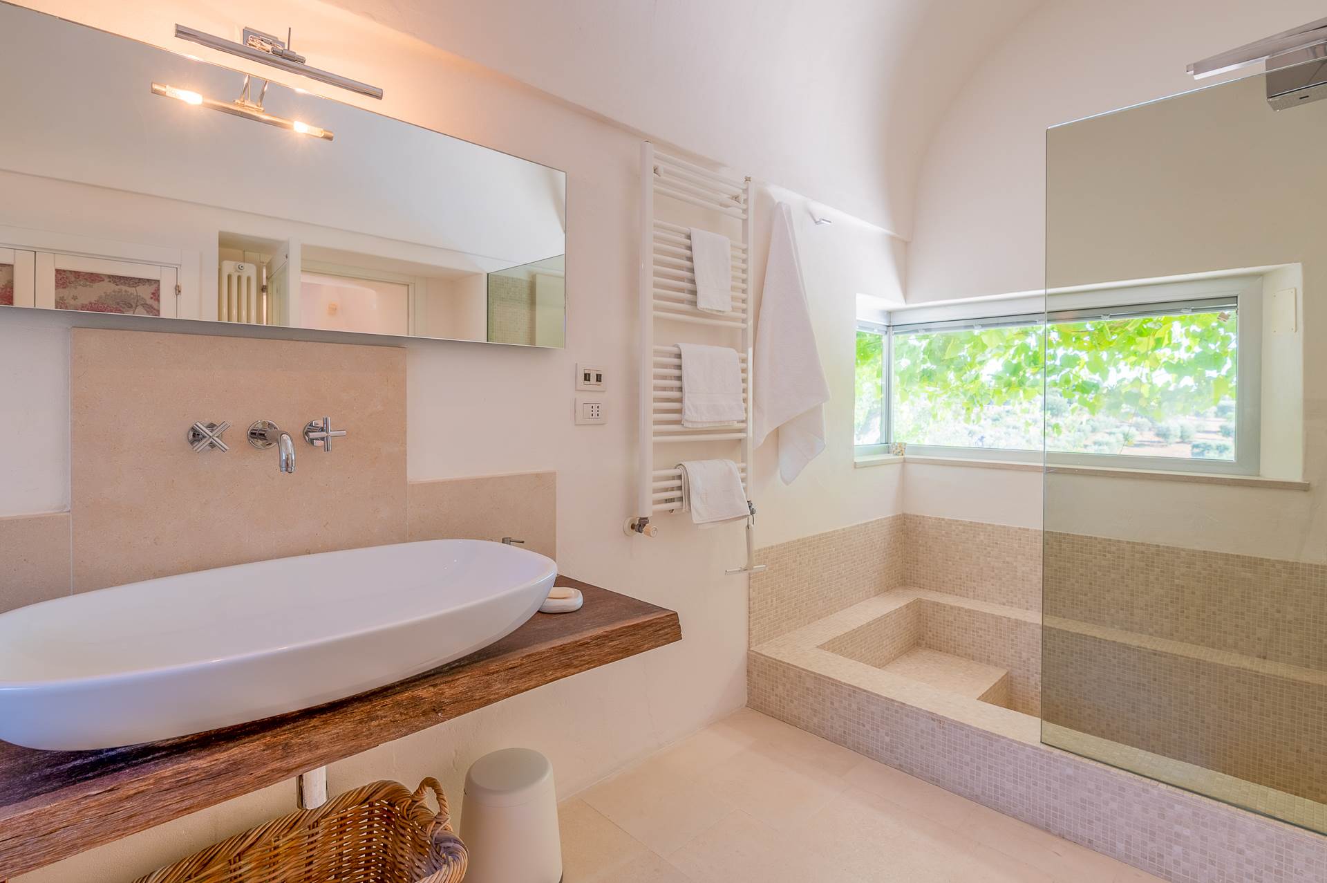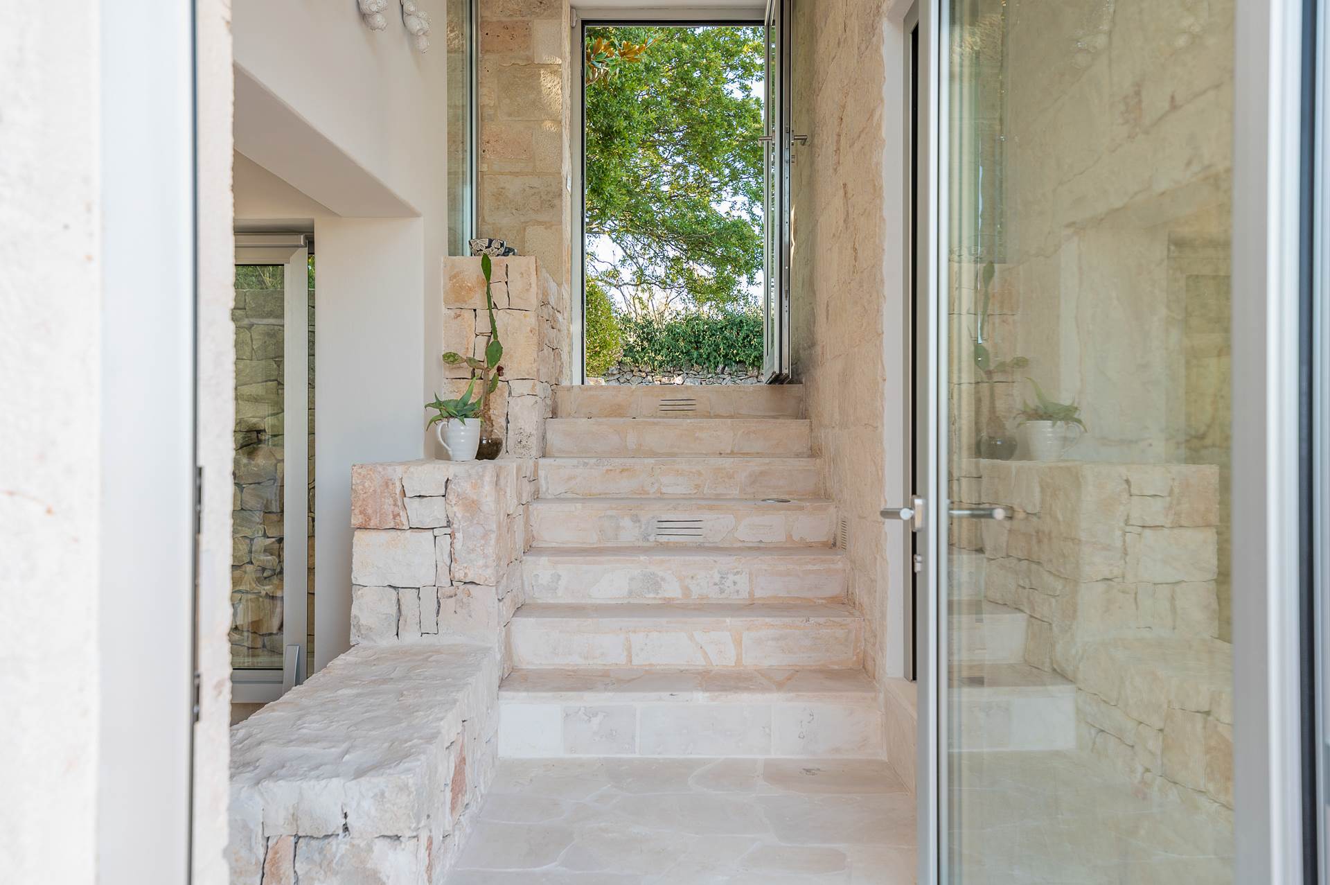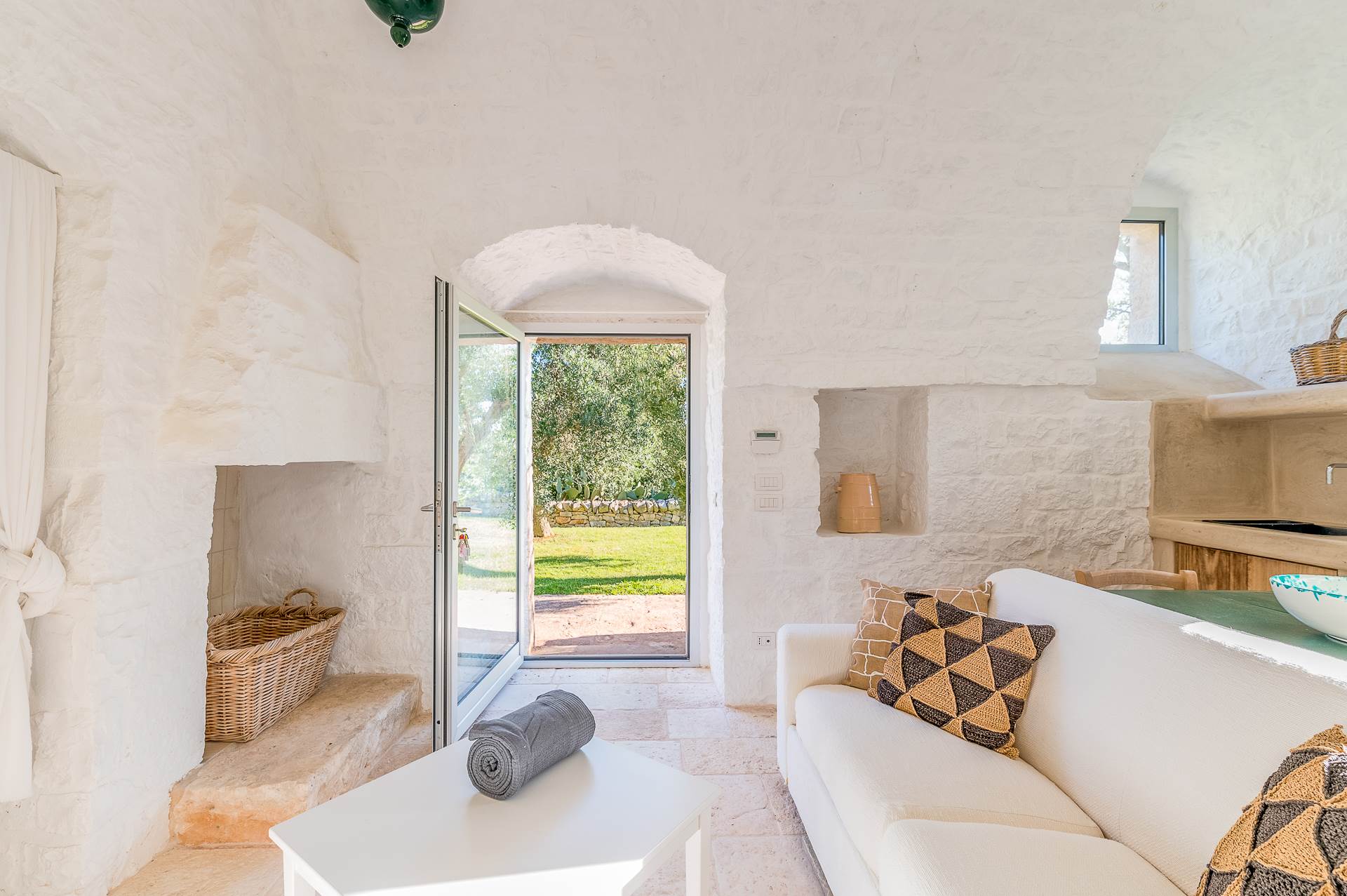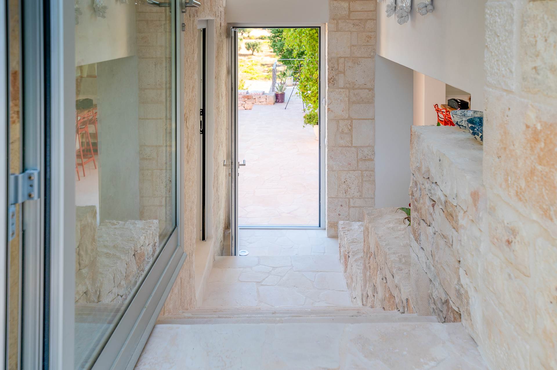 The rooms are large and bright, with local stone or resin floors, interior doors, ceilings with vaults, barrel and star.