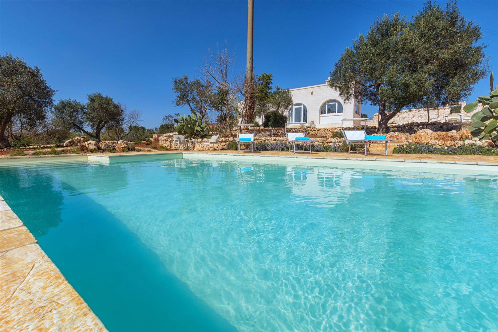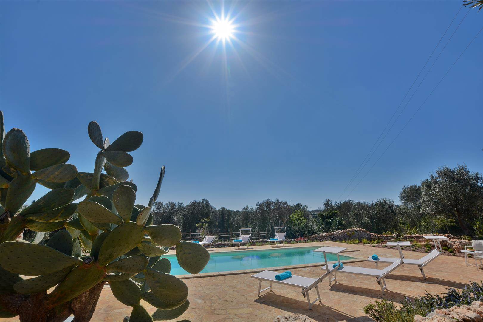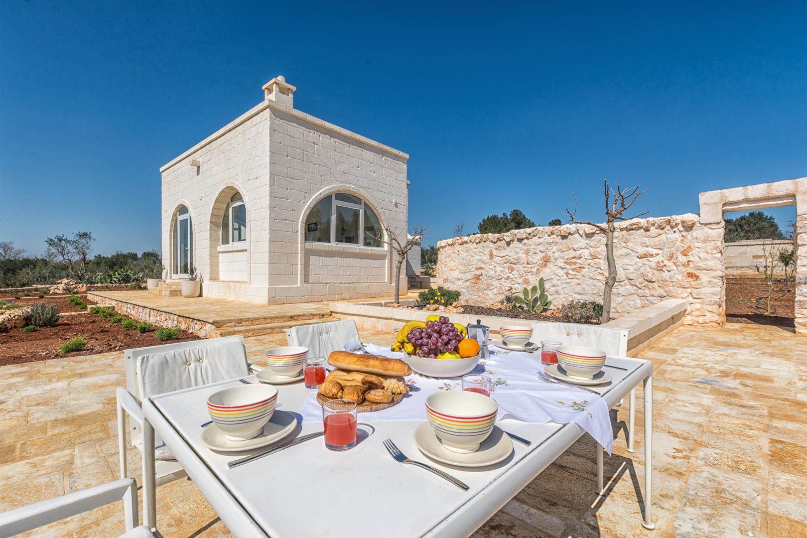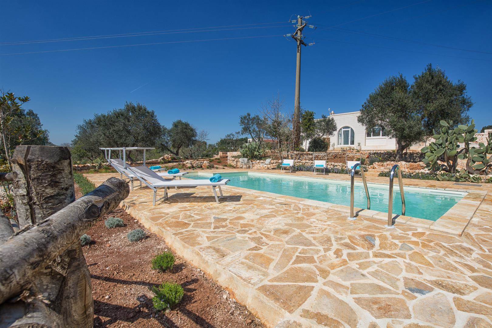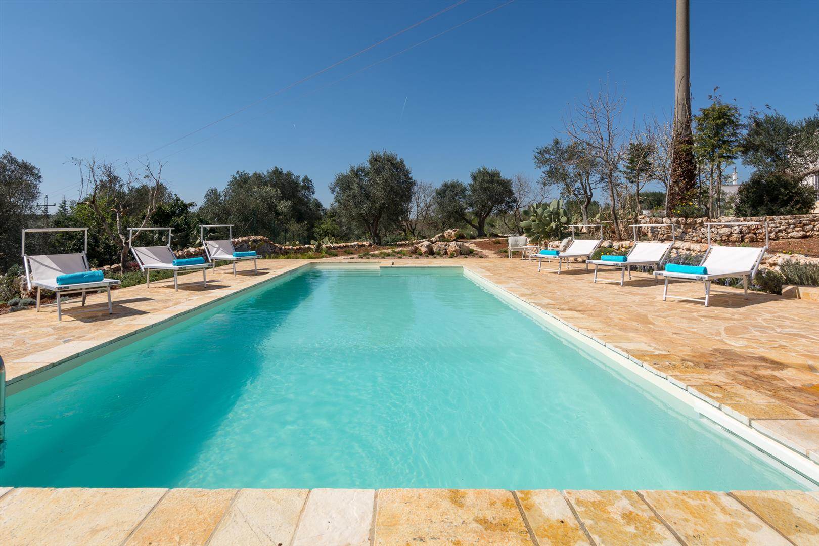 Newly built villa, with pool, 3 bedrooms 3 bathrooms, large kitchen and lounge near to the town of Ostuni and Carovigno. Great views across the countryside, ample shaded parking, and near to the town, where there are many bars and restaurants, in which to enjoy la dolce vita.