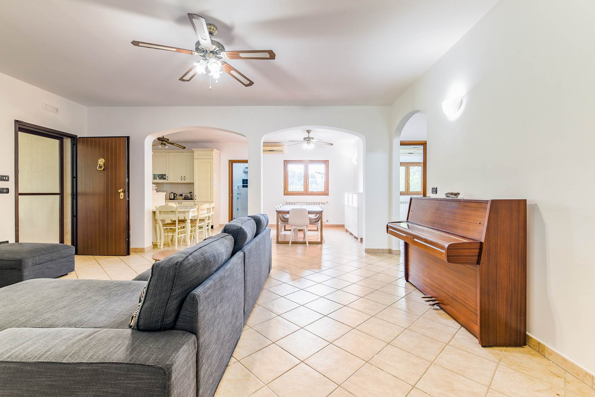 The villa sits within about 4,000sqm of lawned garden, with another 7,000sqm of land with olive and fruit trees. As you enter the beautiful villa through the electric gates, all controlled from the internal intercom.