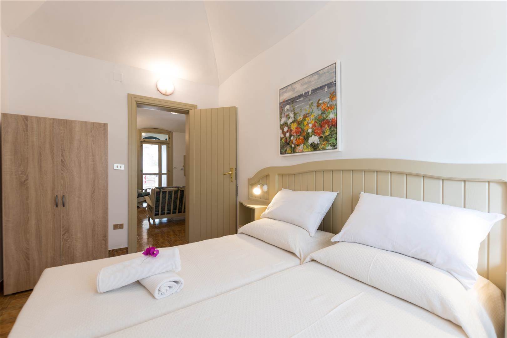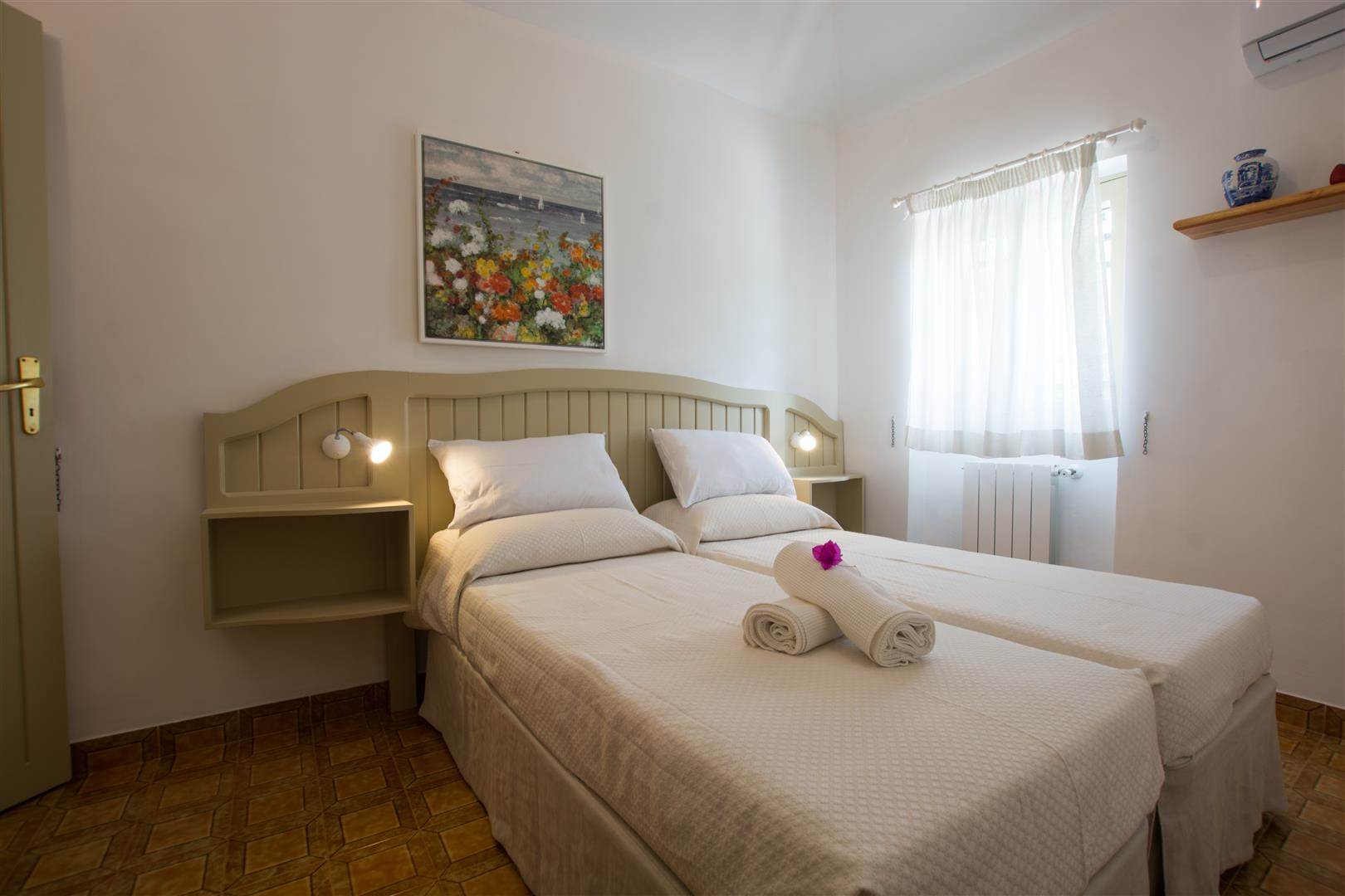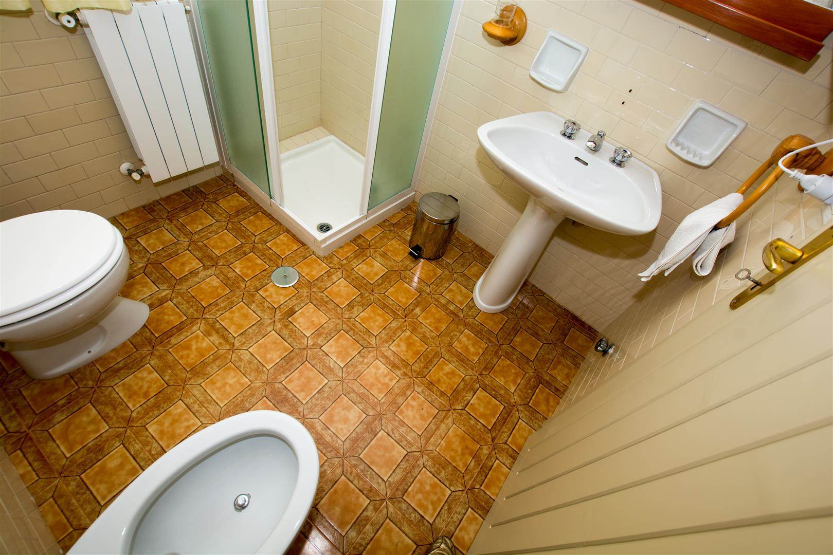 There are three double bedrooms, which share two bathrooms. The bathrooms, both have showers, bidet, sinks and toilets.