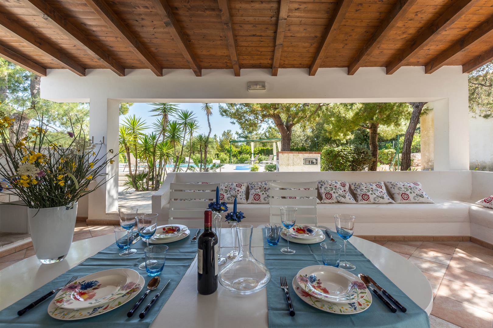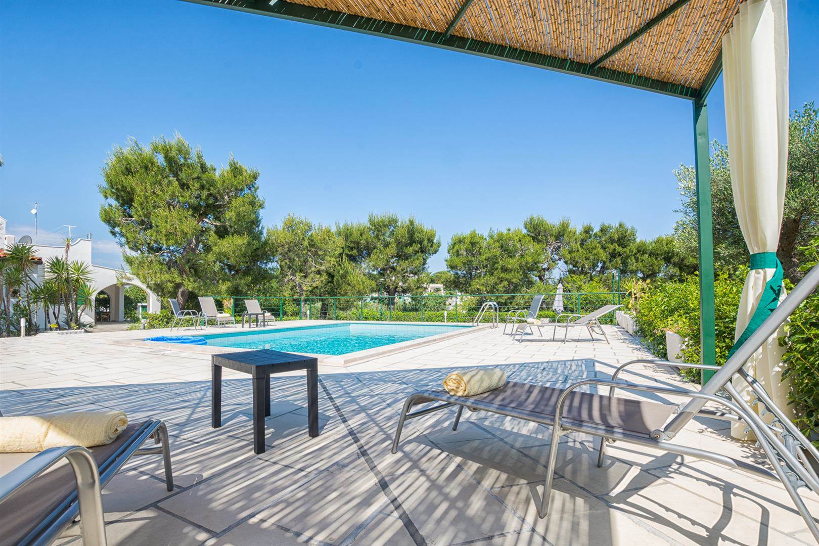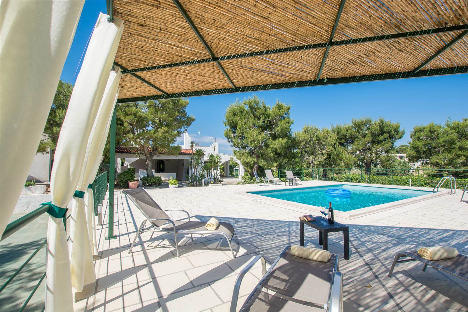 The pool has plenty of space to sunbathe and also a covered pegola in which to enjoy the shade, either reading your favourite book or drinking a glass of locally produced Puglian wine.