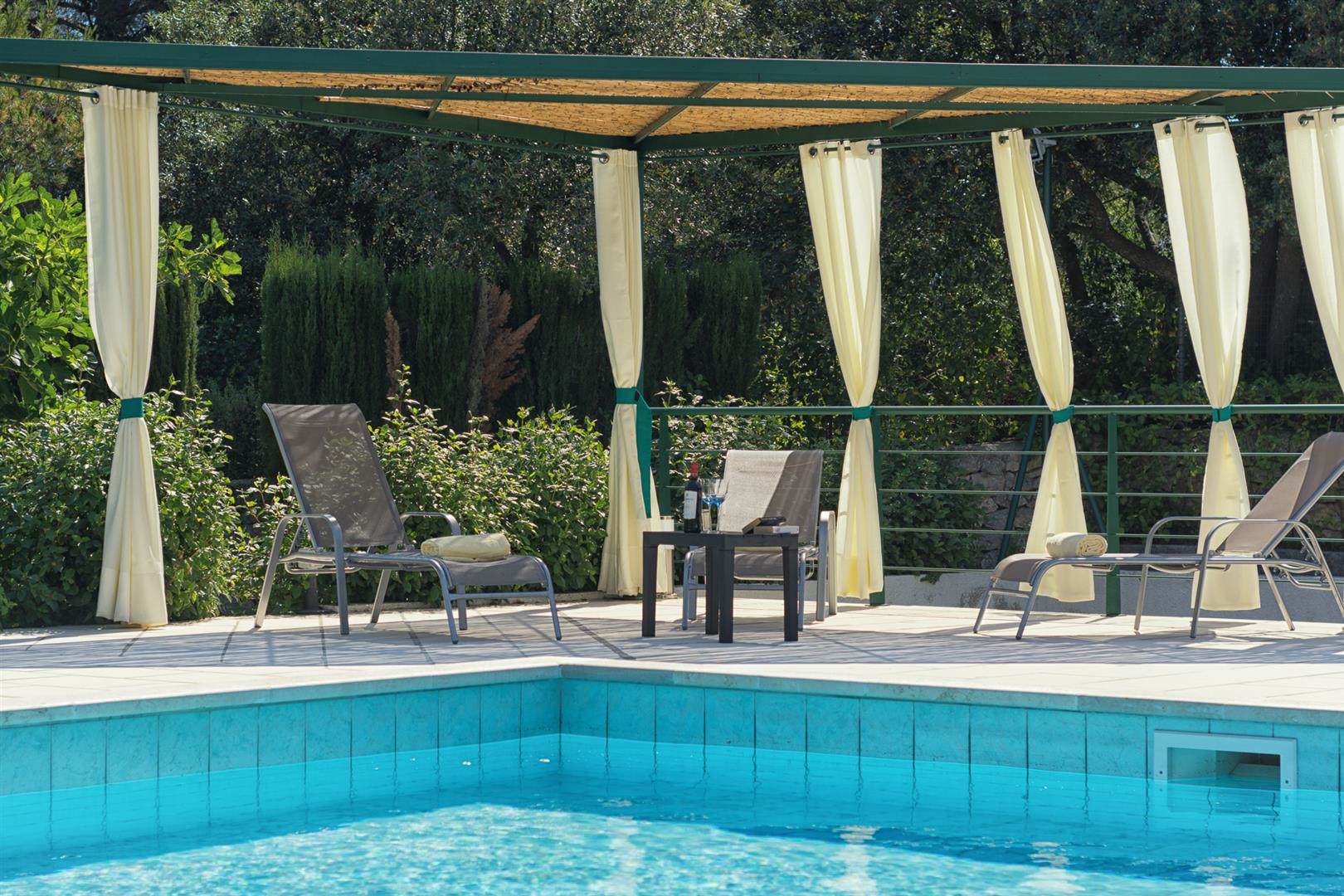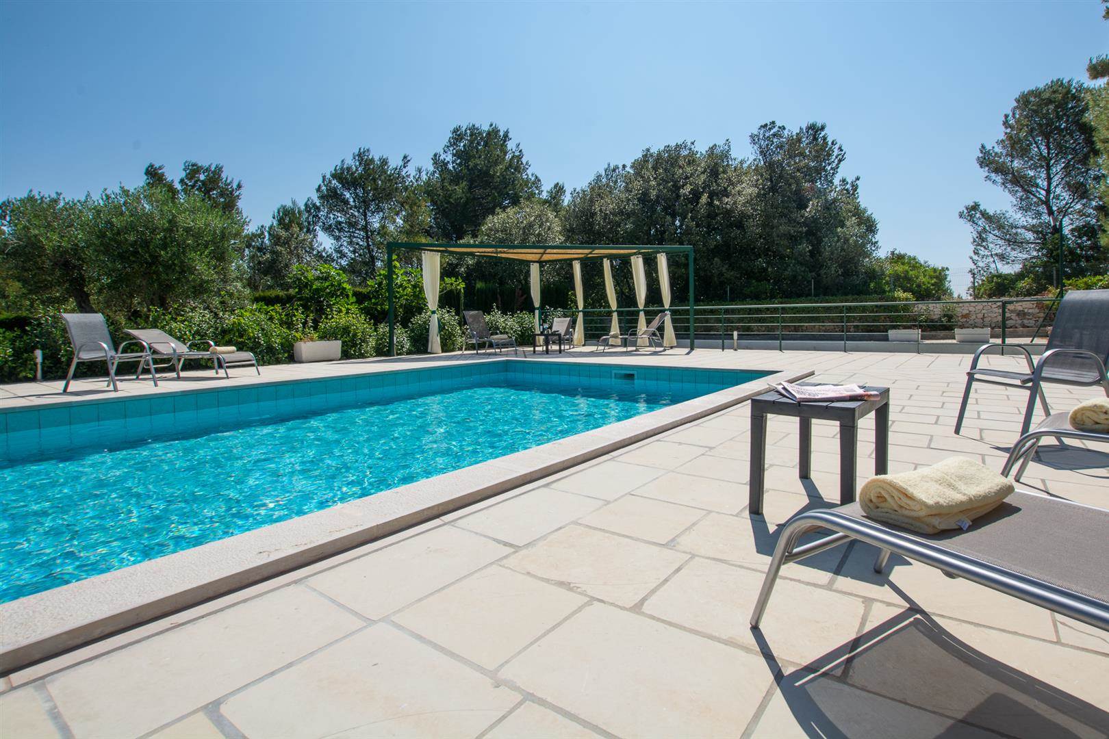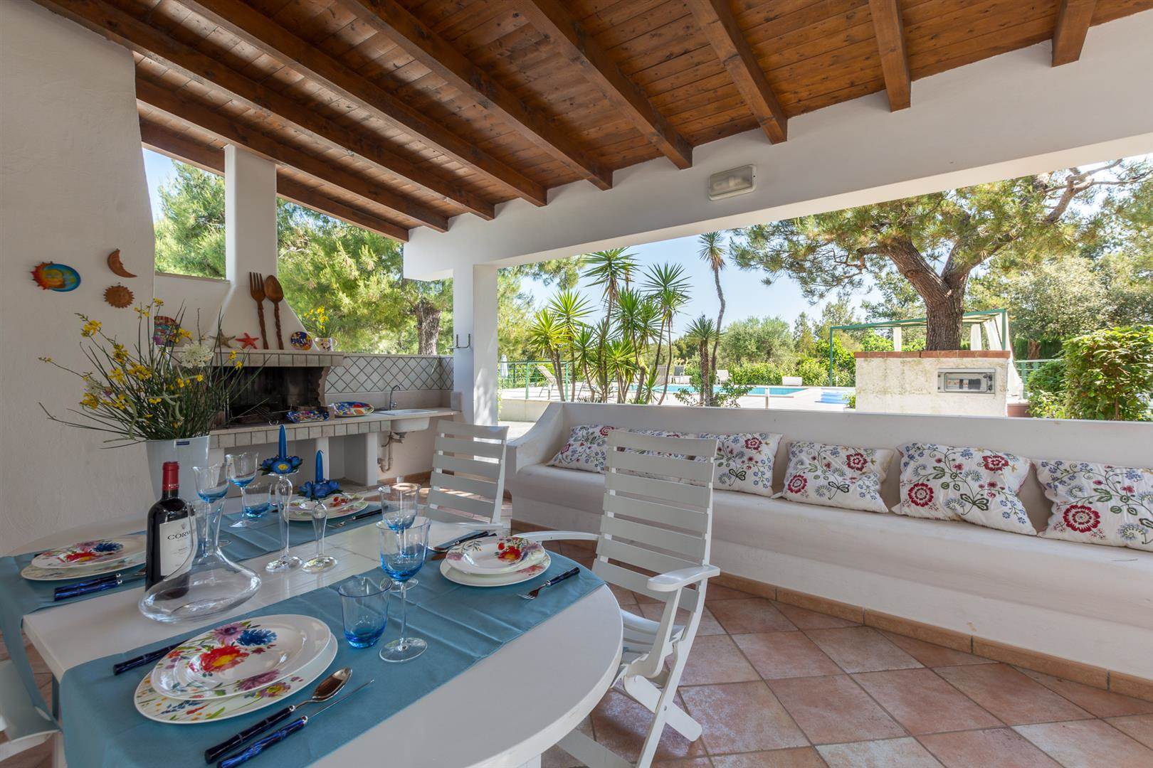 The pool has plenty of space to sunbathe and also a covered pegola in which to enjoy the shade, either reading your favourite book or drinking a glass of locally produced Puglian wine.