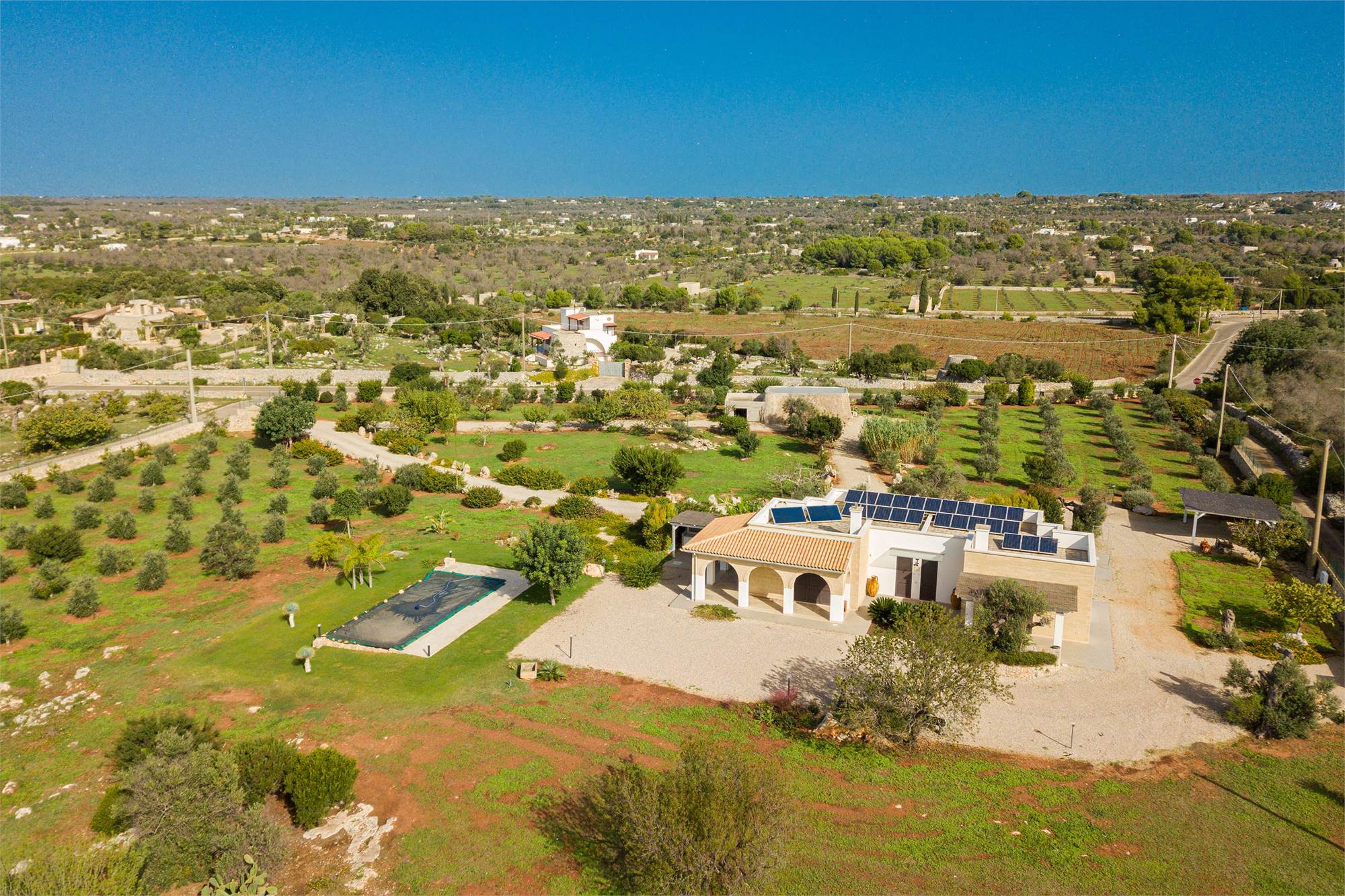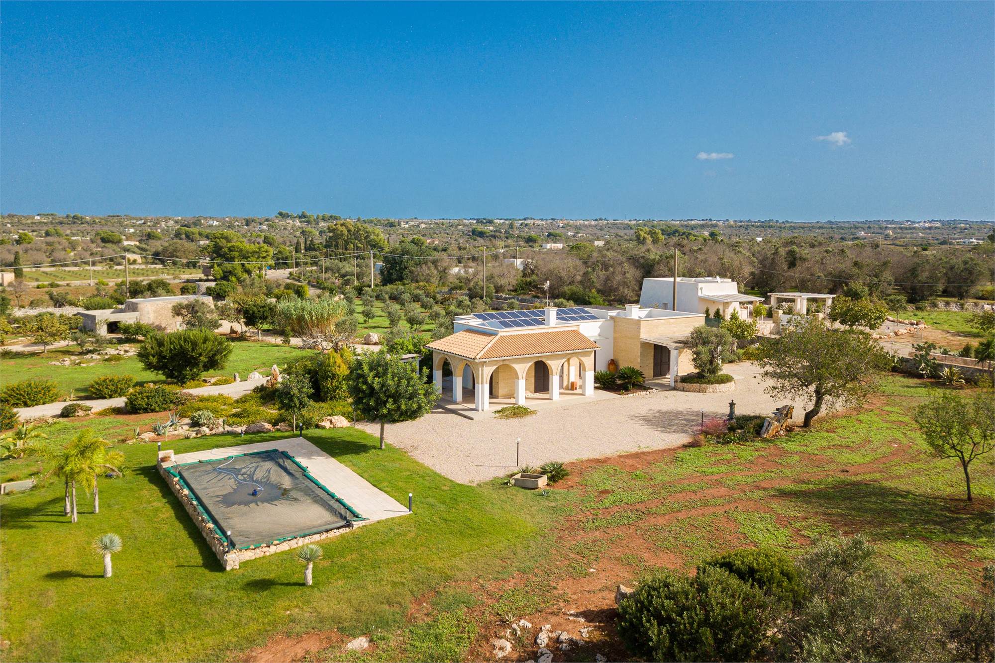 A careful design project has created a perfect balance between indoor and outdoor spaces, ensuring a unique harmony. The interiors, made in a contemporary style, are equipped with the most modern technologies, including air conditioning, heating with radiators and a pellet stove to heat the domestic water. The villa is completely covered by Wi-Fi for total comfort.