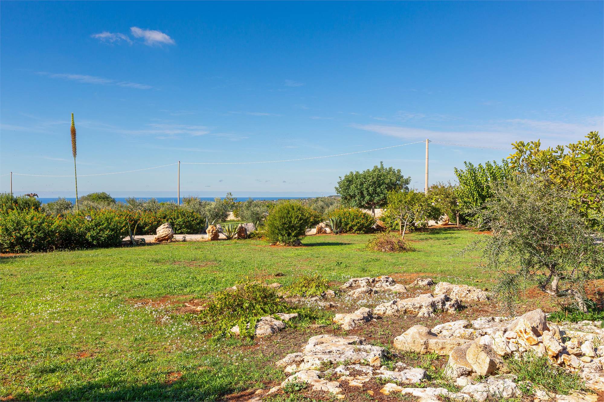Surrounded by a lush garden of 11,000 square meters fenced by dry stone walls, the property also includes a "Lamione" of 55 square meters that can be renovated at your leisure.