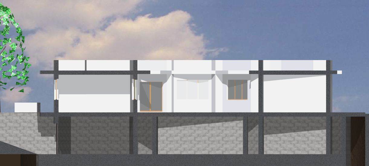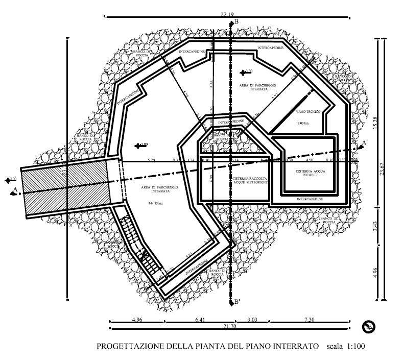 The project of the Villa includes the construction of a residential area of about 95 square meters on the ground floor, with two bedrooms, two bathrooms, a kitchen, a dining room and a living room. Also on the ground floor there is a storage of about 50 square meters. A large and panoramic veranda of 72 square meters completes the shape of the ground floor.