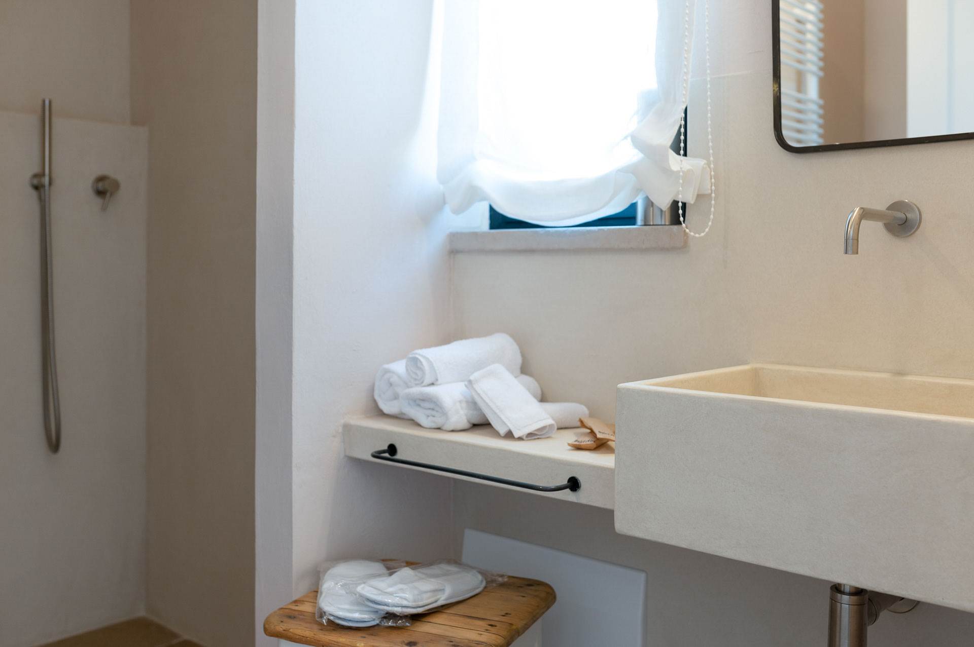 Orama Relais is spread over two levels (ground floor and lower floor) can accommodate up to eleven people arranged in five bedrooms: three double bedrooms in the main building on the ground floor, an annexe with external access with a double bedroom and a single bedroom and a spacious bedroom with bathroom and walk-in closet on the lower level.