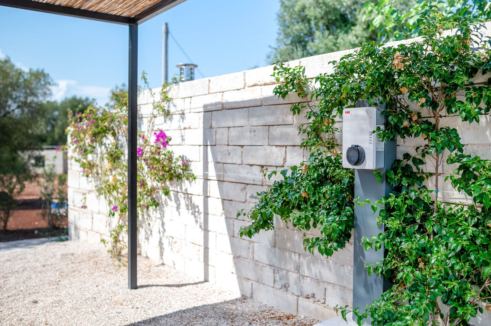 Villa Orama Relais is a home of contemporary bioclimatic architecture that embraces the theme of sustainability by integrating photovoltaic panels, solar panels, electric charging stations for cars, the continuity generator in the absence of electricity and home automation for both energy saving and for the keyless access.