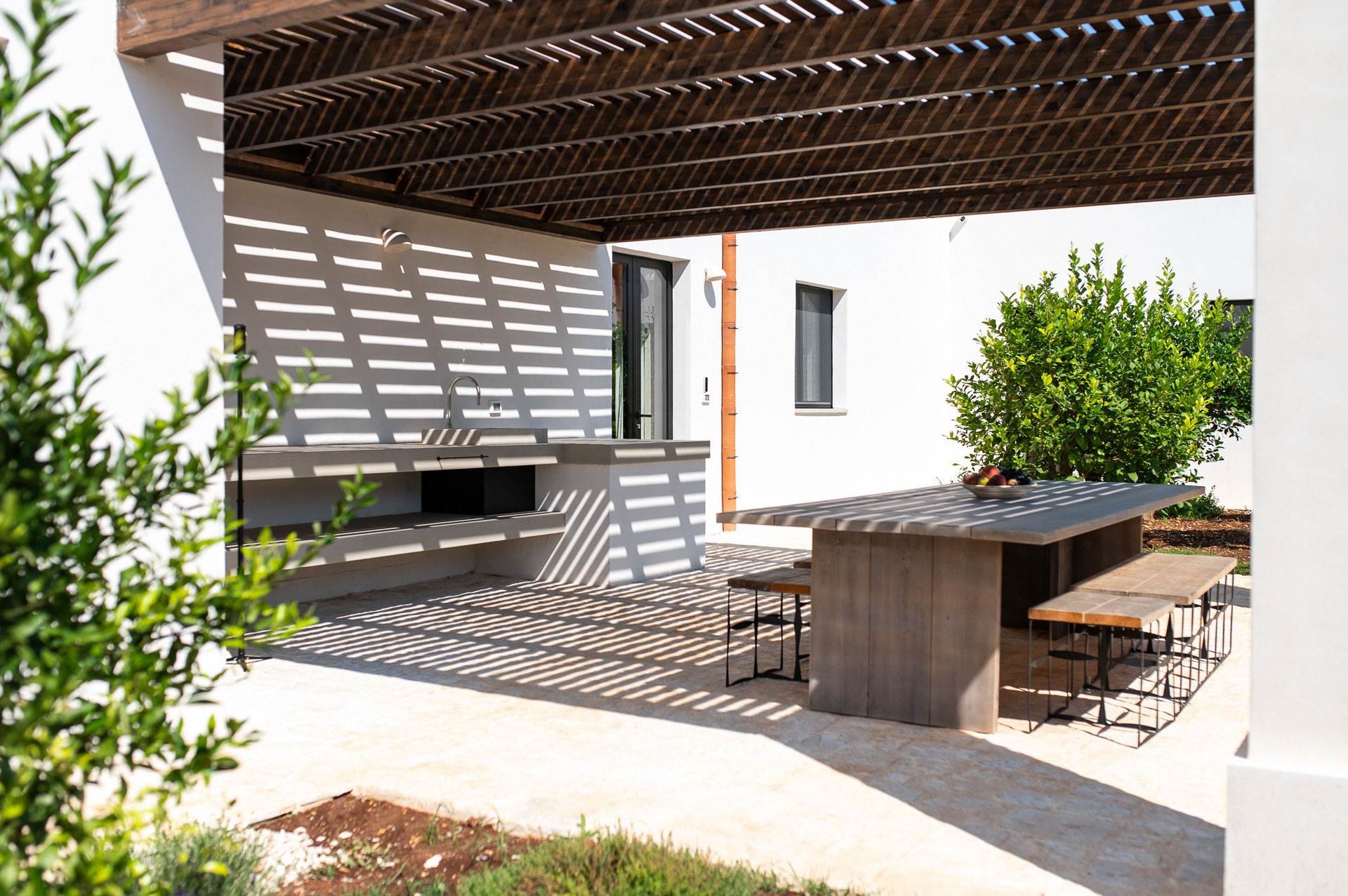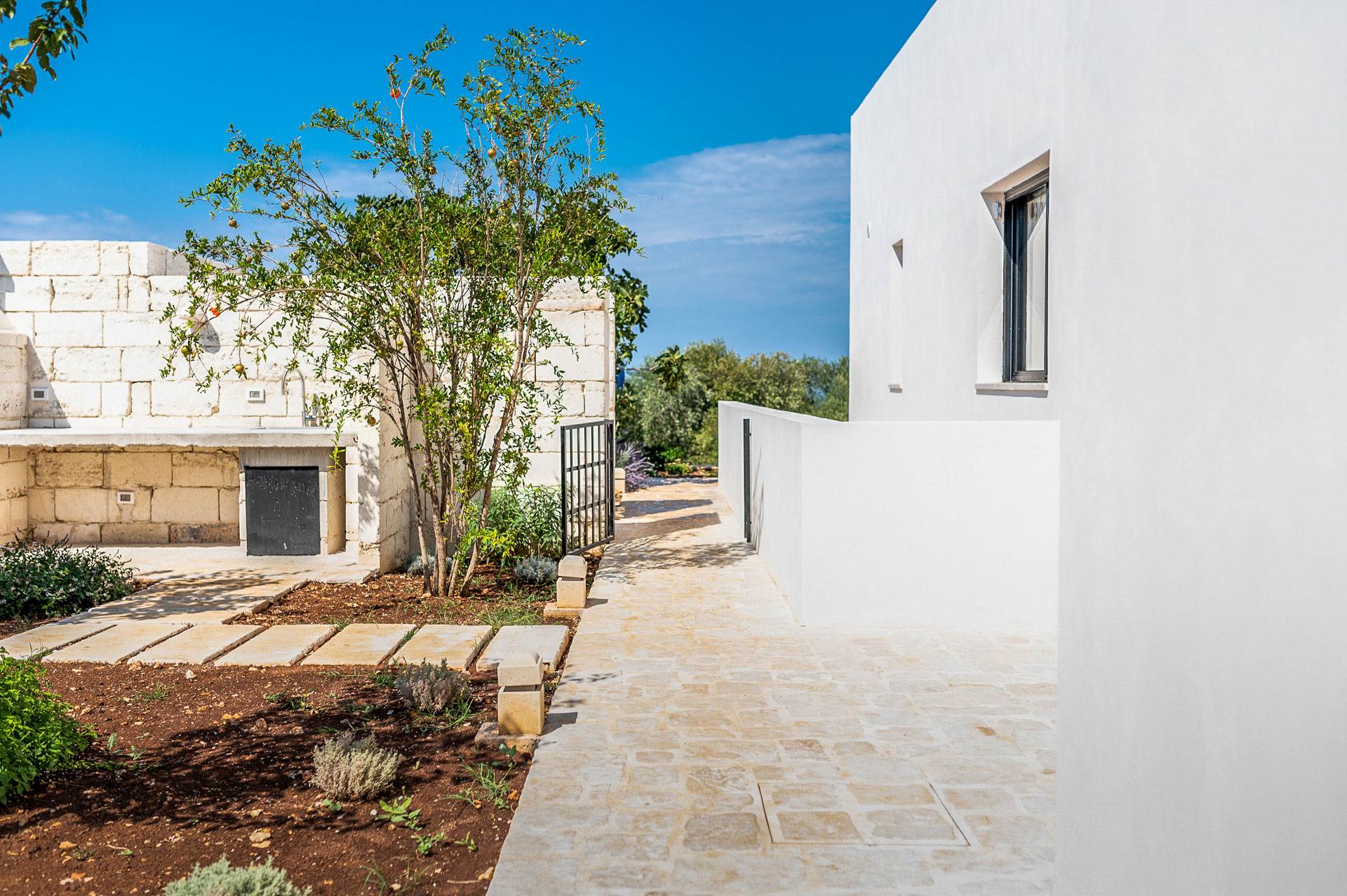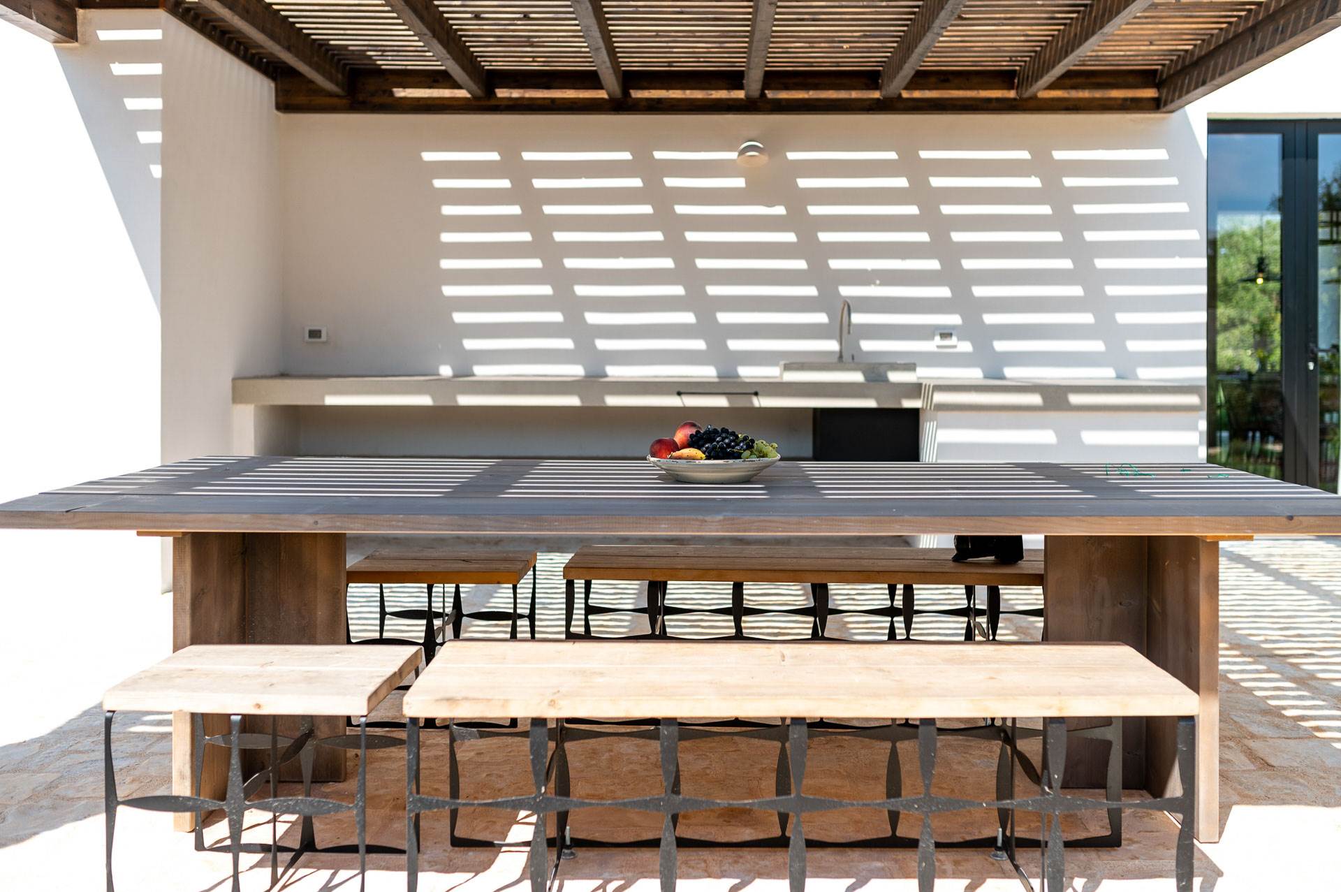 The external environments of the villa for rent are characterised by the dominant presence of local stone and the Mediterranean garden with a swimming pool (heatable) that create a unique atmosphere to spend a special holiday in the company of friends and relatives.
