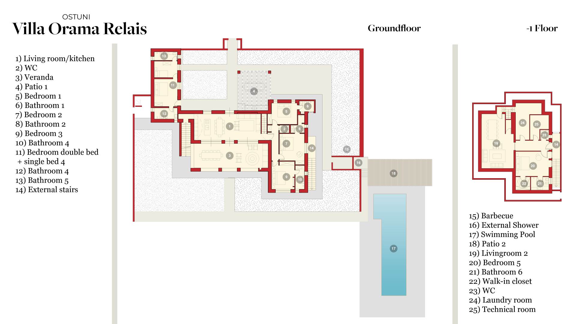 Villa Orama Relais is a modern luxury villa for sale with a sea view, and a swimming pool in Ostuni, the white city, famous for its narrow streets and ancient villages and for the beaches with crystal clear waters.