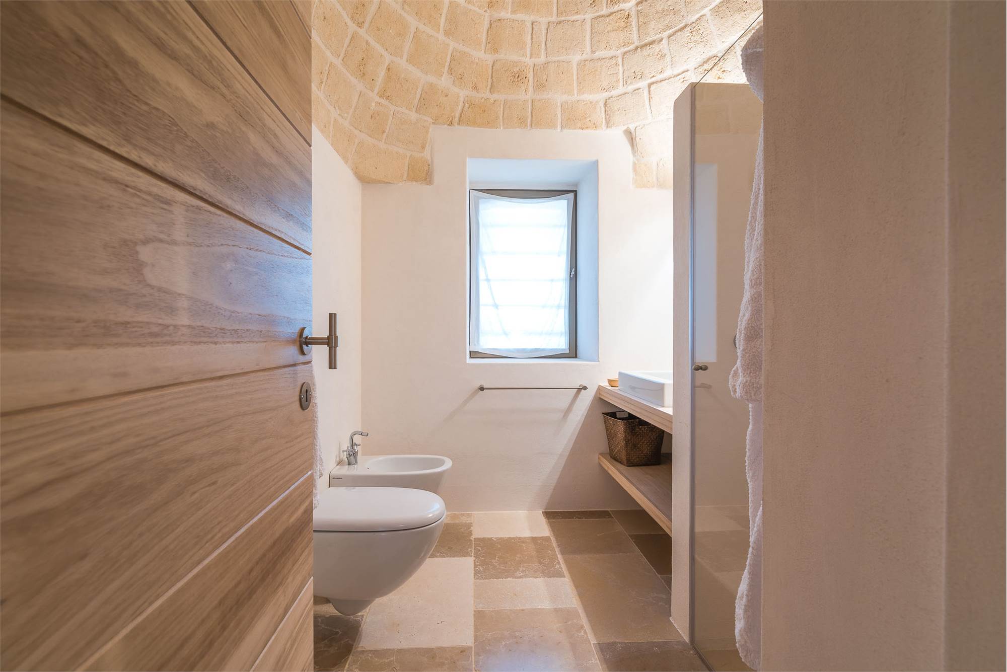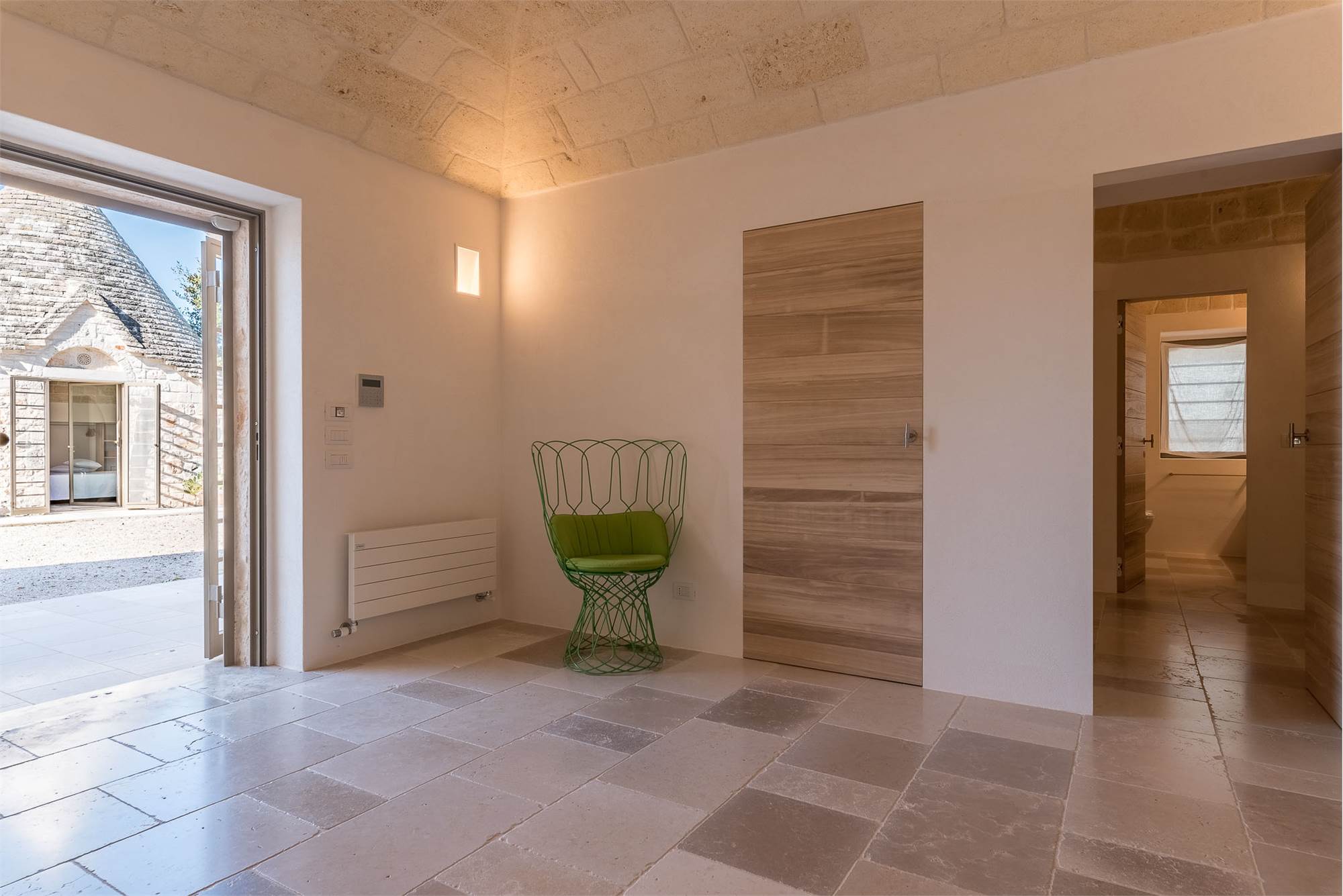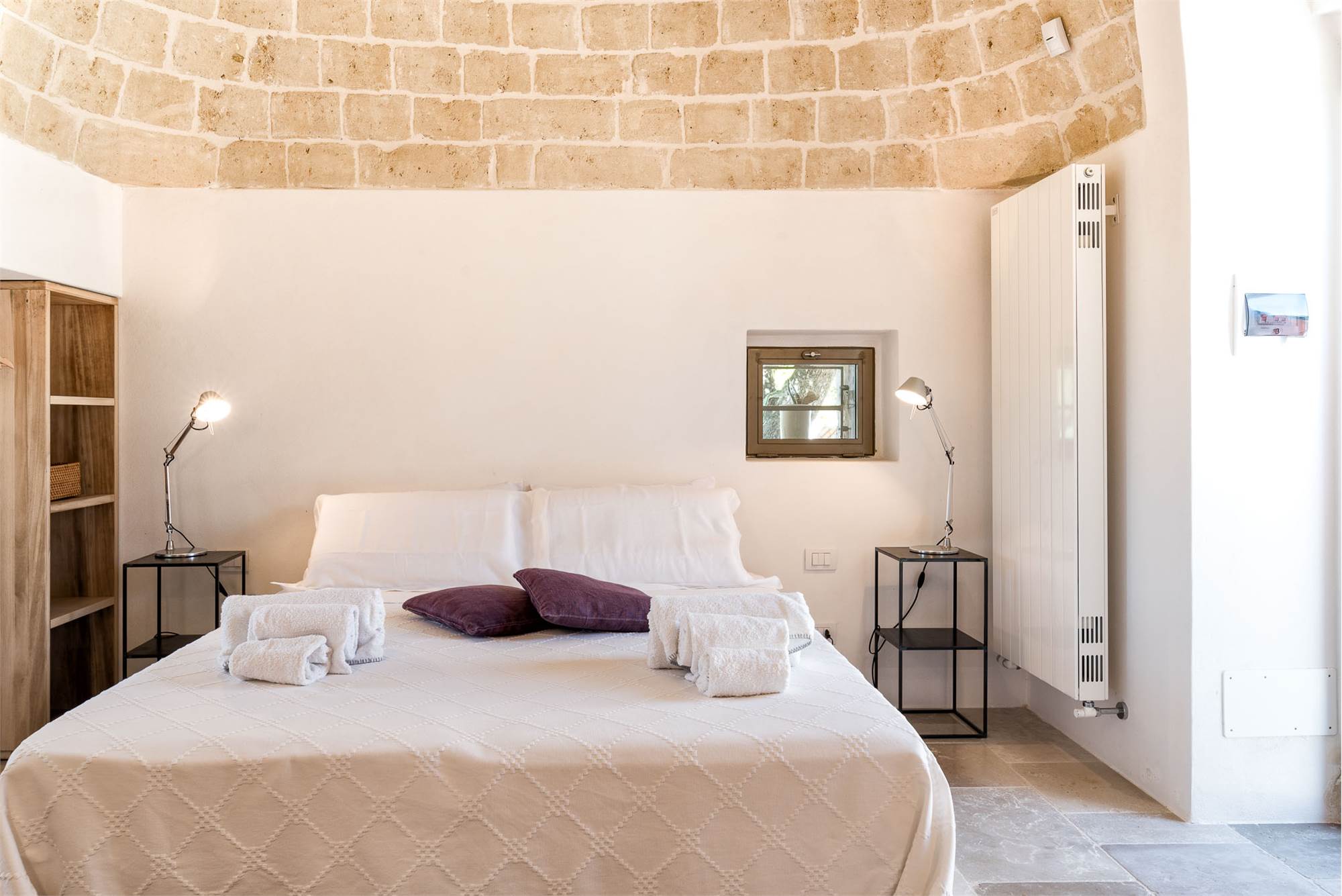 On the opposite side of the entrance there are two other comfortable double rooms and a bathroom. In a dependance, a large trullo with two cones, there is space for another comfortable bedroom with bathroom.