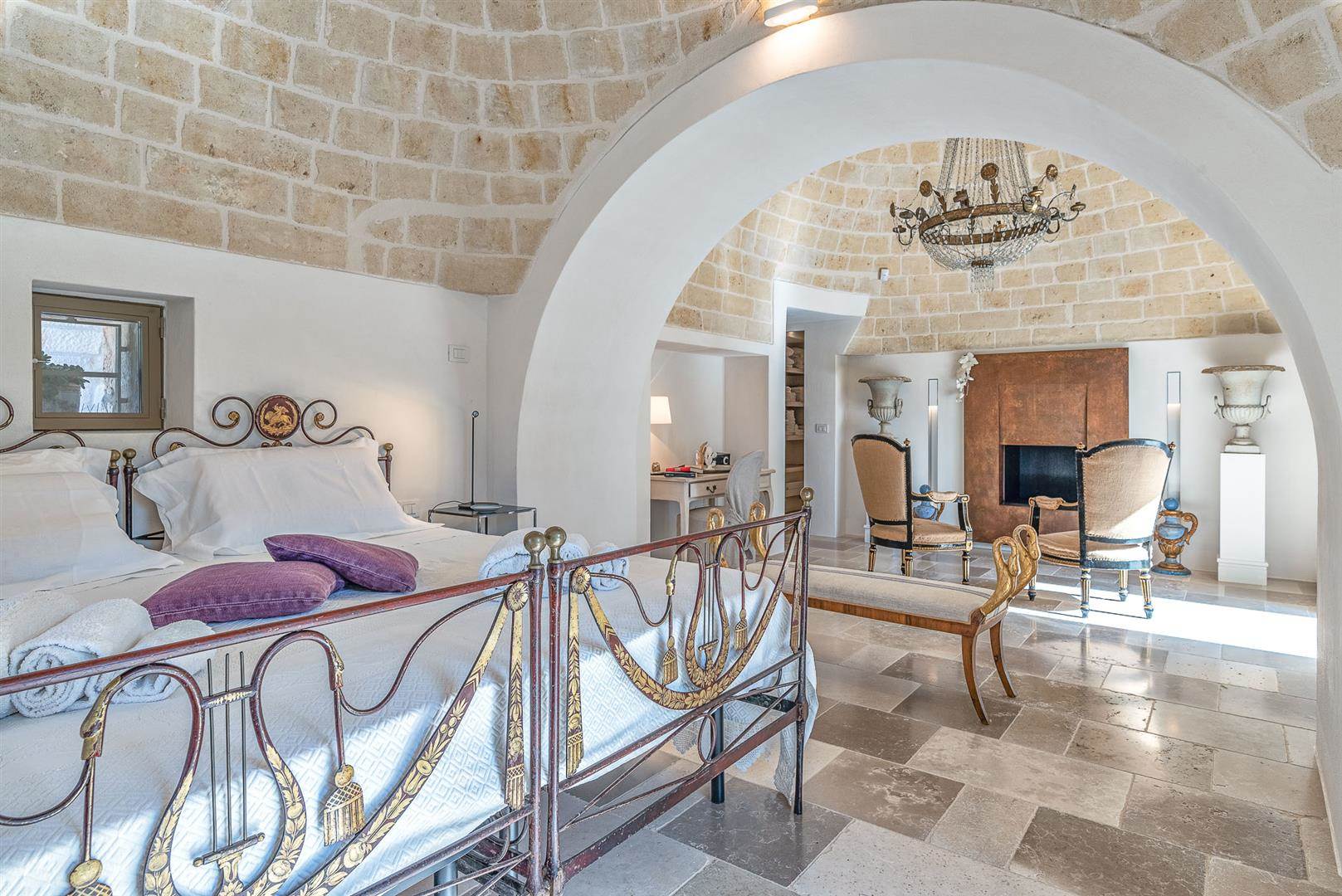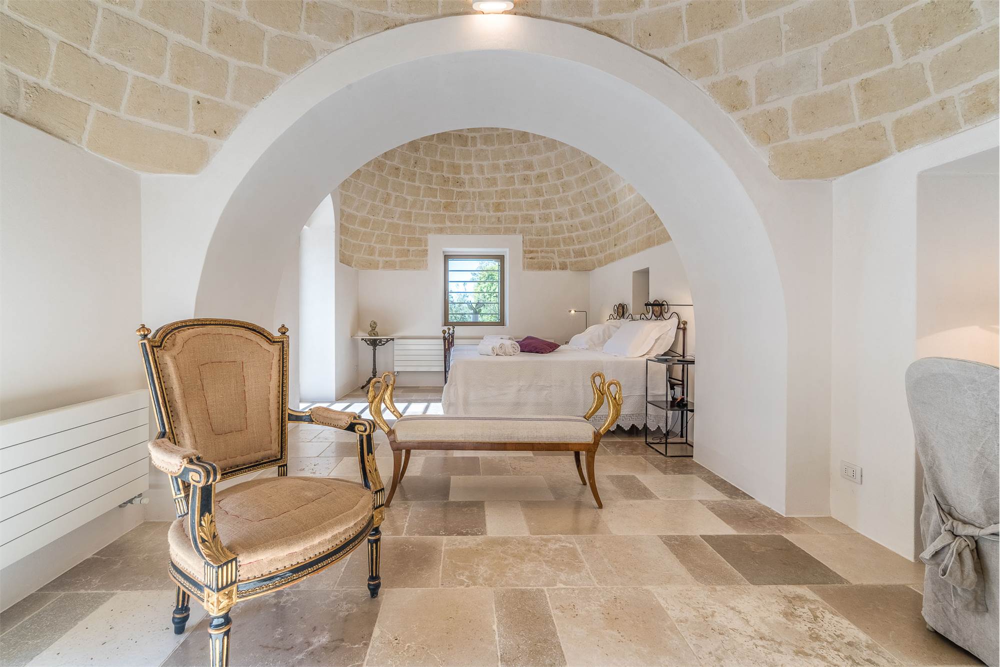 The architecture of the property and the panoramic views that are enjoyed by the same are of rare beauty, rich in the typical colors of Puglia: the blue of the sky, the intense red of the earth, the dark green of the olive trees, the dazzling white of the limestone.