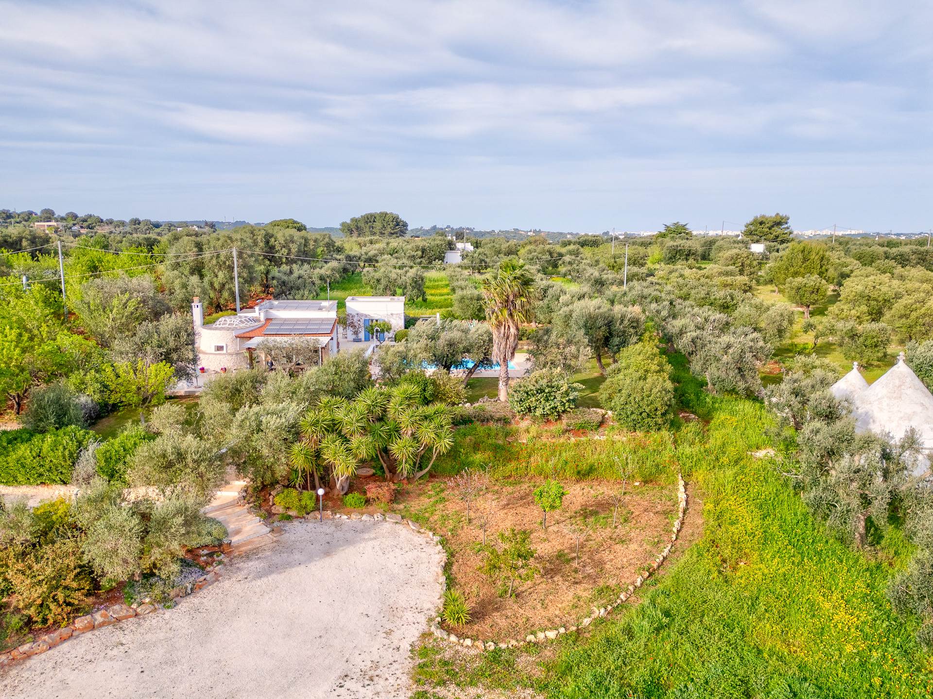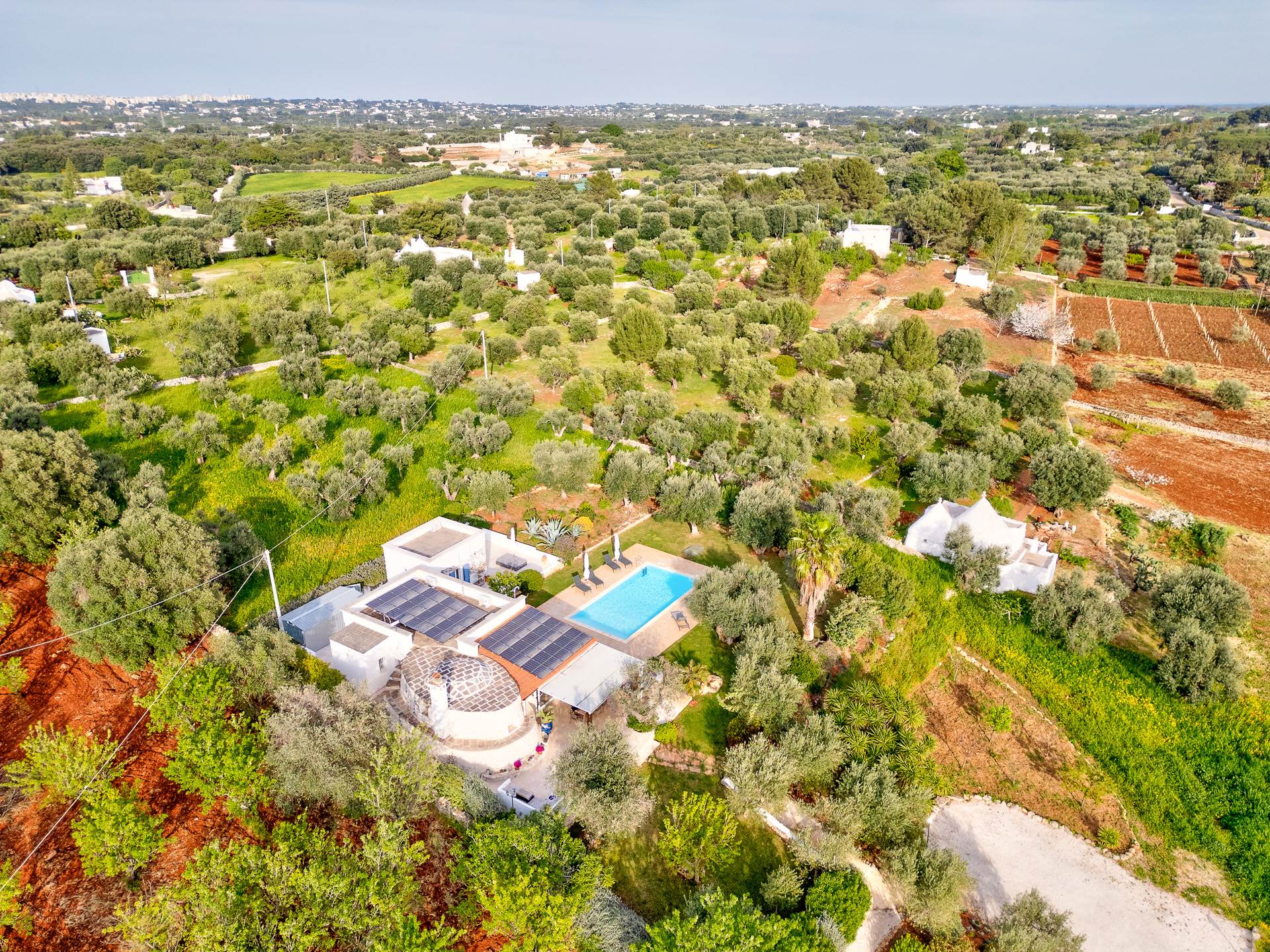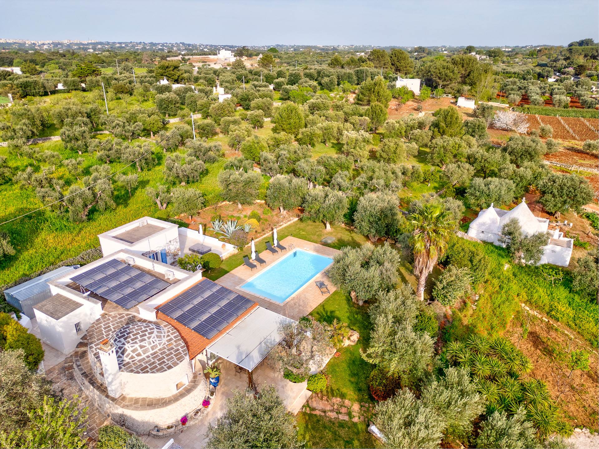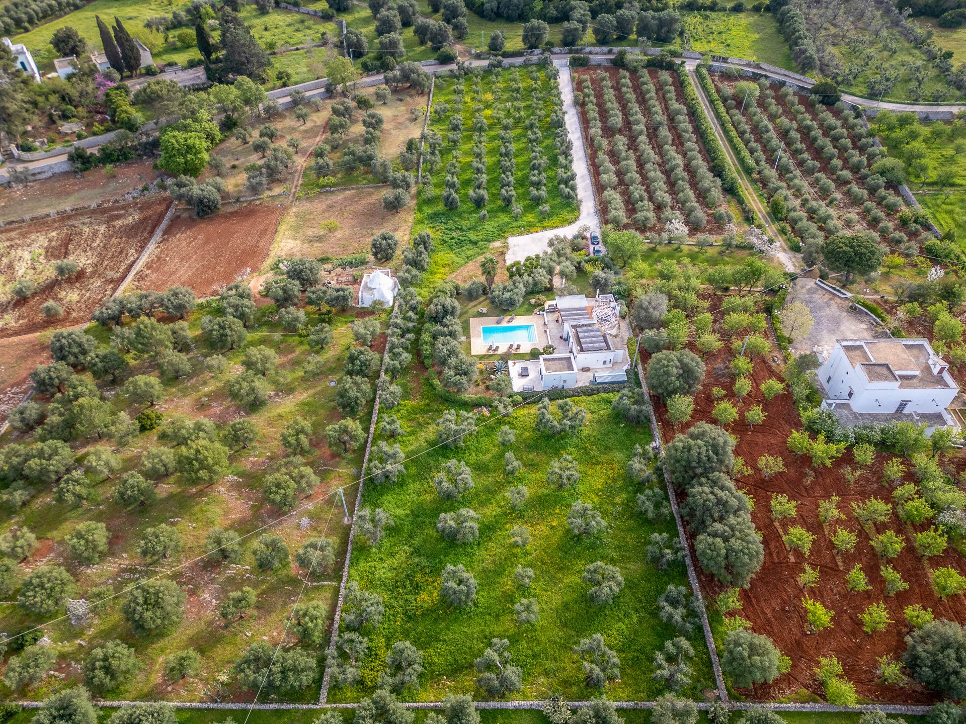 Il trullo/villa è immerso in un terreno di circa 8.000 mq, con 140 alberi di ulivo, alcuni alberi di fico e un sistema di irrigazione.