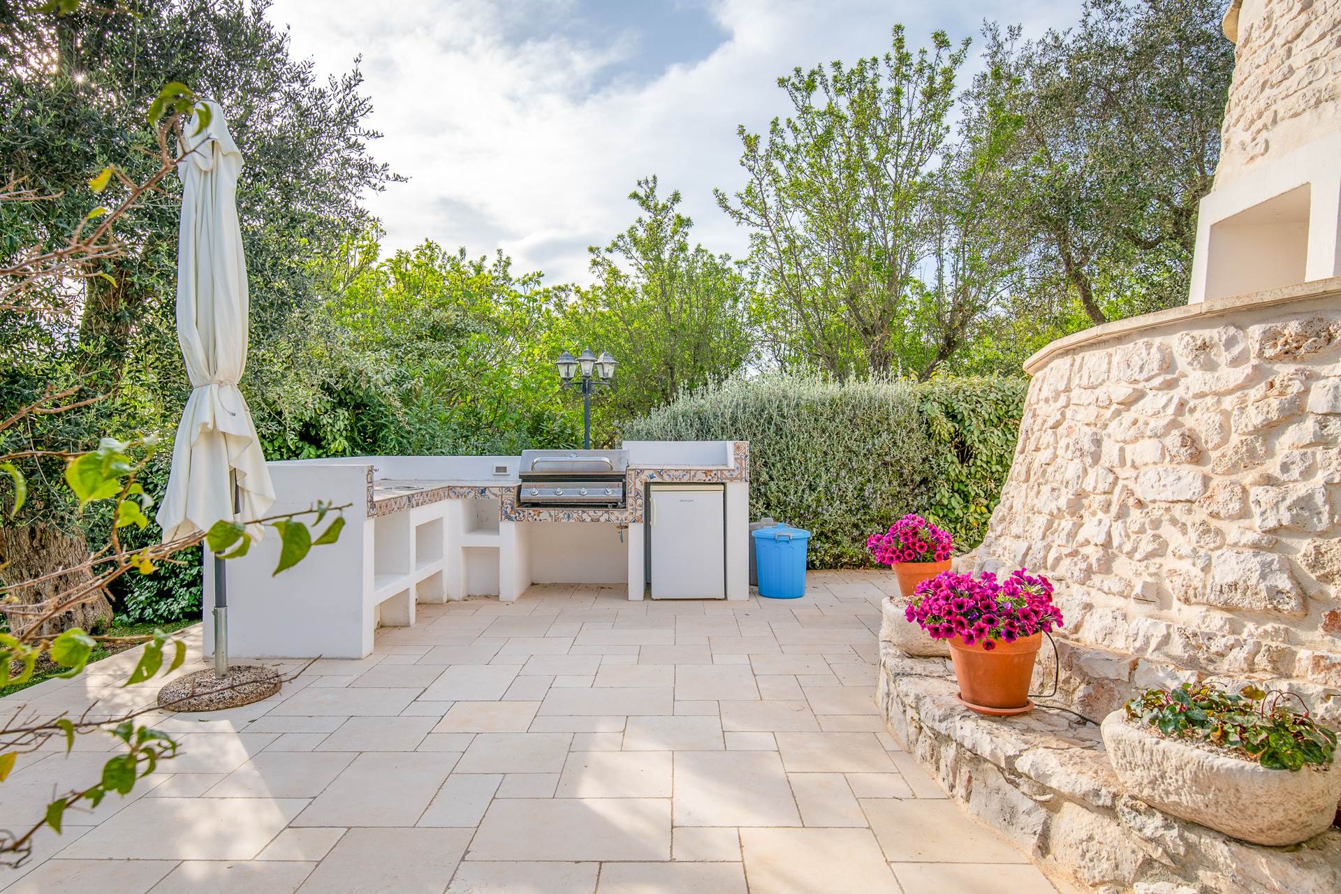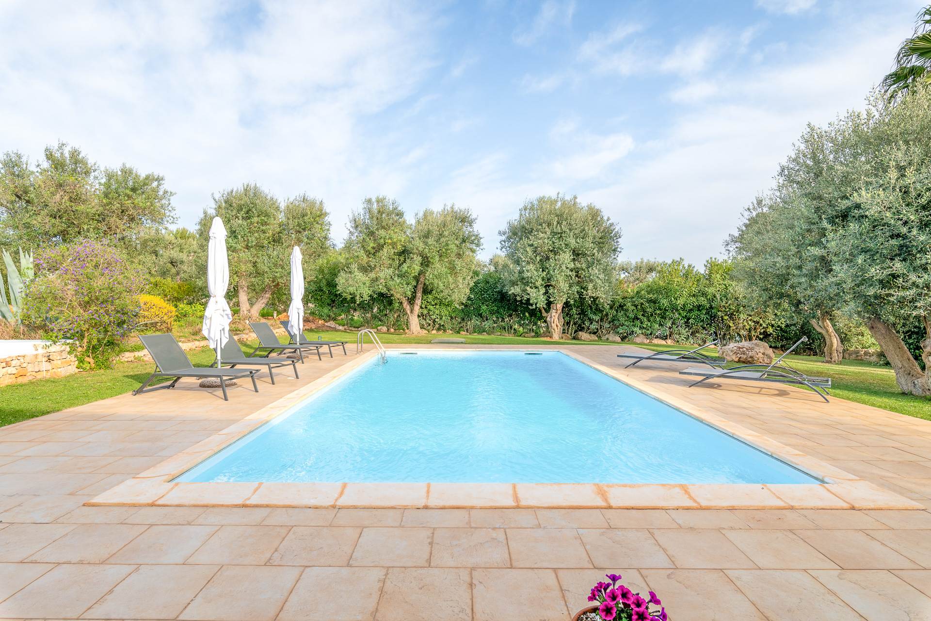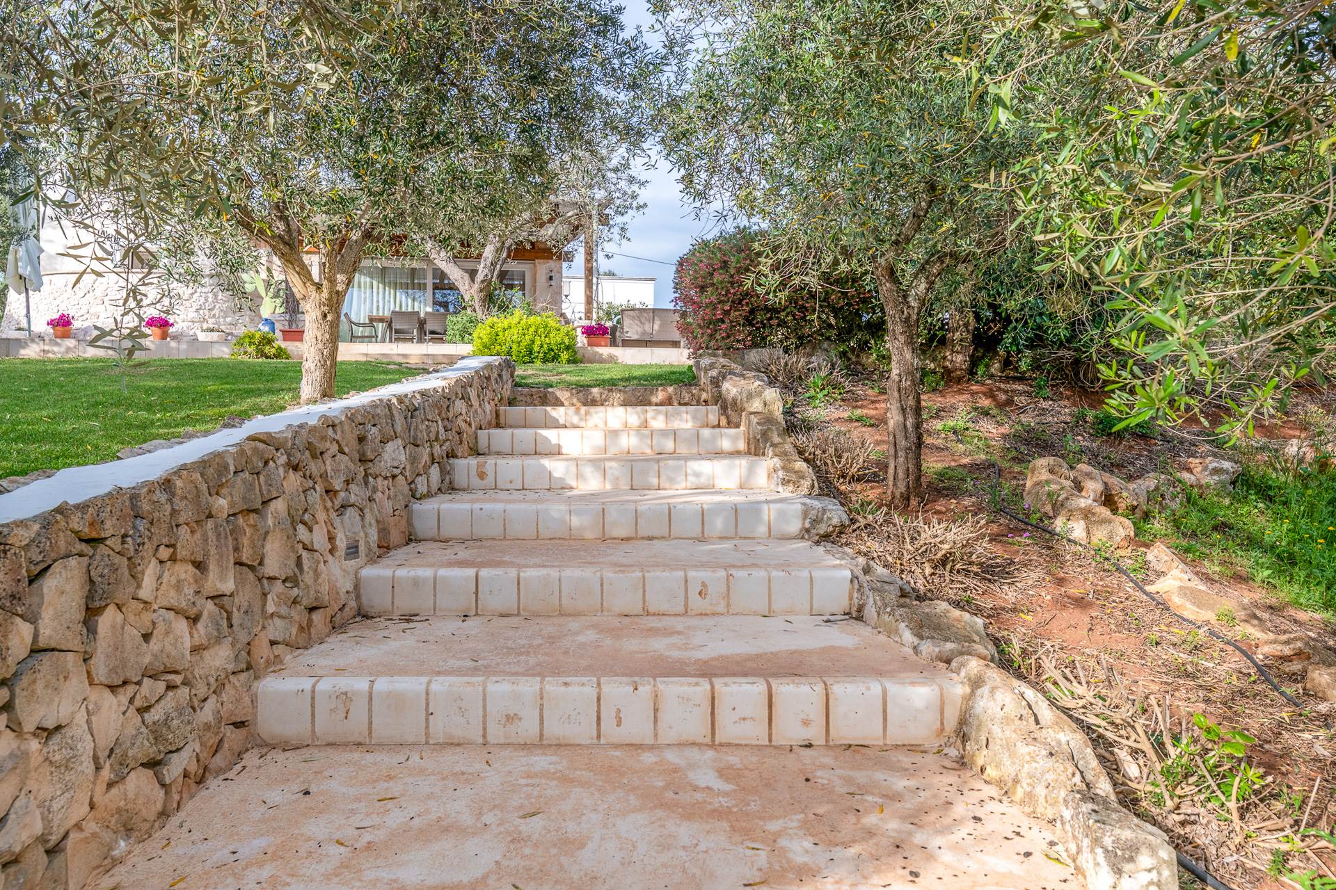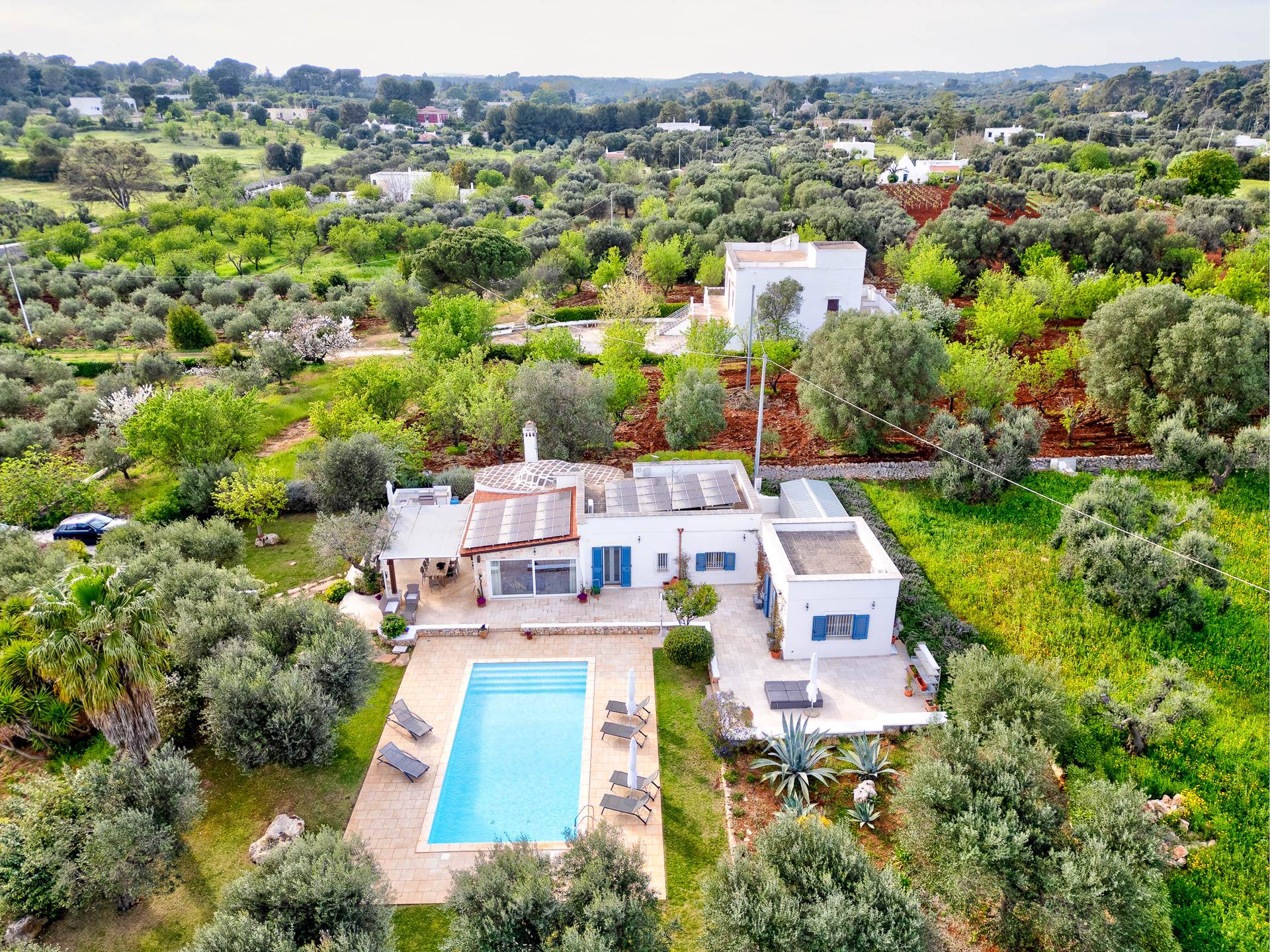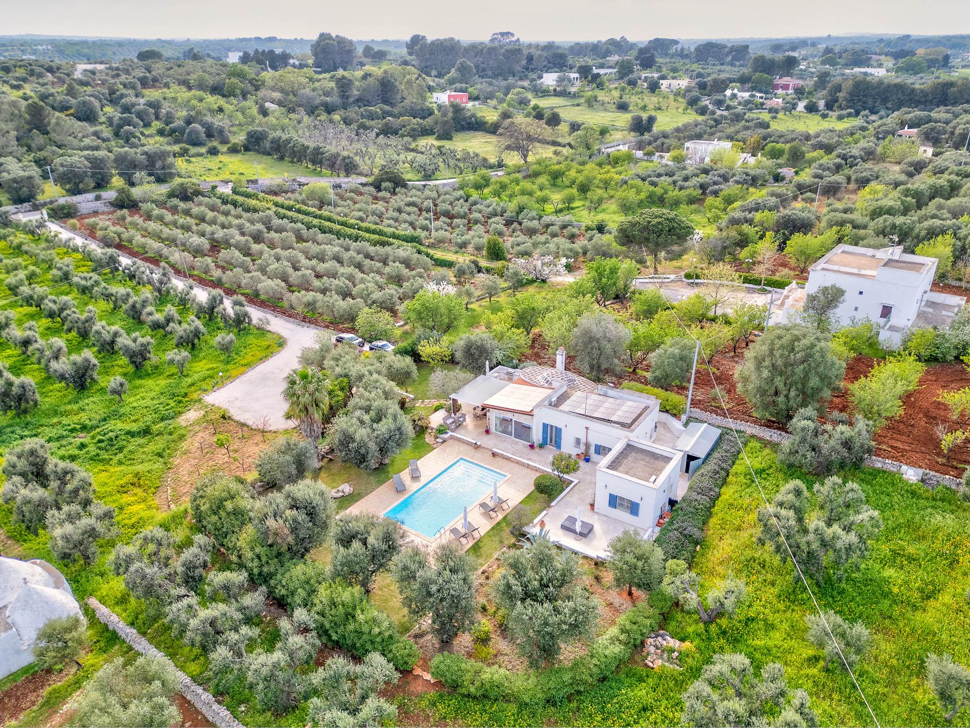 Il trullo/villa è immerso in un terreno di circa 8.000 mq, con 140 alberi di ulivo, alcuni alberi di fico e un sistema di irrigazione.