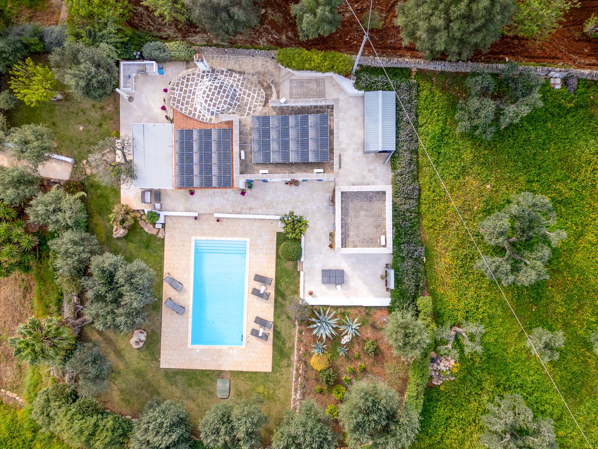 La proprietà dispone anche di un pozzo artesiano, cancelli elettrici, citofono e illuminazione lungo il vialetto fino al parcheggio, salendo i gradini e intorno alla villa e all'area della piscina.